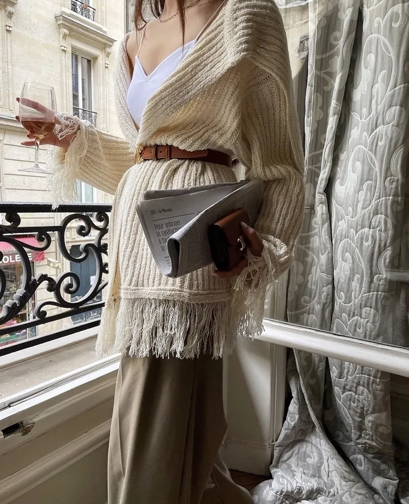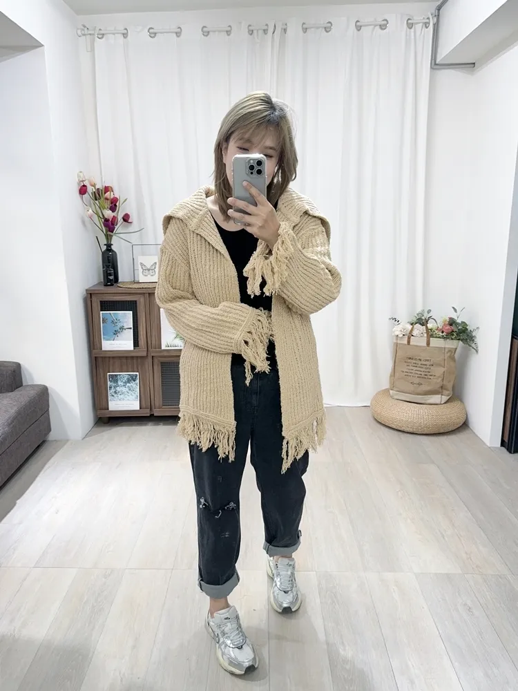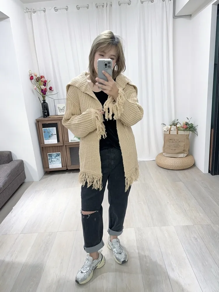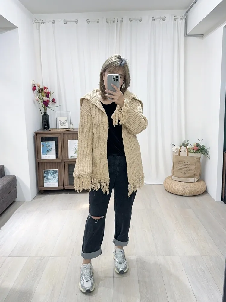 ✓ 袖口、下擺毛線流蘇設計