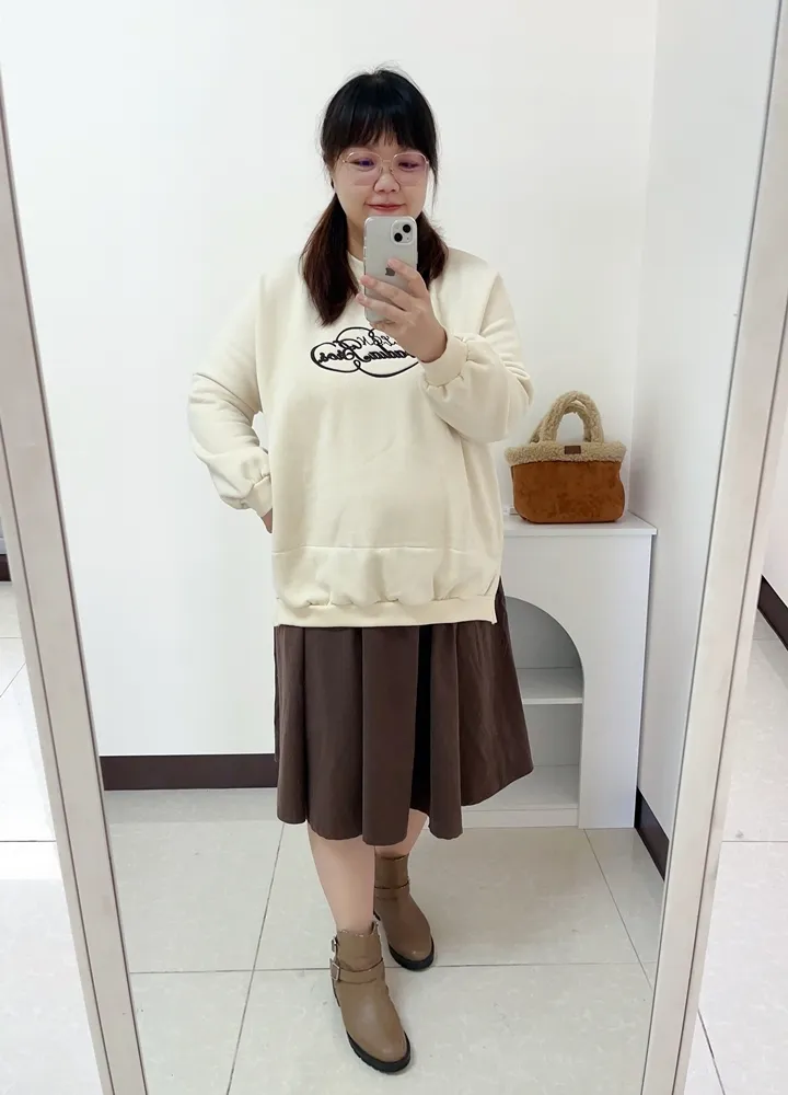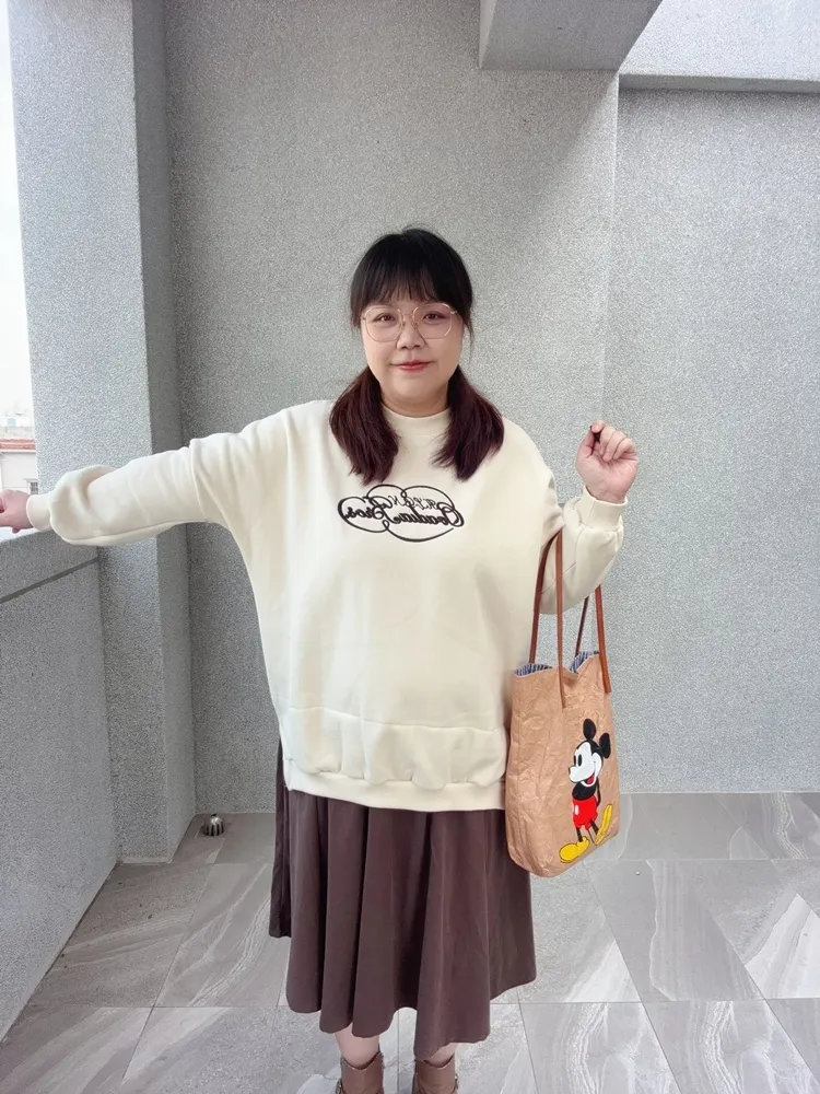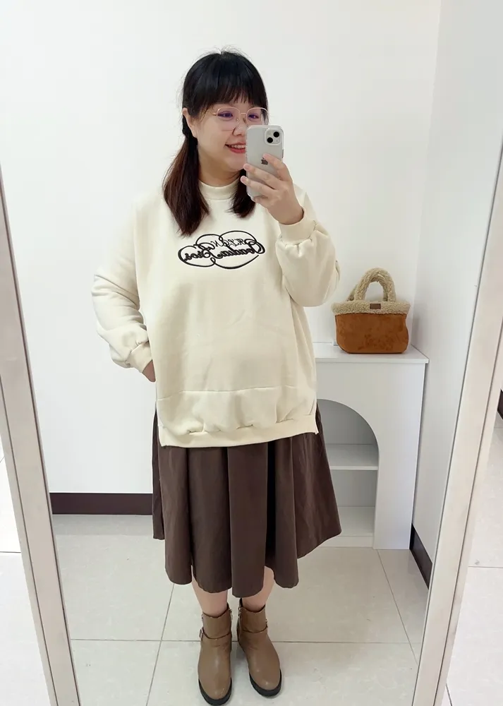 ✓ 棉質,手感舒服;下擺拼接裙表面微微絨感;內裡有厚度的刷毛