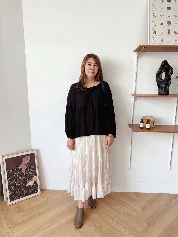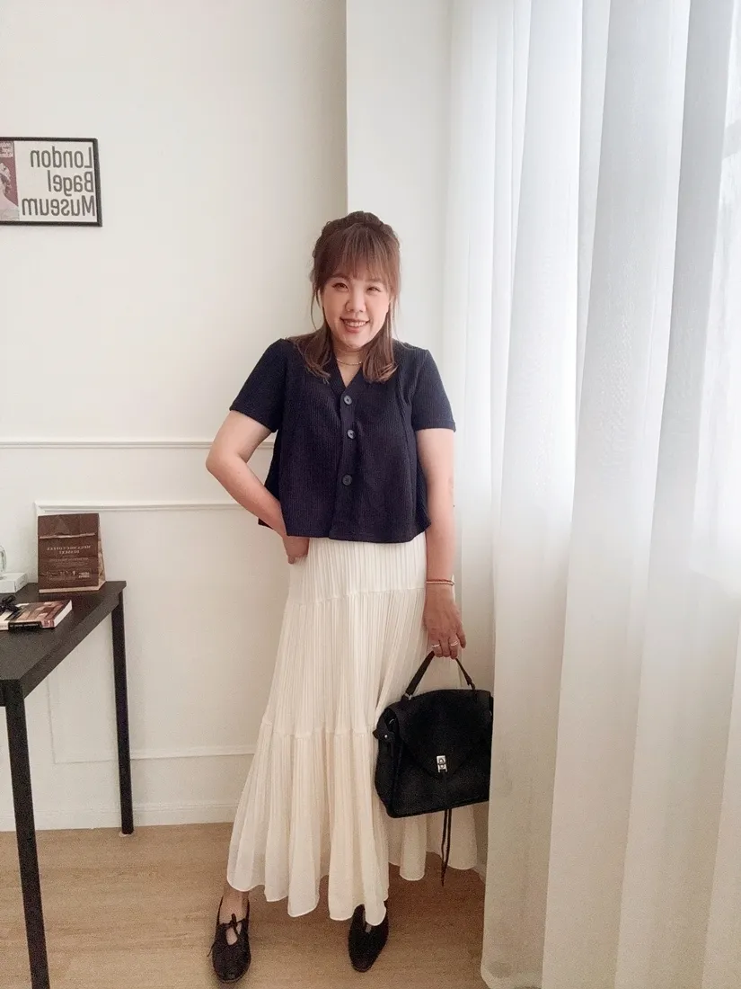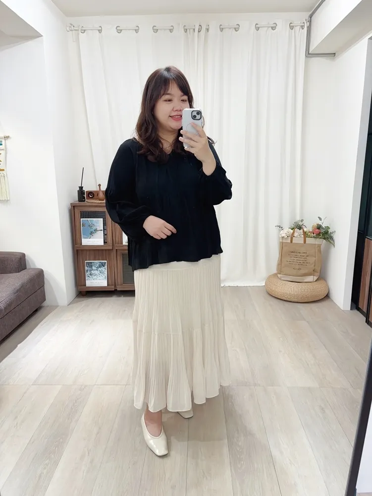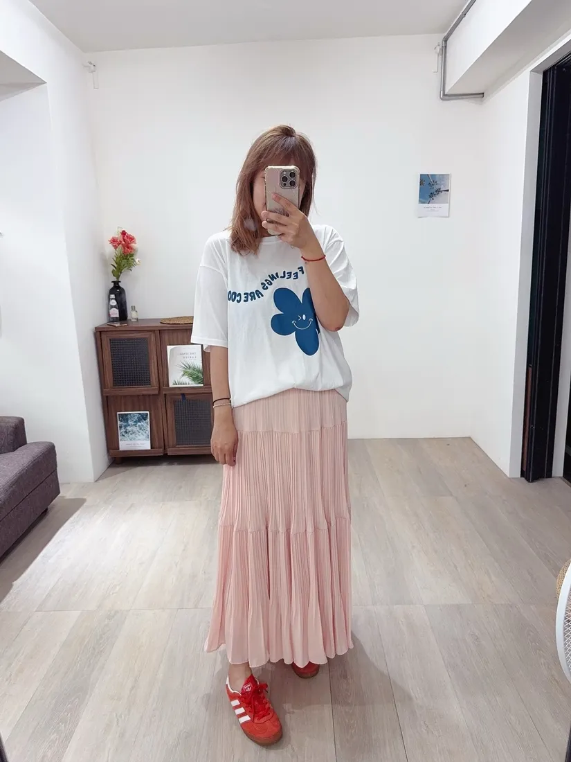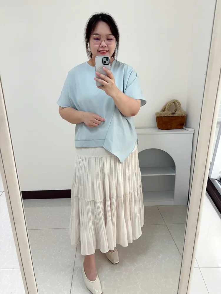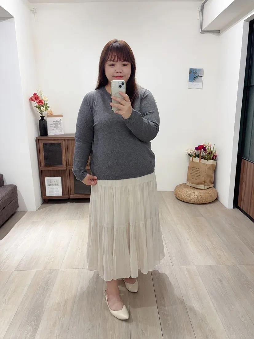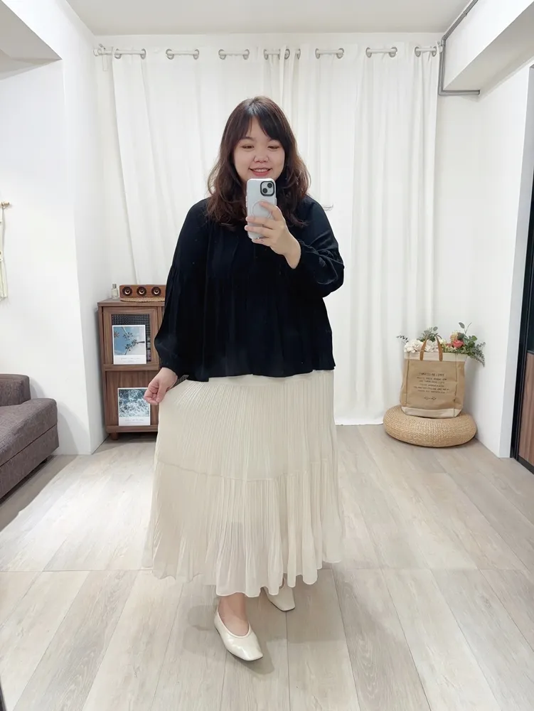 ✓ 三層百摺拼接,讓整件裙子更有層次飄逸感;百摺非常藏肉,修飾下半身