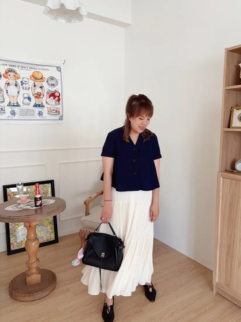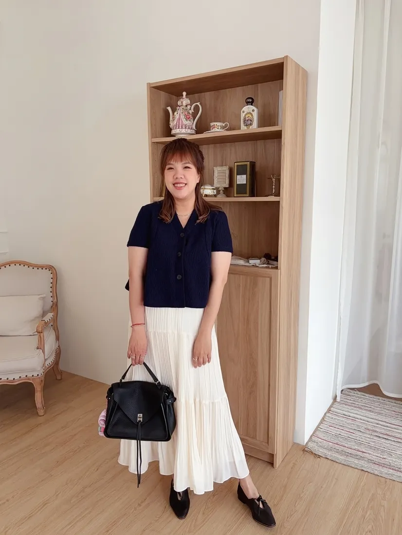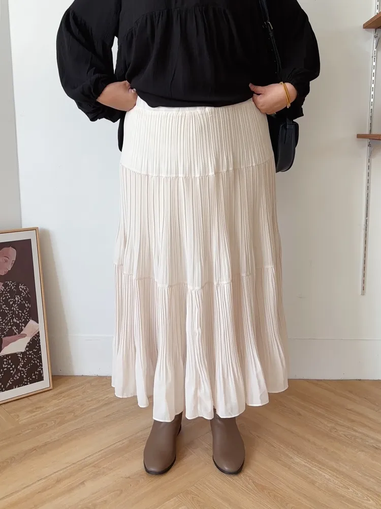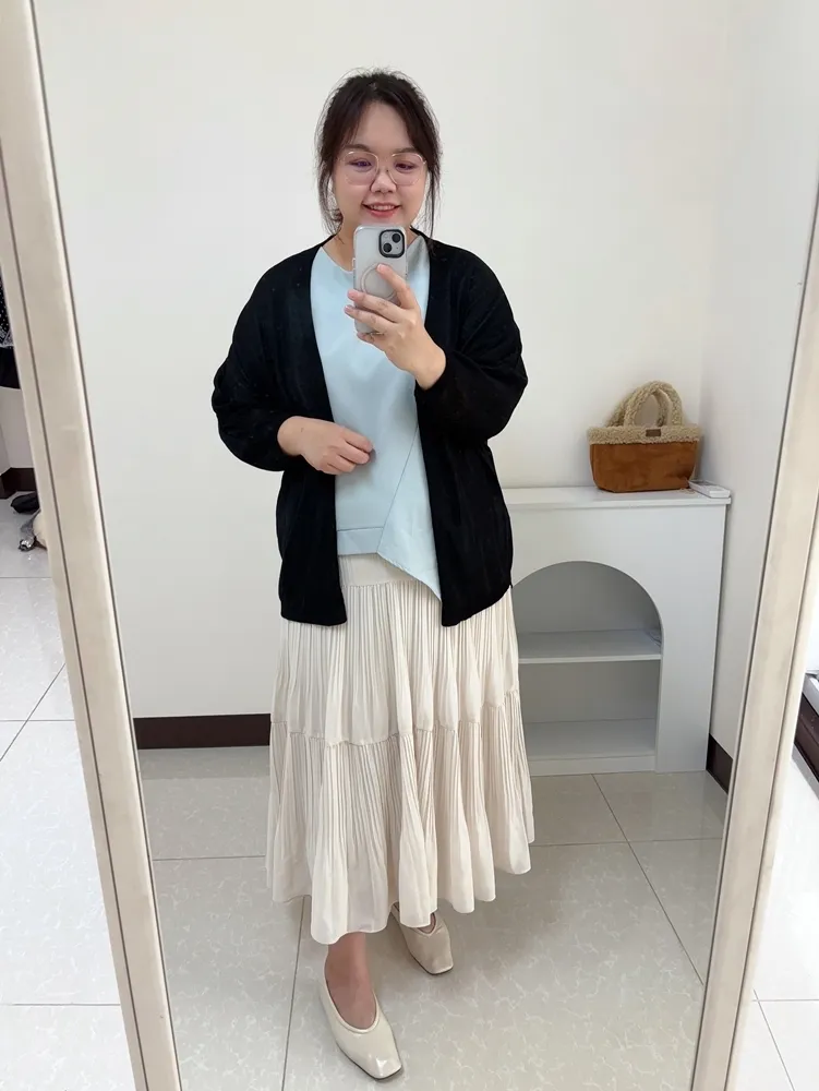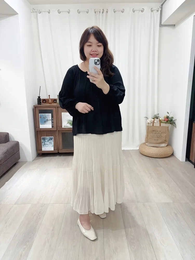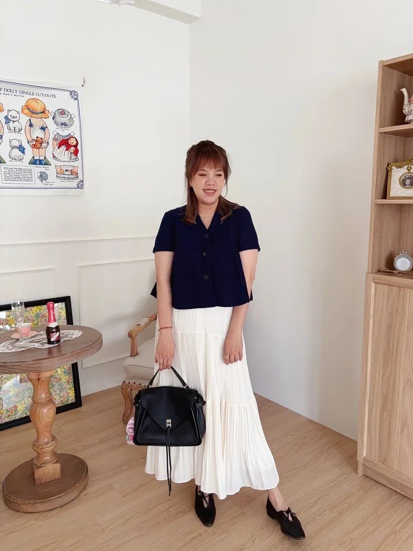 ✓ 三層百摺拼接,讓整件裙子更有層次飄逸感;百摺非常藏肉,修飾下半身