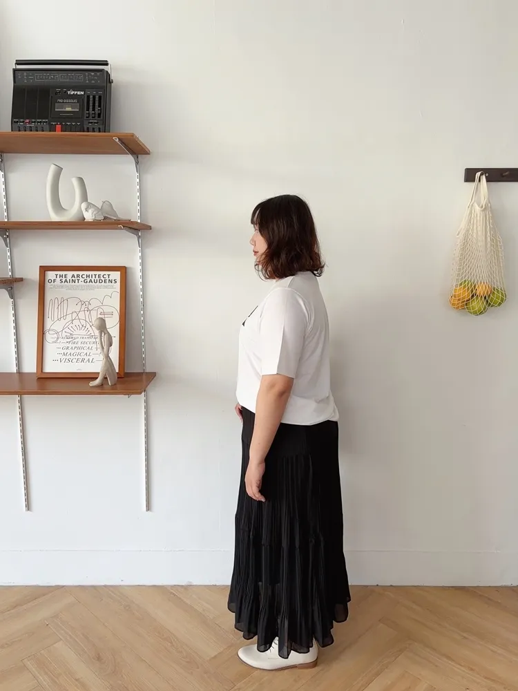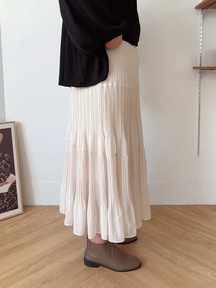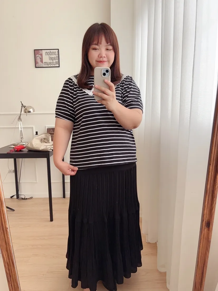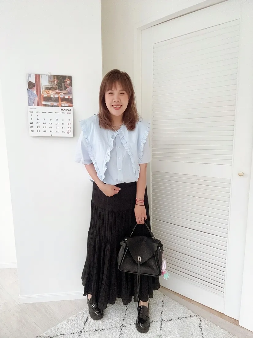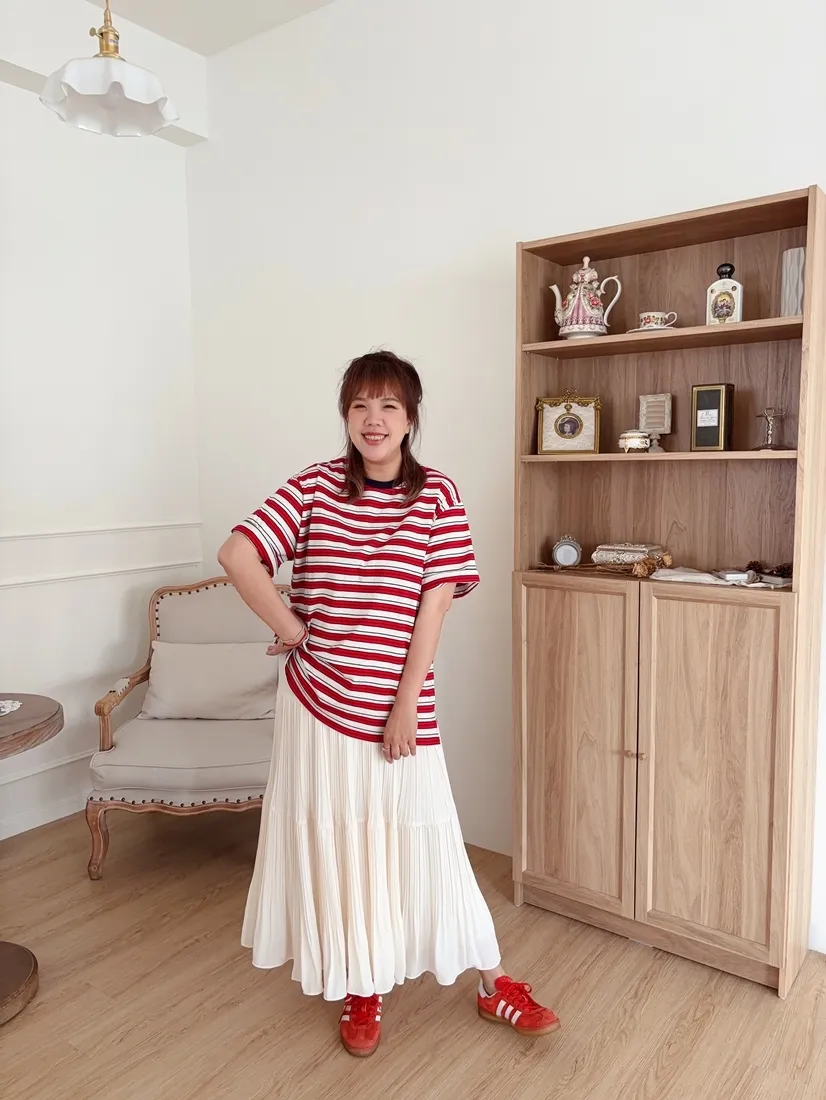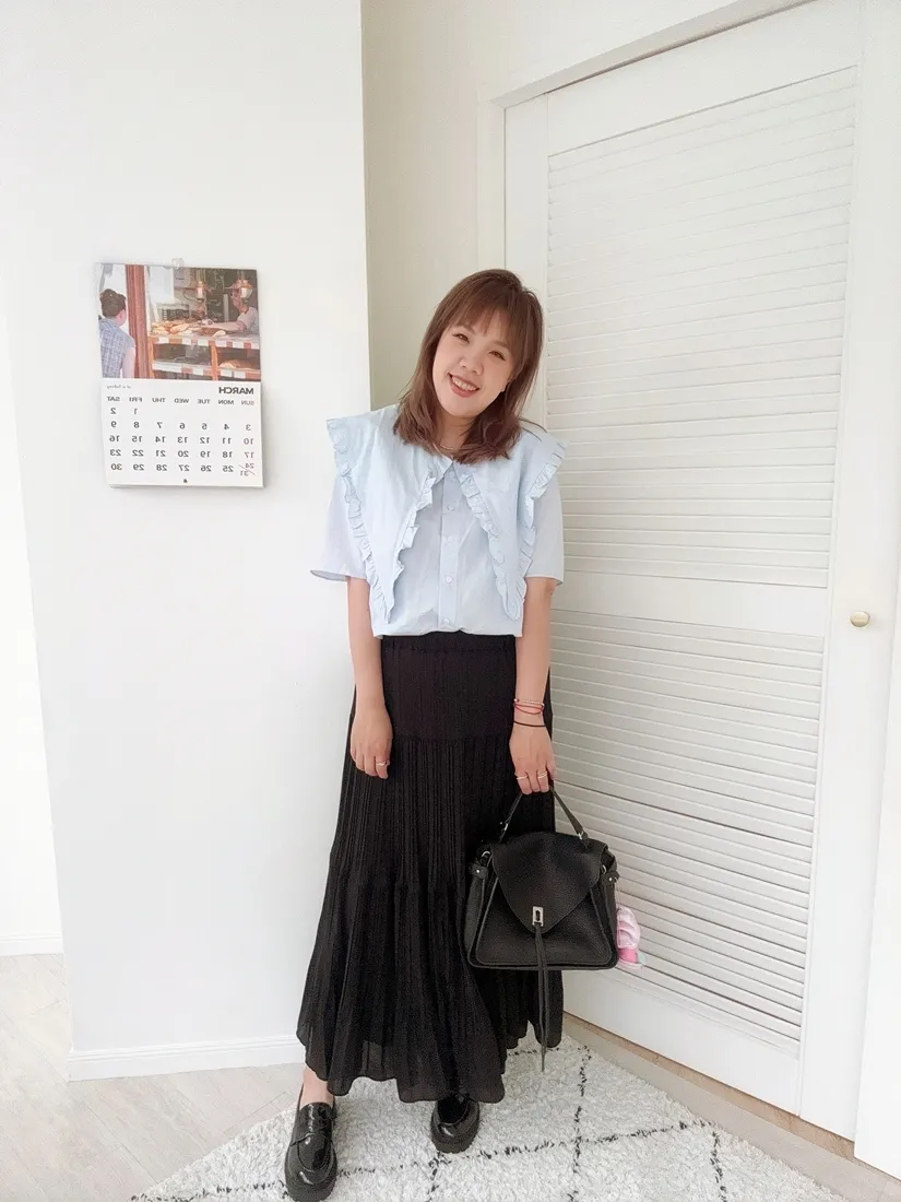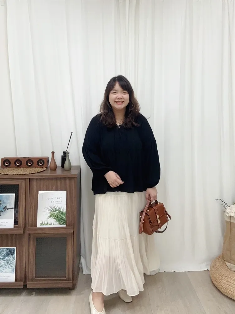 ✓ 三層百摺拼接,讓整件裙子更有層次飄逸感;百摺非常藏肉,修飾下半身