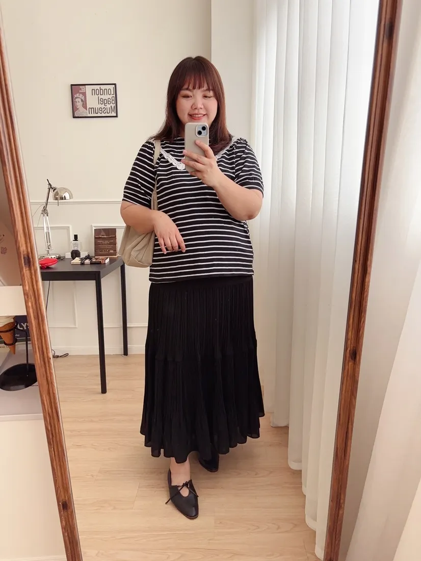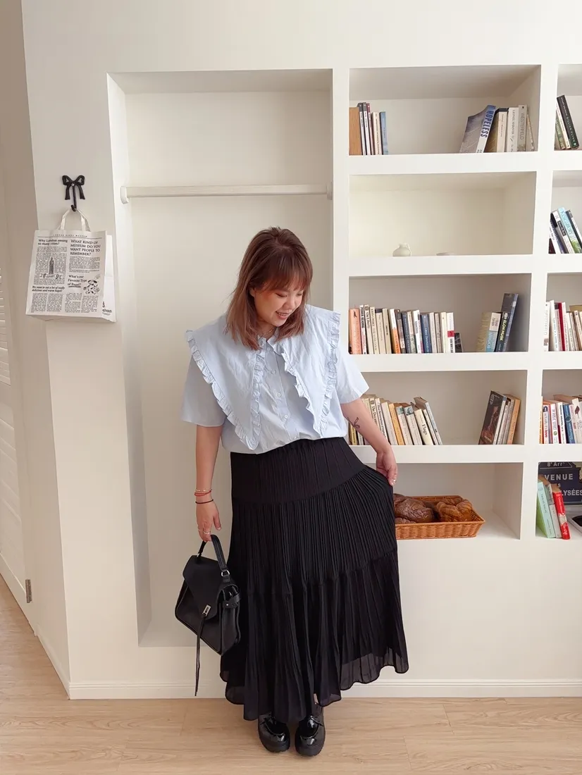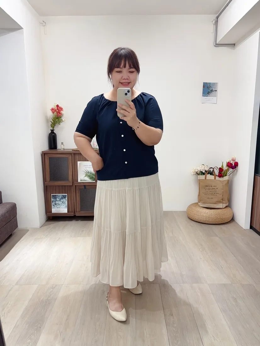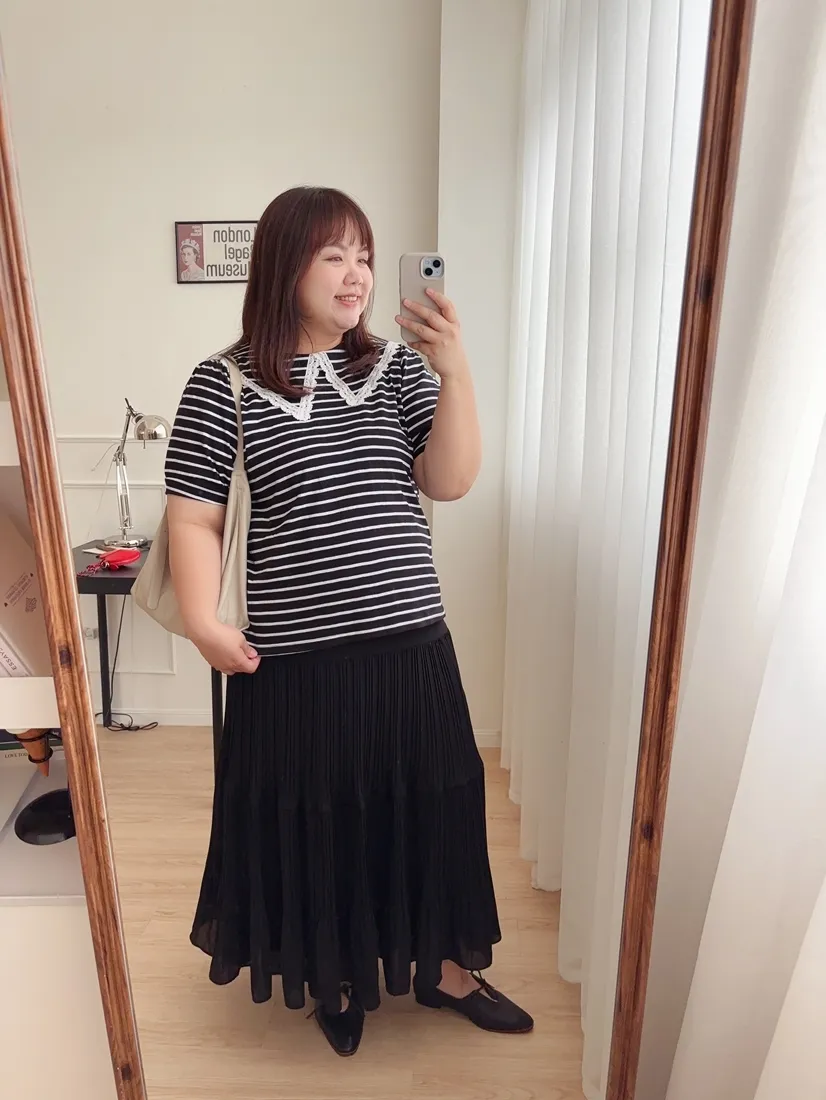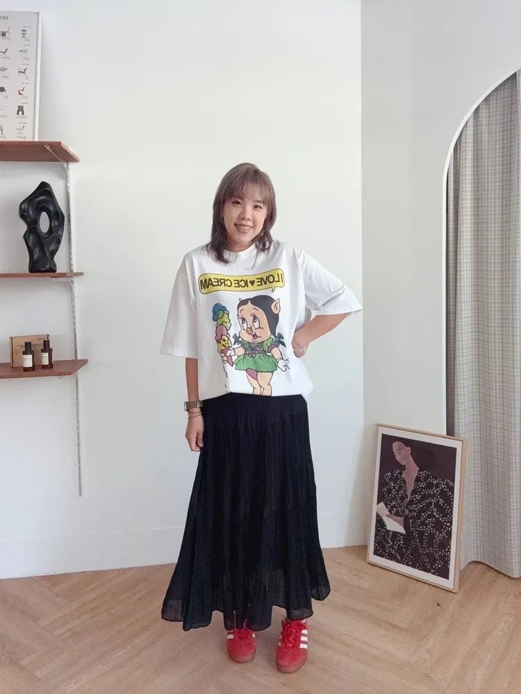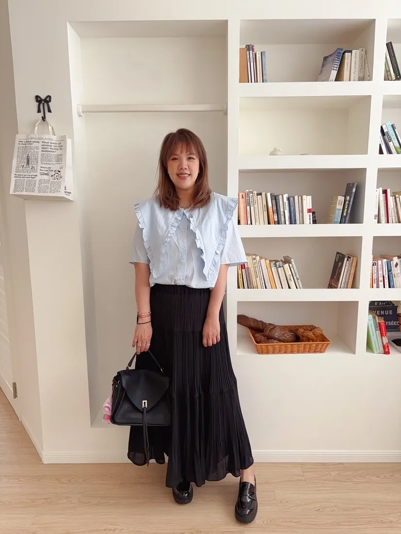 ✓ 三層百摺拼接,讓整件裙子更有層次飄逸感;百摺非常藏肉,修飾下半身