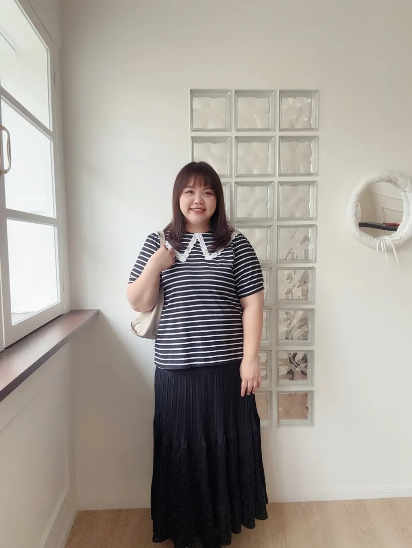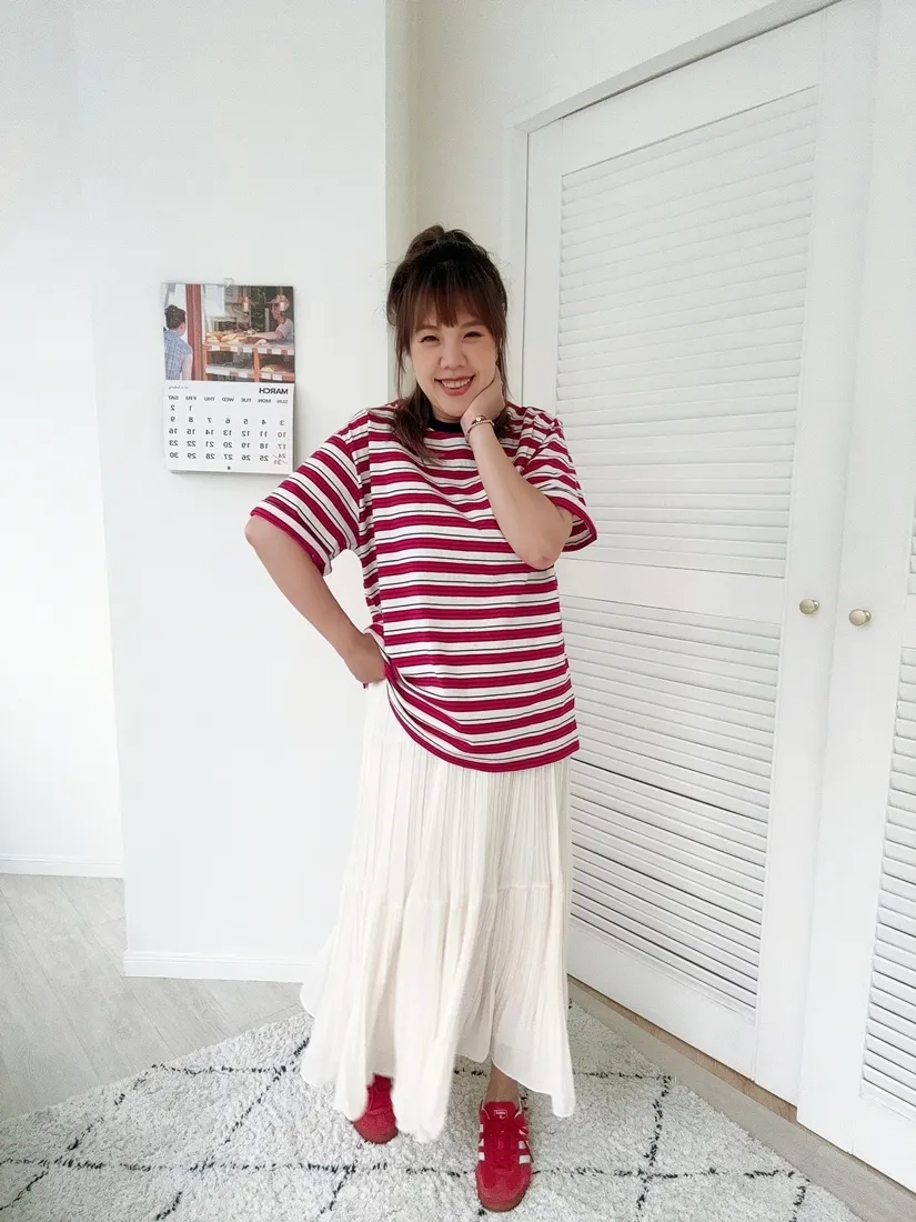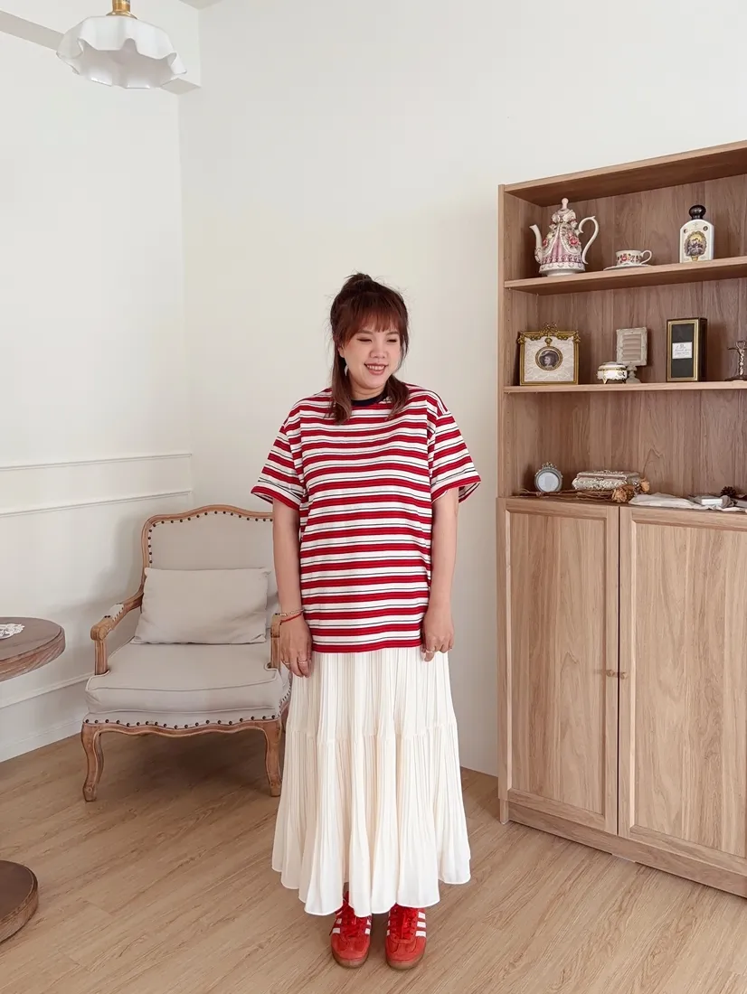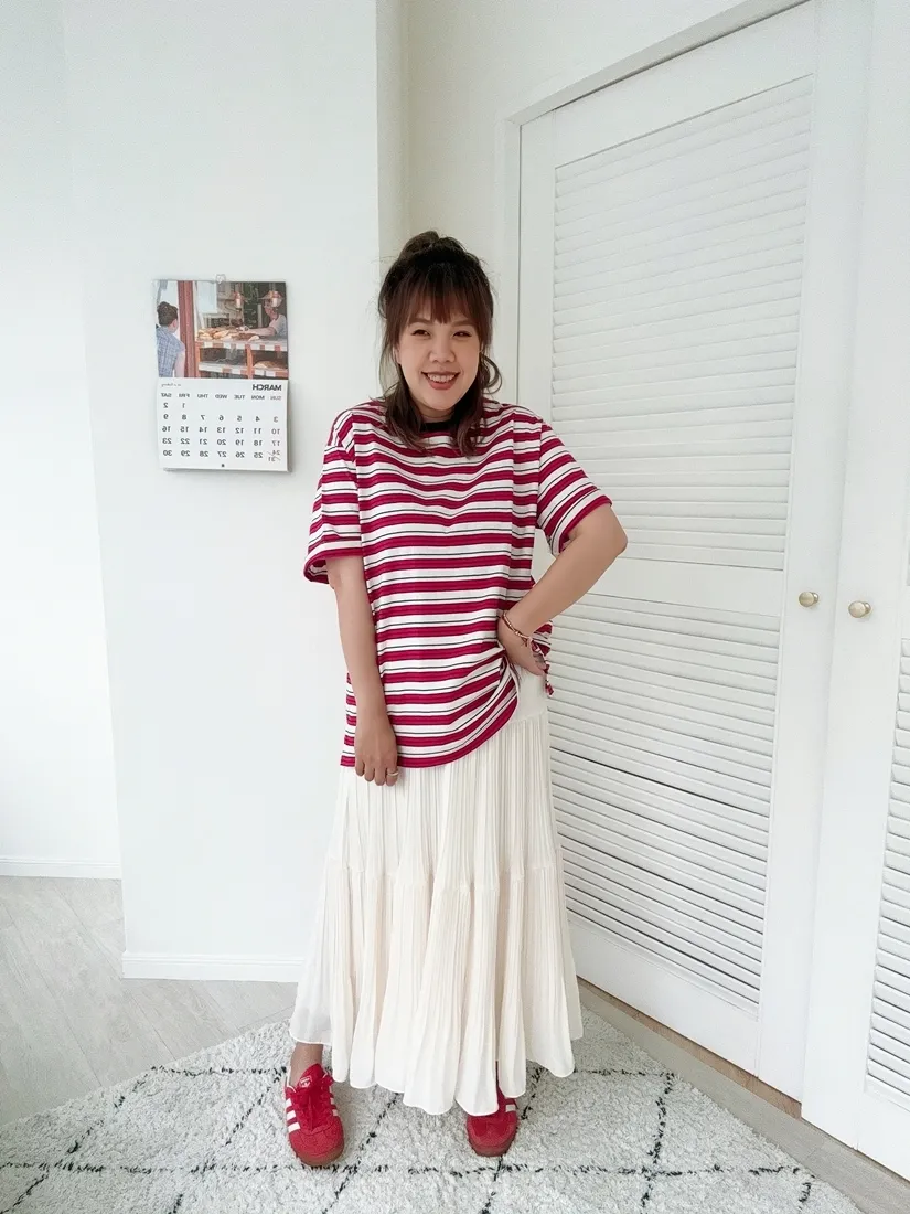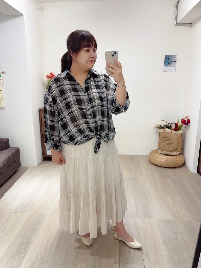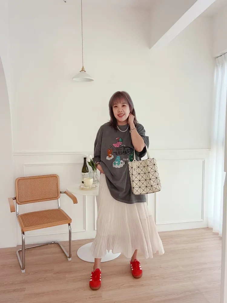 ✓ 三層百摺拼接,讓整件裙子更有層次飄逸感;百摺非常藏肉,修飾下半身