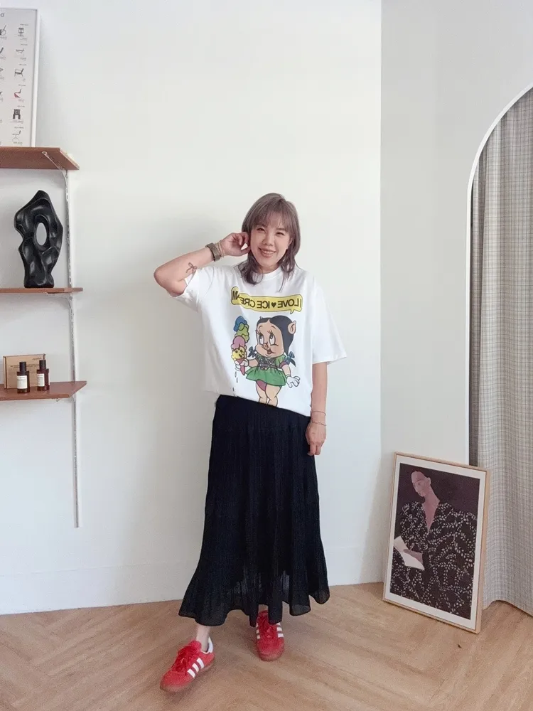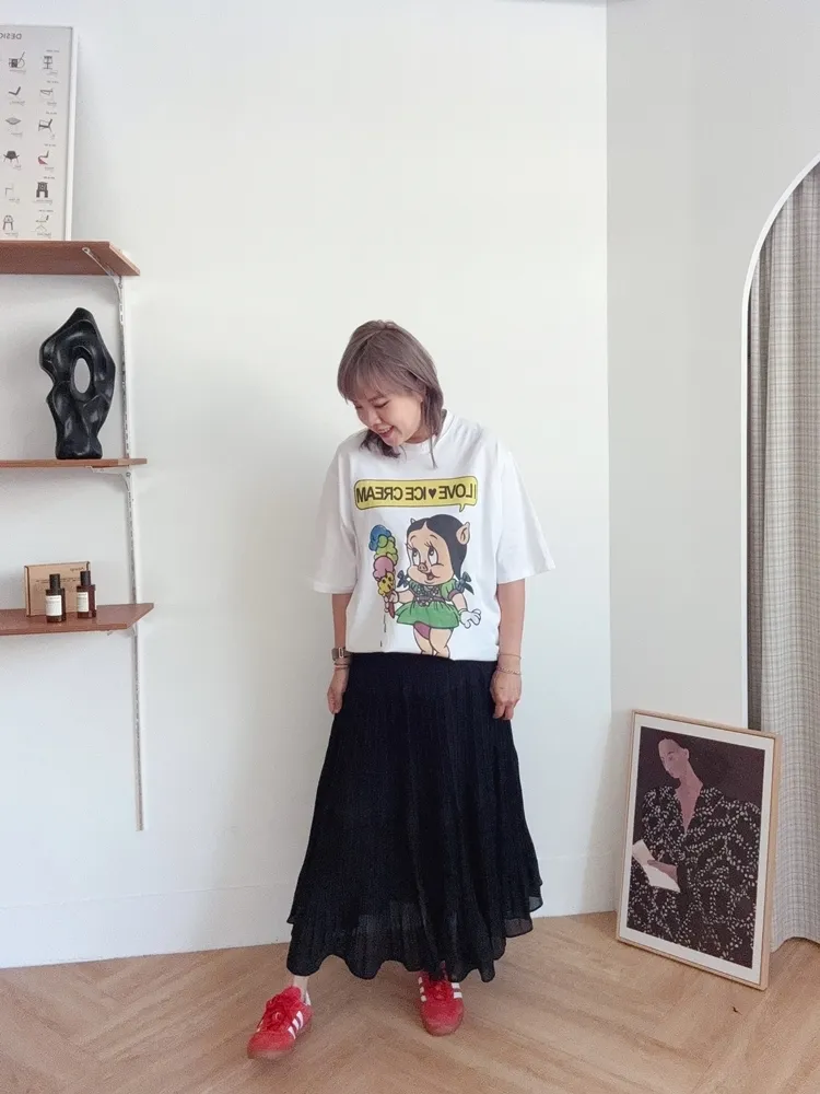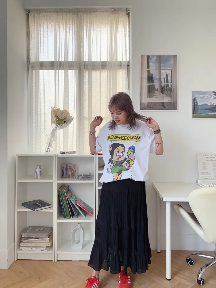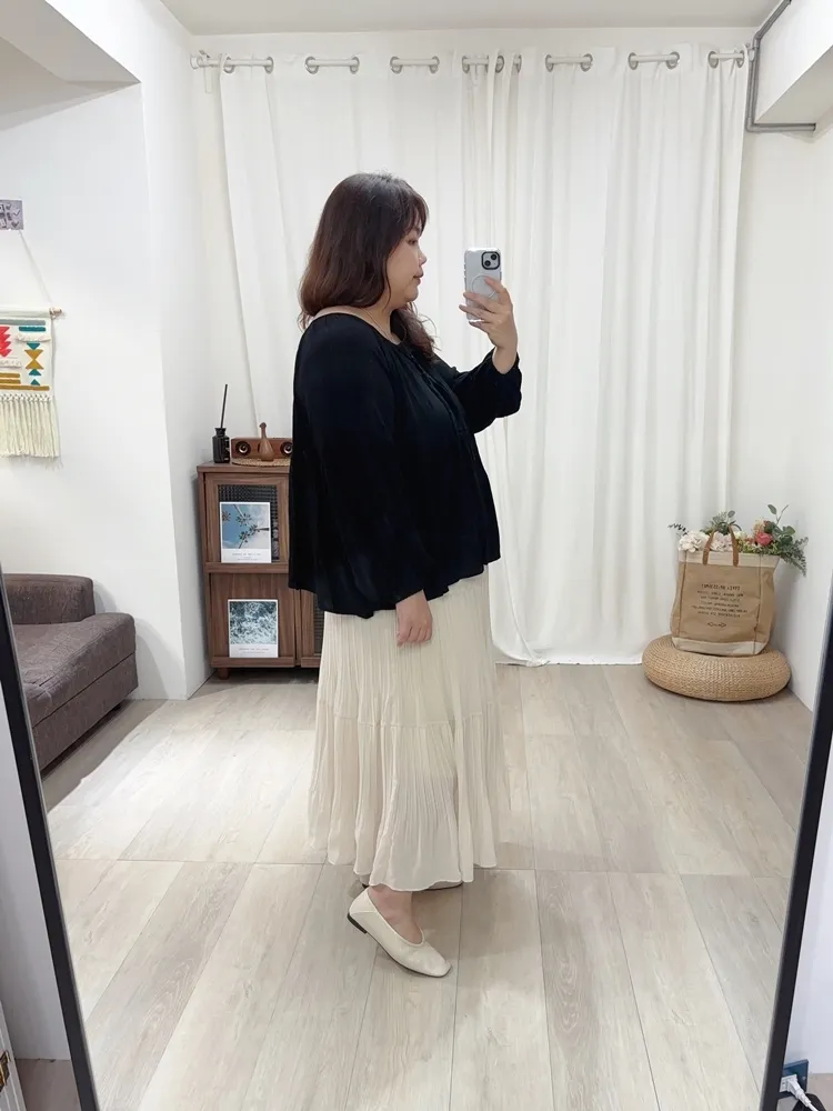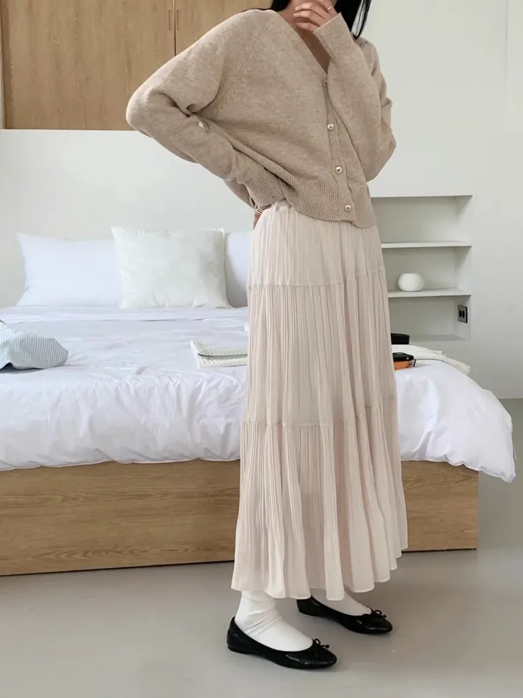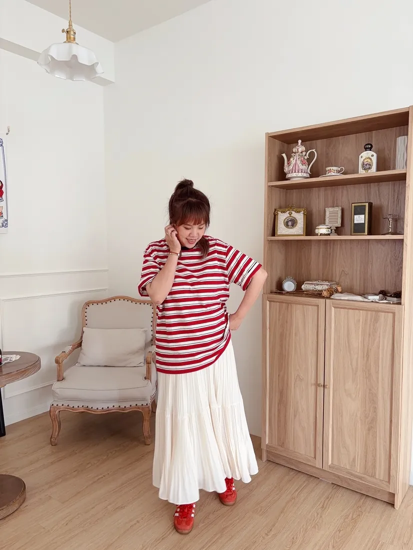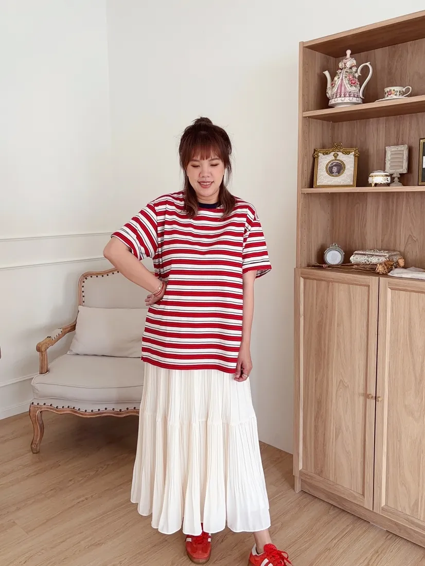 ✓ 三層百摺拼接,讓整件裙子更有層次飄逸感;百摺非常藏肉,修飾下半身