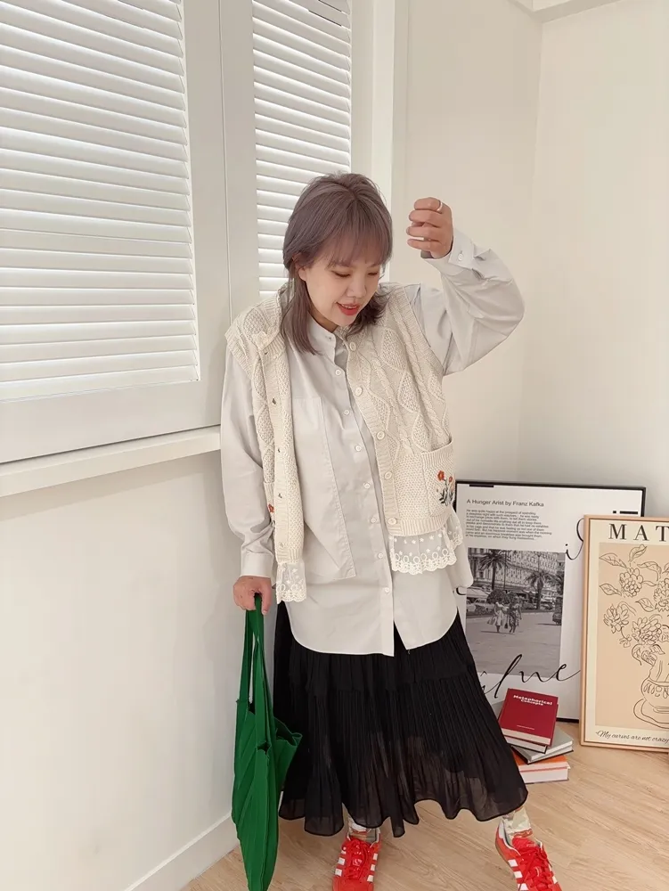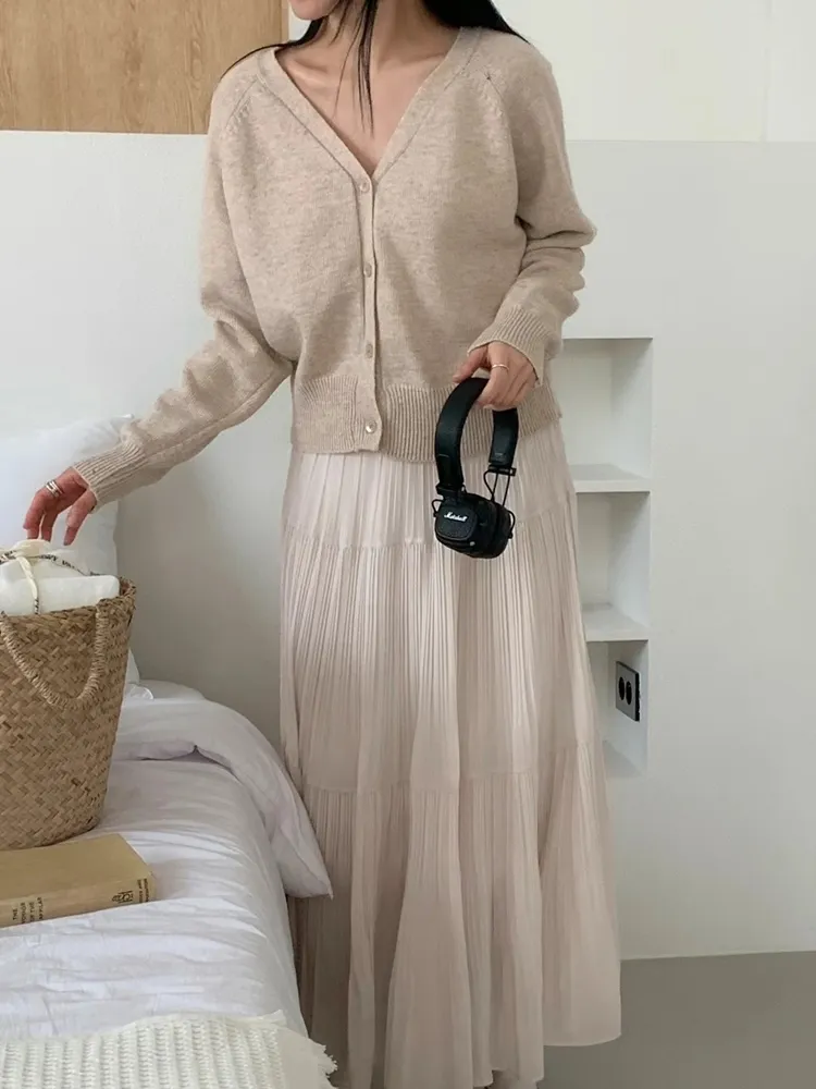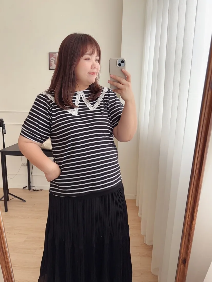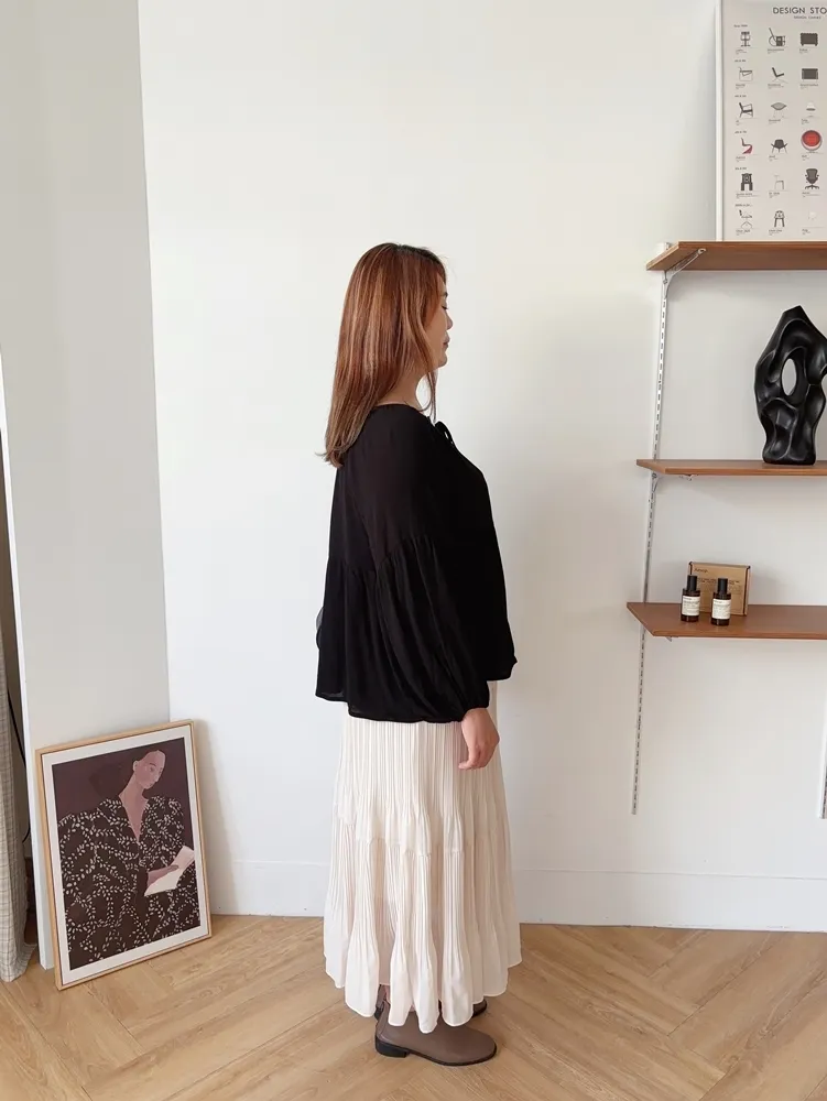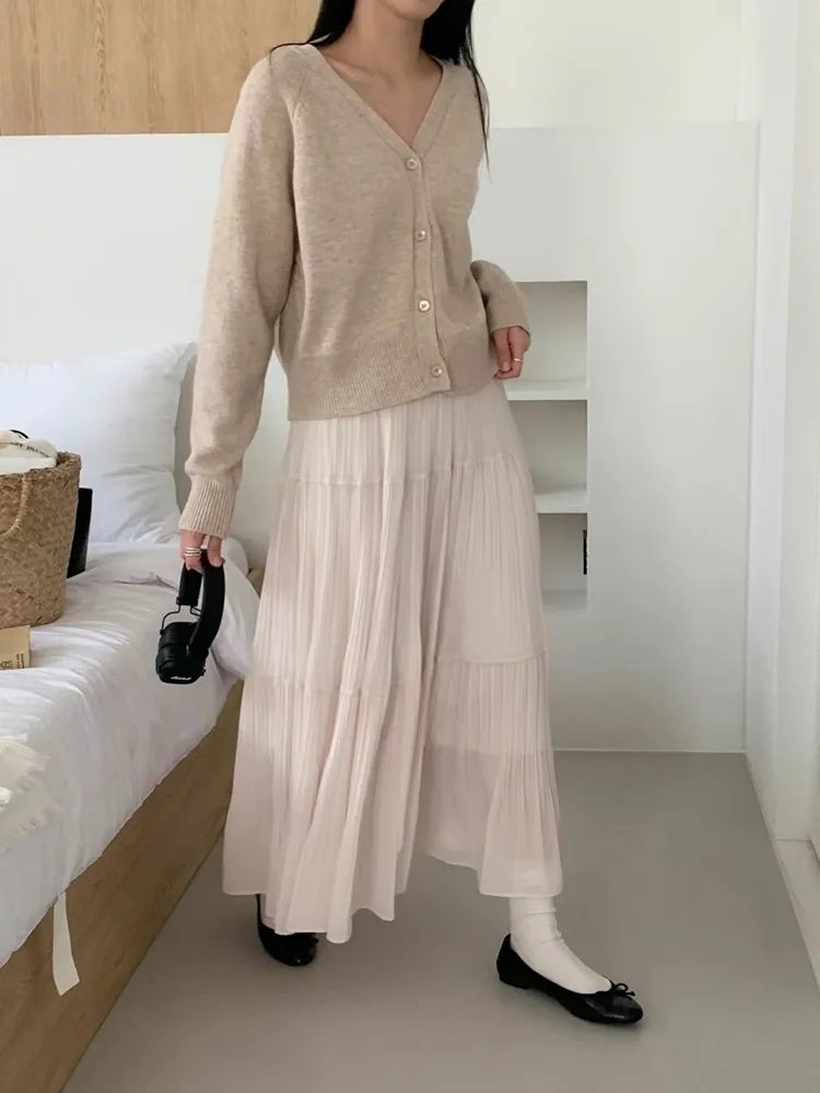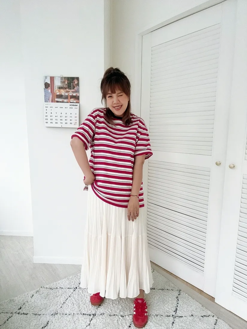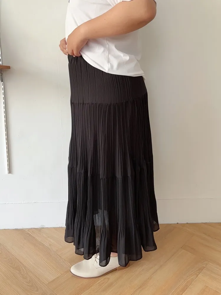 ✓ 三層百摺拼接,讓整件裙子更有層次飄逸感;百摺非常藏肉,修飾下半身
