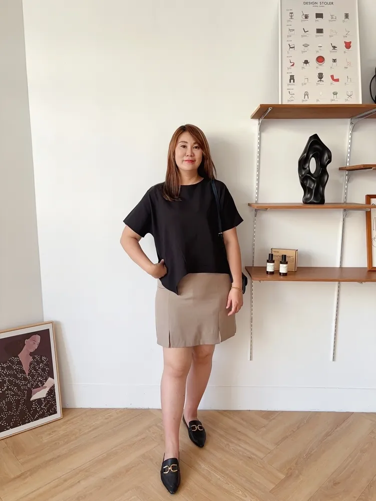 ✓ 正面下擺開岔