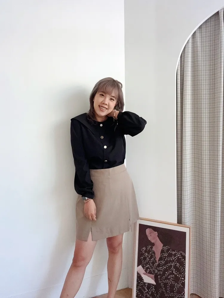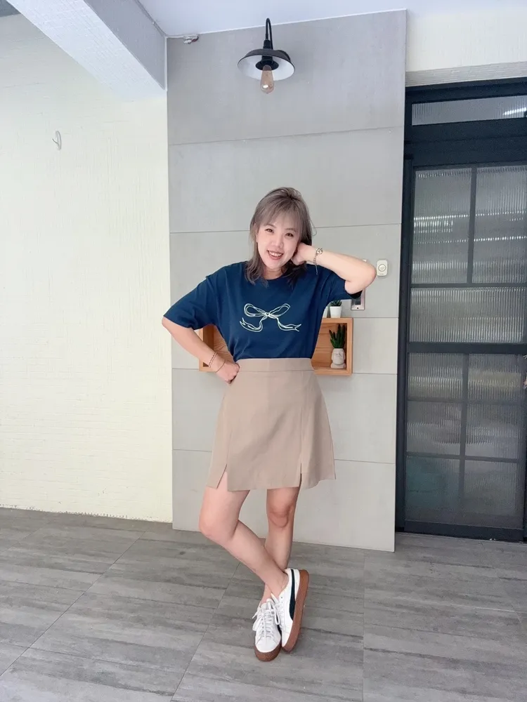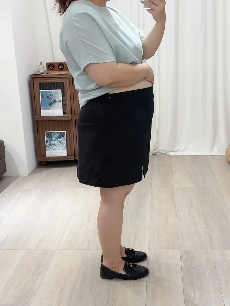 ✓ 側拉鍊穿脫,裙頭後伸縮彈性