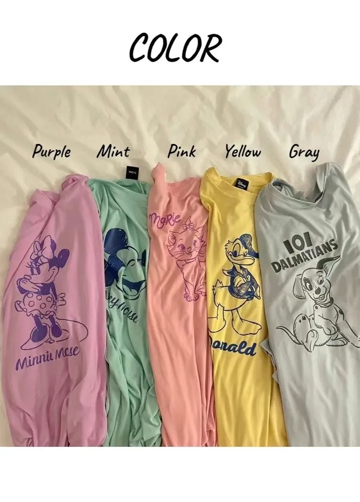 .顏色:米妮紫、米奇薄荷綠、瑪麗貓粉、唐老鴨黃、101忠狗灰 (實色請參考衣服單拍照)