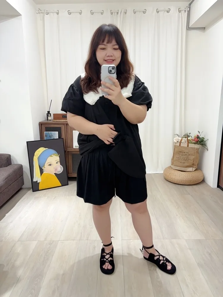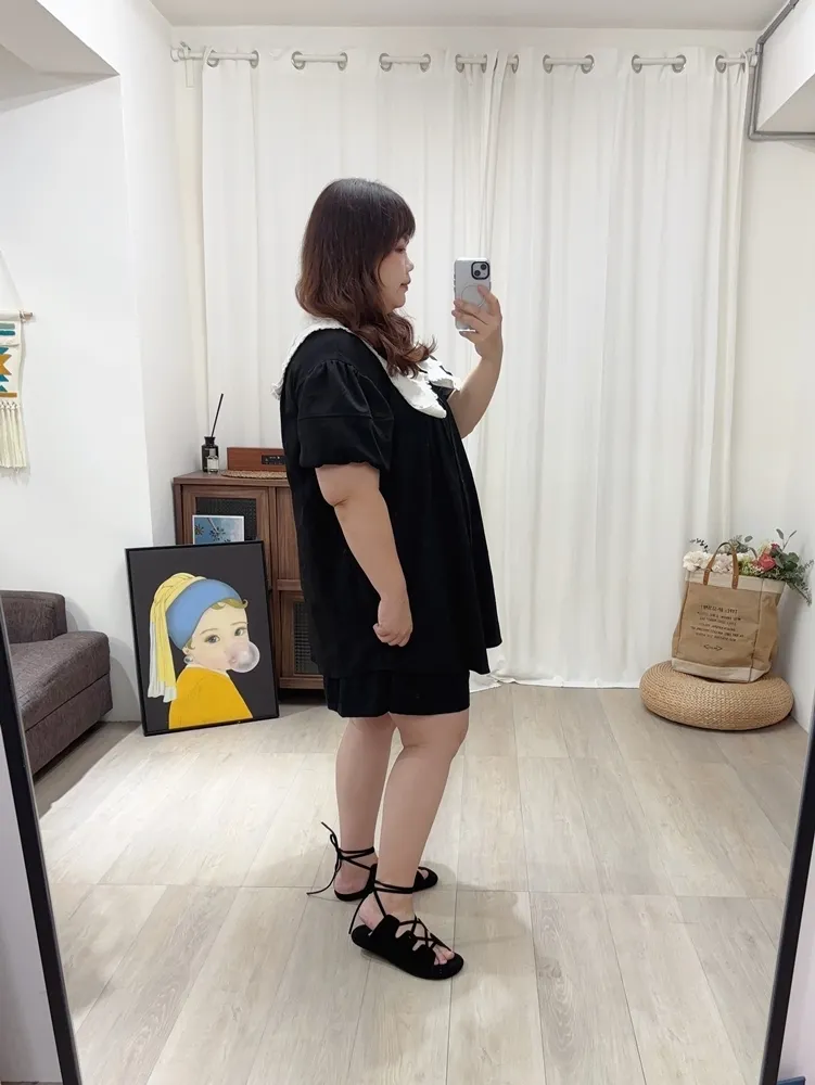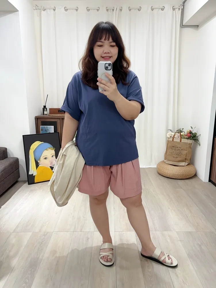 ※ 這件鬆緊帶還沒拉開的時候比較小,腰圍或肚子比較大的妞,穿久會有勒感,加上短褲蓮妞喜歡穿高腰,但這件穿高腰會卡檔,蓮妞有跟廠商自訂加大款,主要是把『腰圍放大、褲檔加長』,其他地方不變哦!跟蓮妞一樣胖肚子、或是想要穿舒服的妞,要把握這次上架一起製作的機會哦 ※