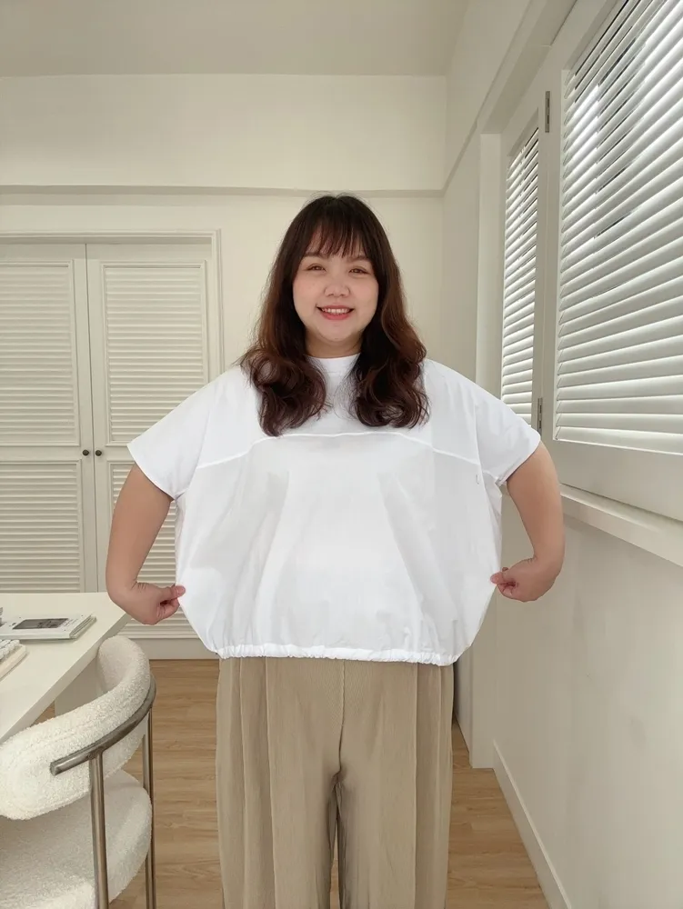 ✓ 下擺拼接襯衫棉,穿上有空氣氣球感