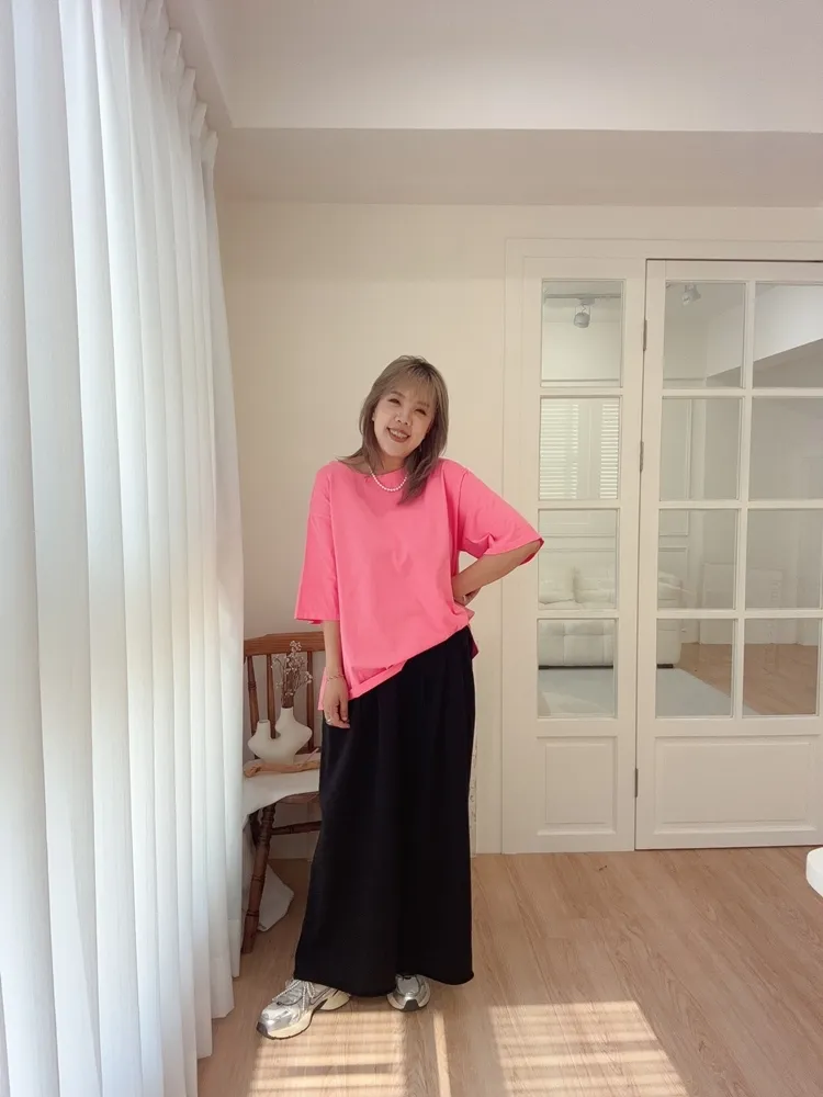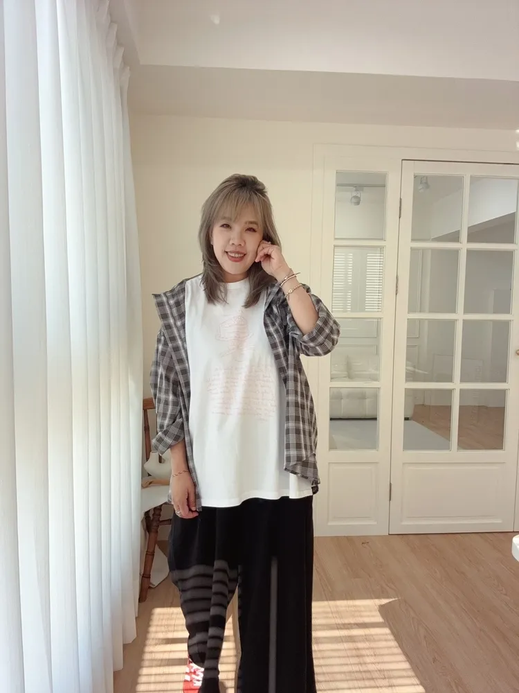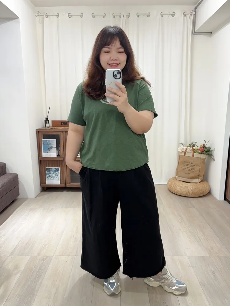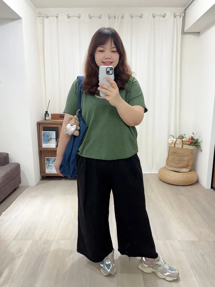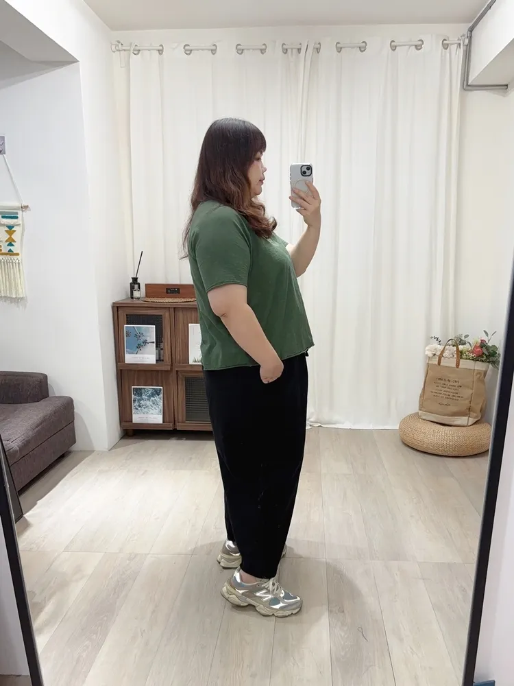 | F | 32-55(25-43吋) | 60(47吋) | 44 | 41 | 93 | 歐妞穿寬鬆/蓮妞穿合身,腹部打折微開/怡玲穿微寬鬆/Ivy穿微鬆 |