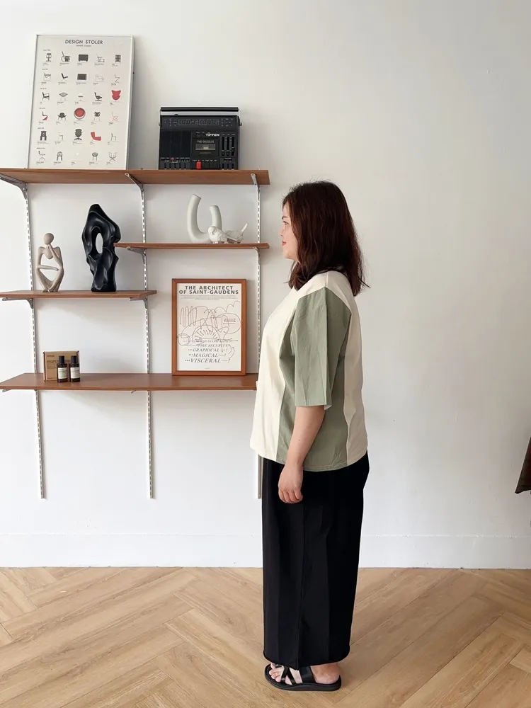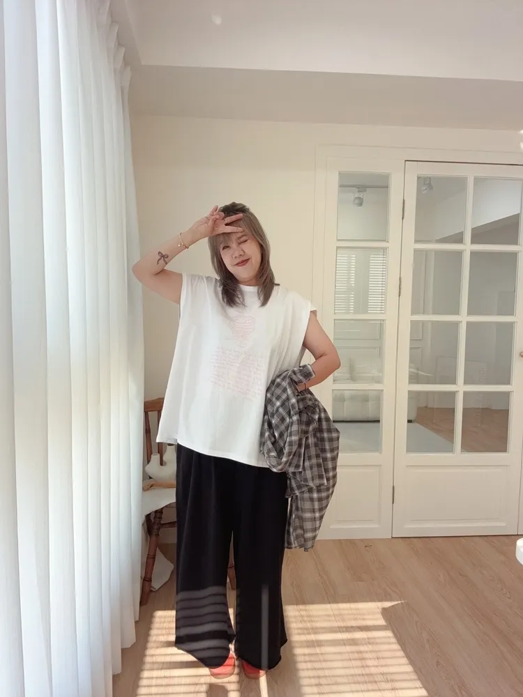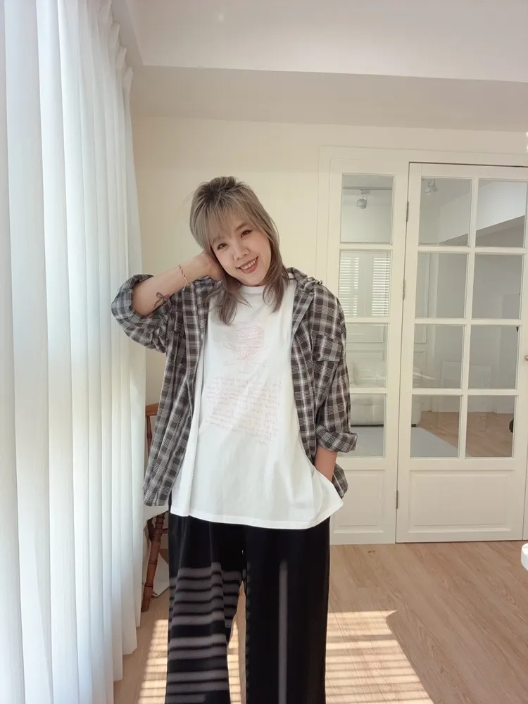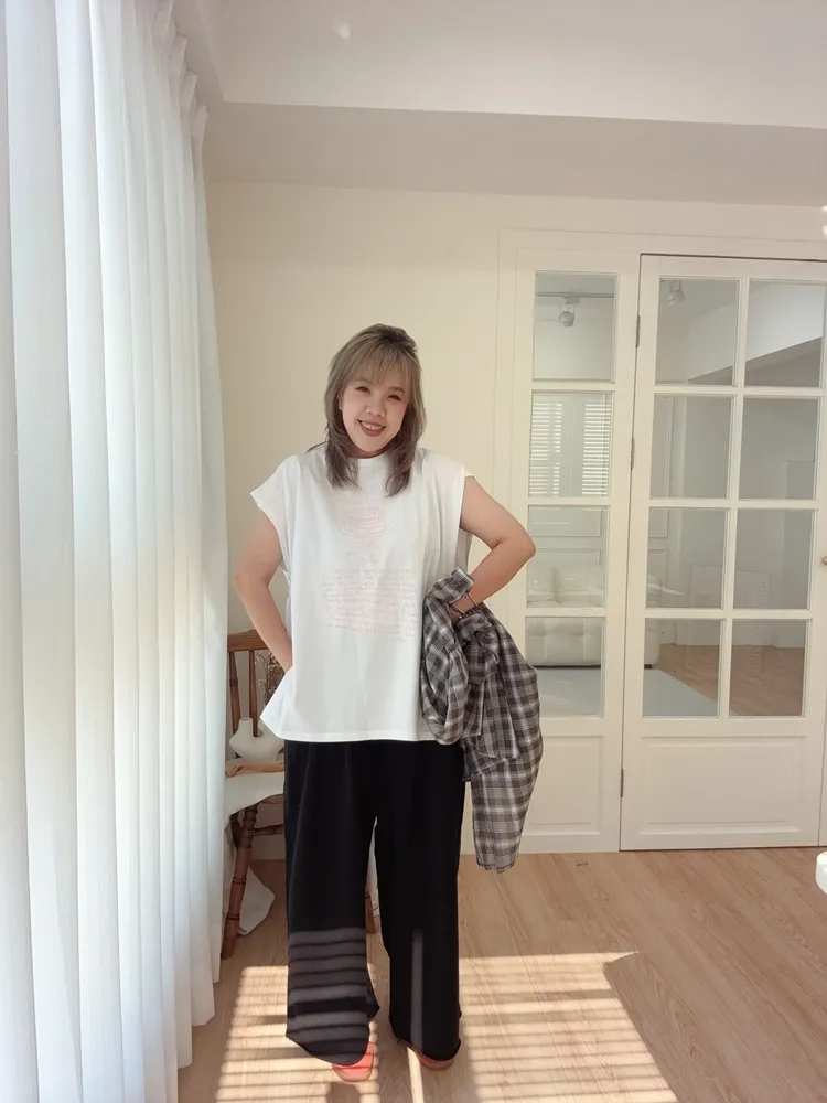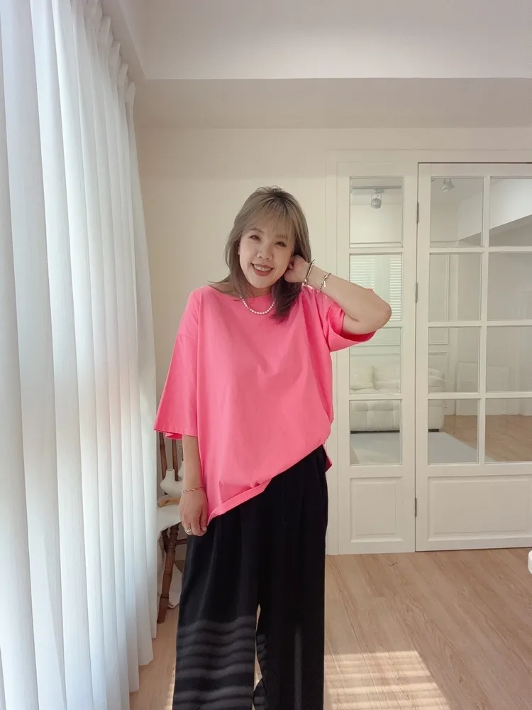 | F | 32-55(25-43吋) | 60(47吋) | 44 | 41 | 93 | 歐妞穿寬鬆/蓮妞穿合身,腹部打折微開/怡玲穿微寬鬆/Ivy穿微鬆 |