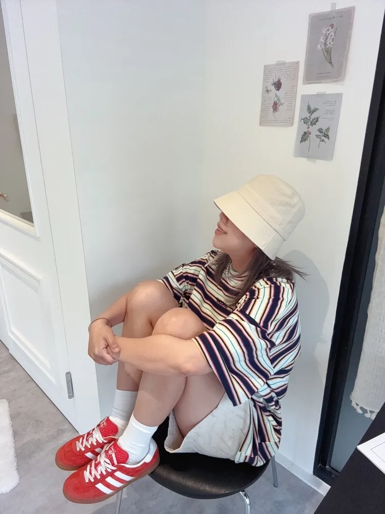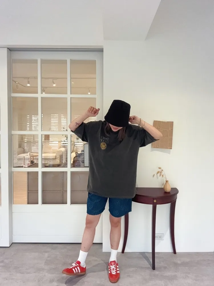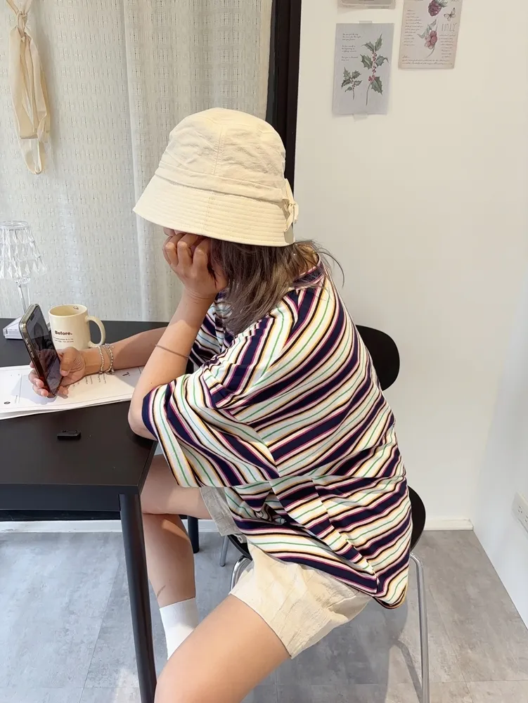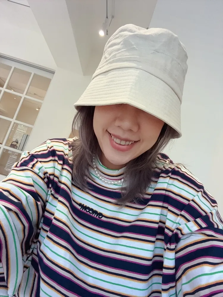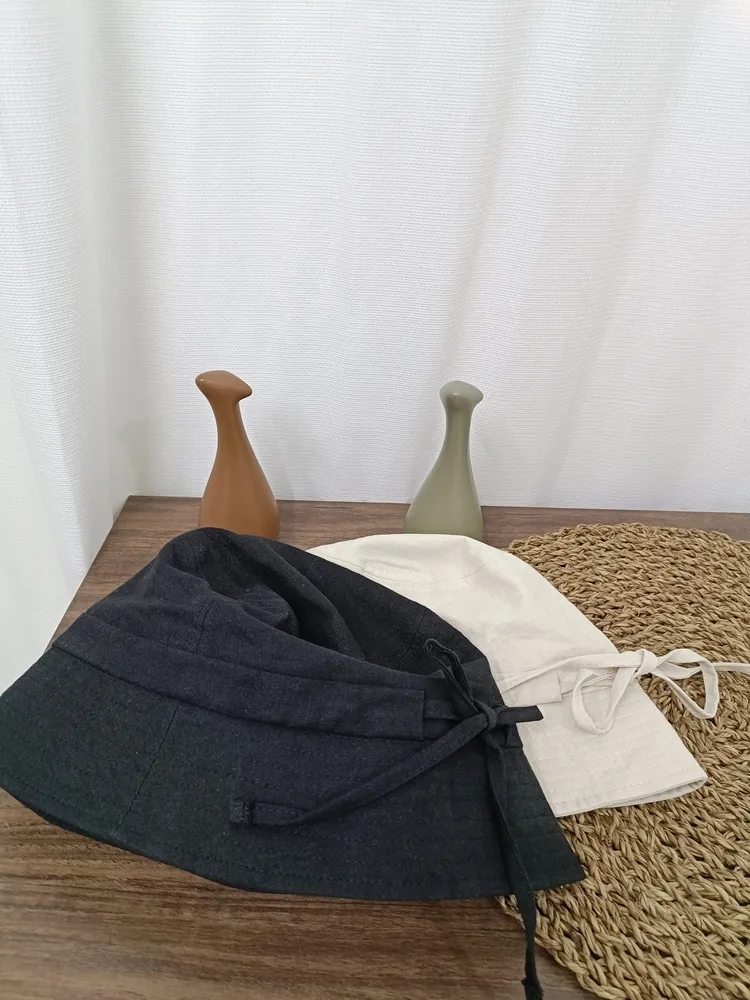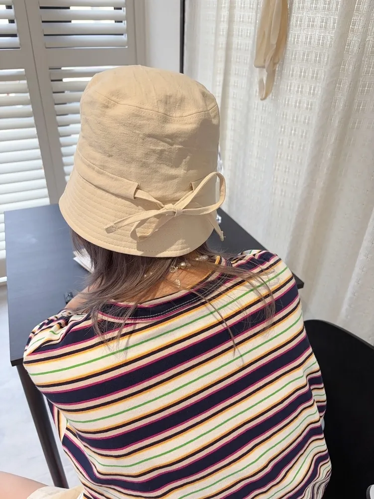 這款戴上很顯頭小,背面有簡單蝴蝶結綁帶