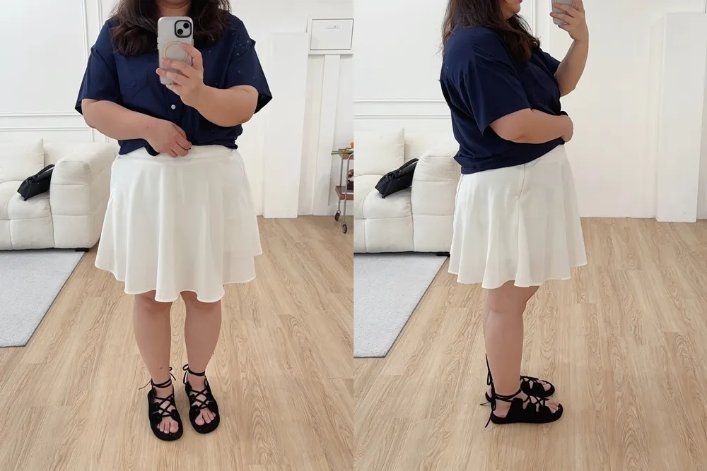 ✓ 雪紡材質,有同材質內裡短褲,布料有些微彈性