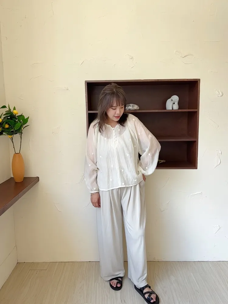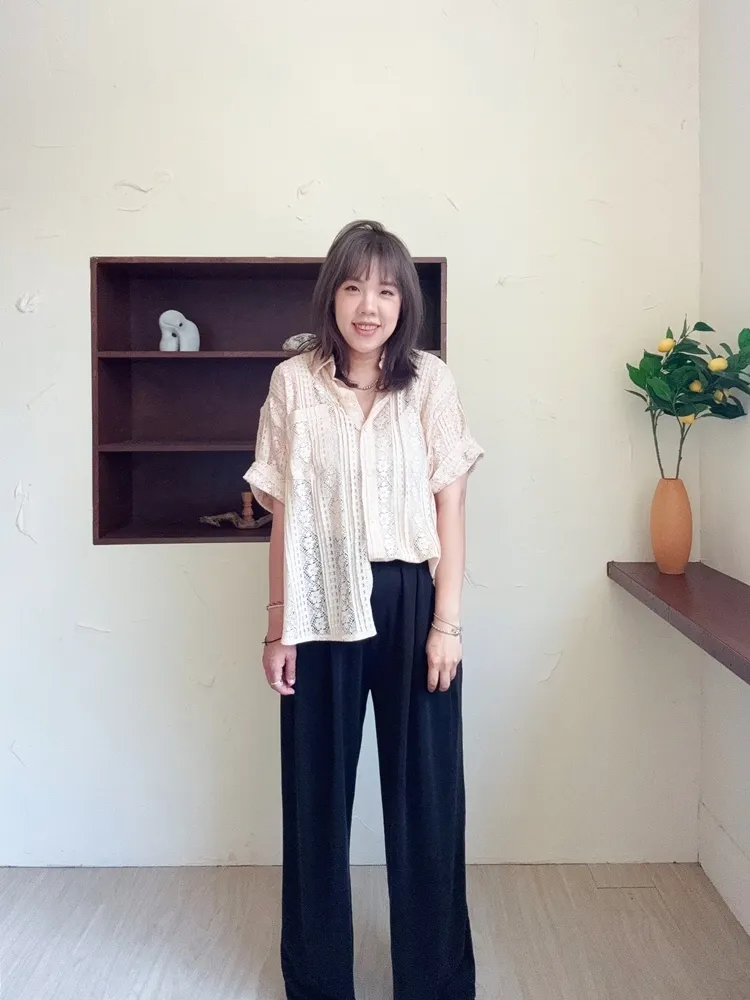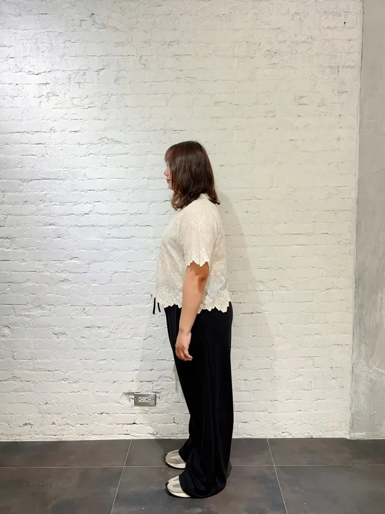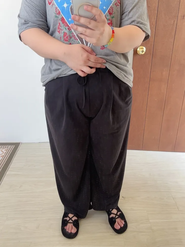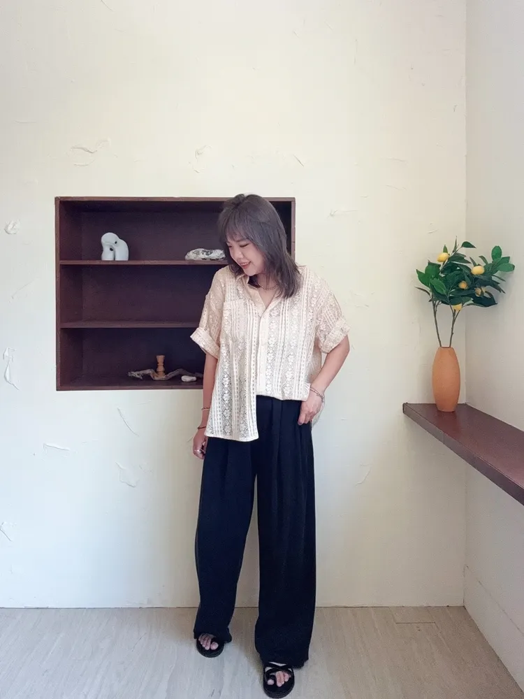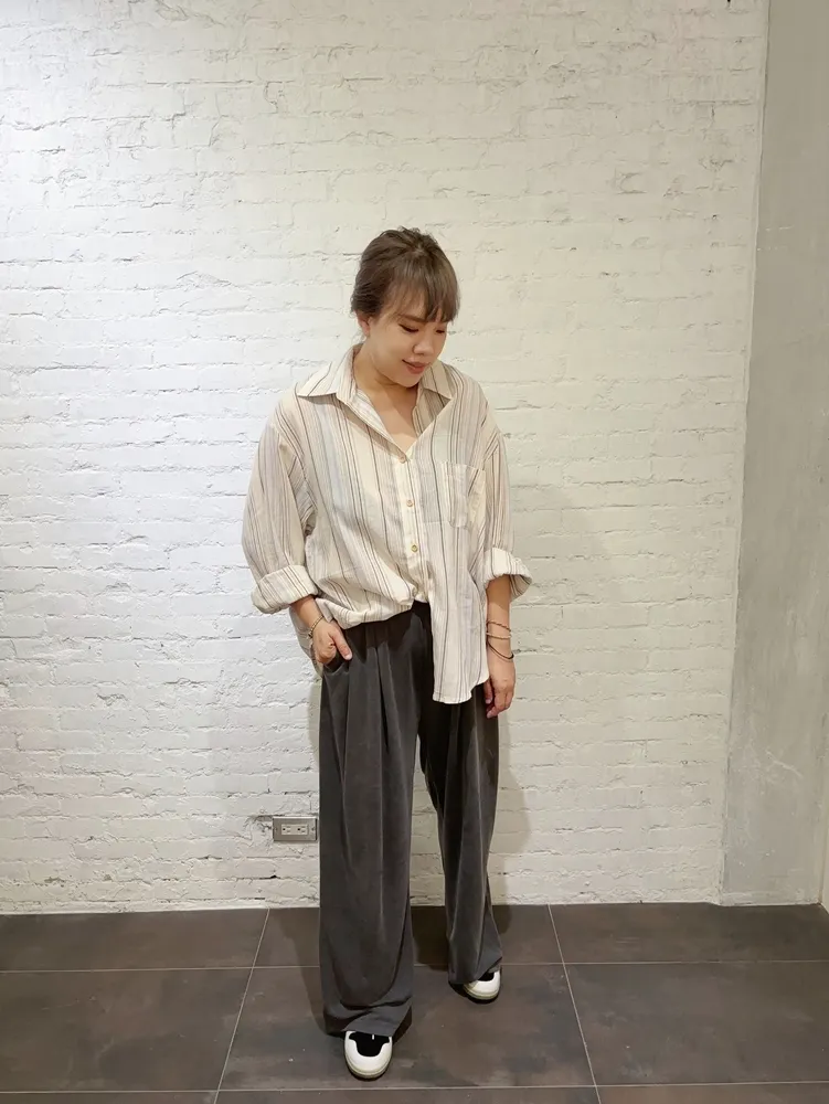 直筒褲型,布料垂墜度很好,穿上很顯腿長