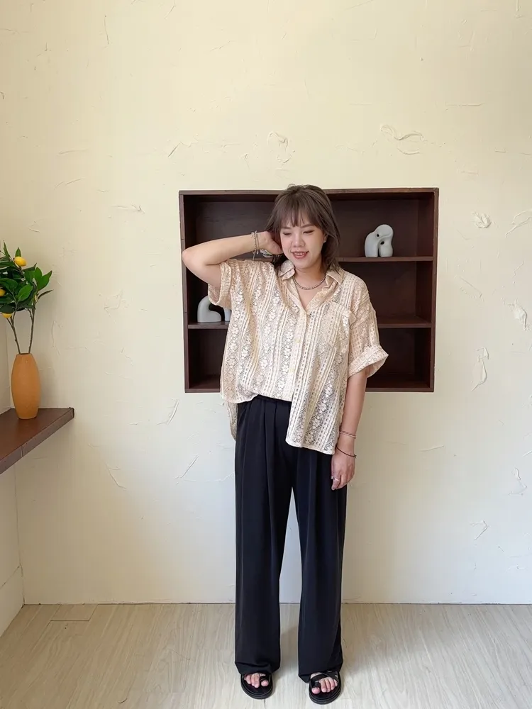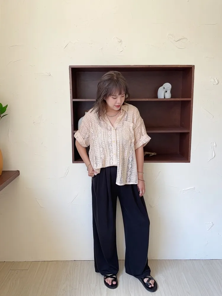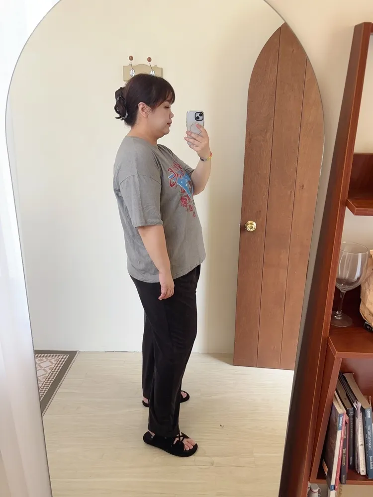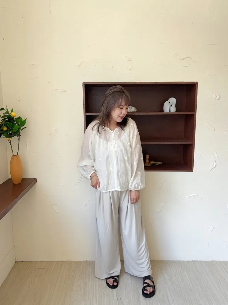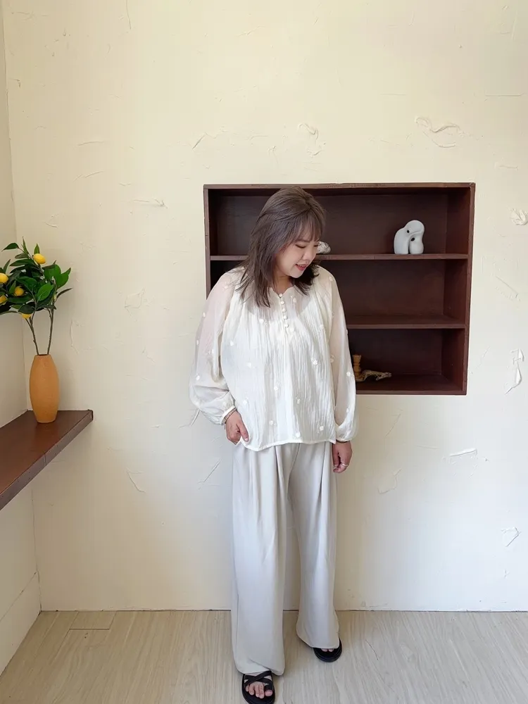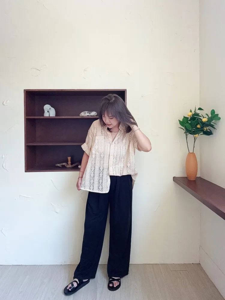 直筒褲型,布料垂墜度很好,穿上很顯腿長
