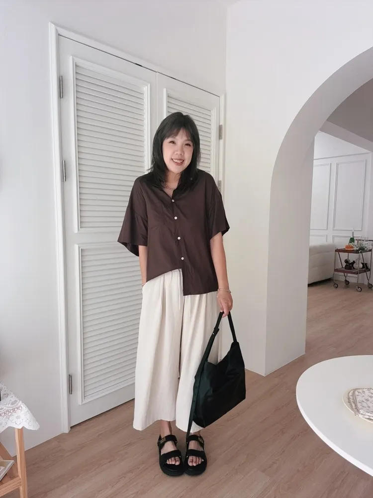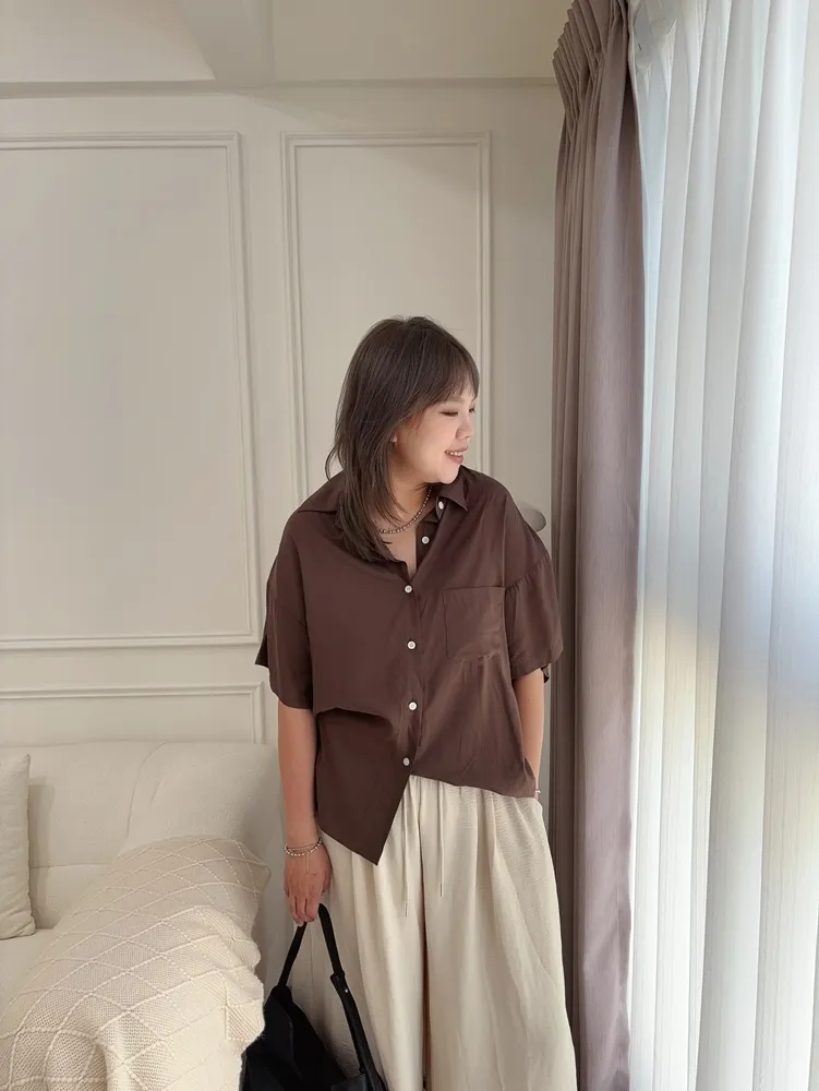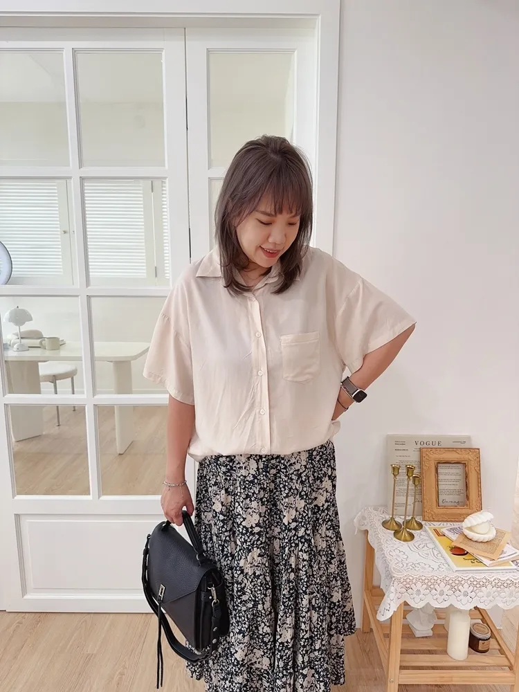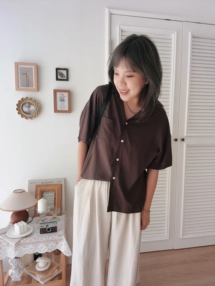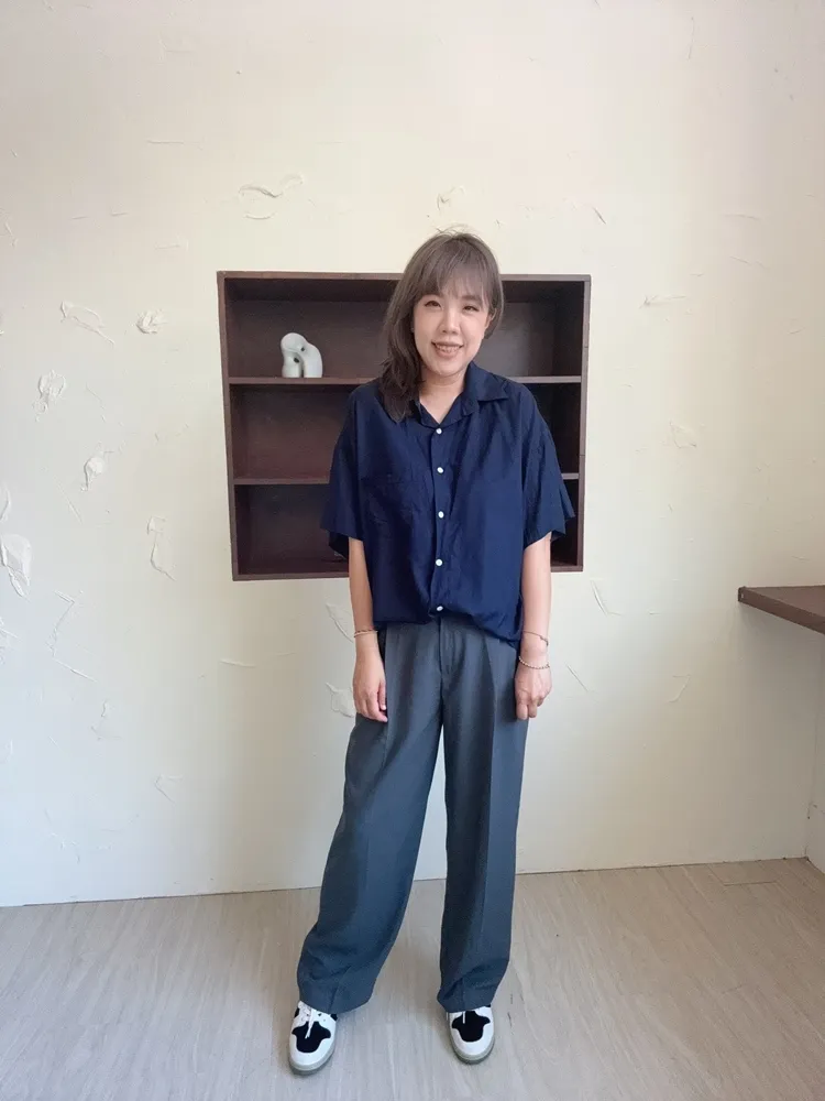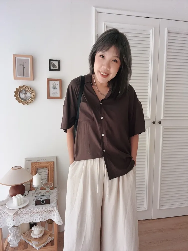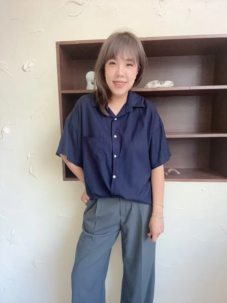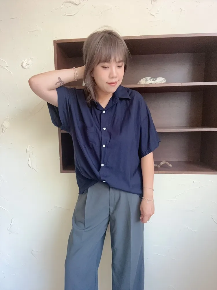 ✓ 寬袖設計,近五分袖長,是一件不束縛、隨興感的襯衫