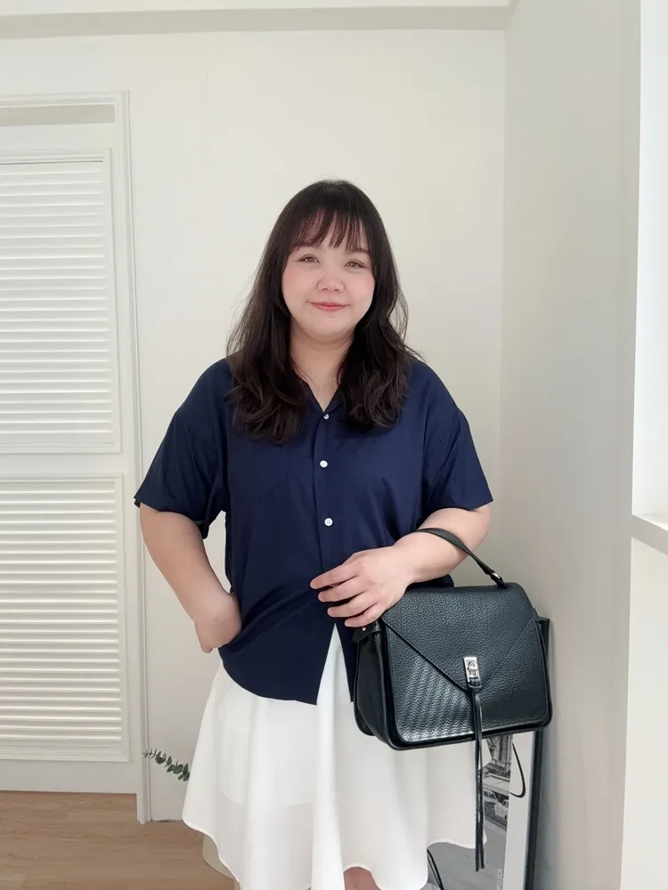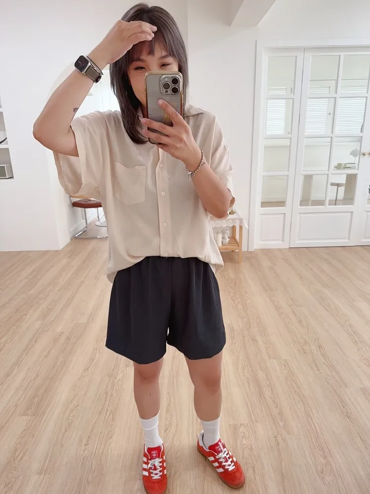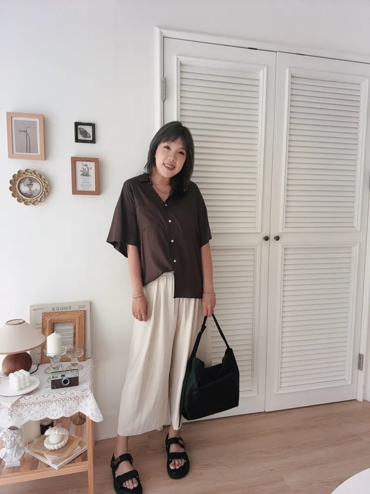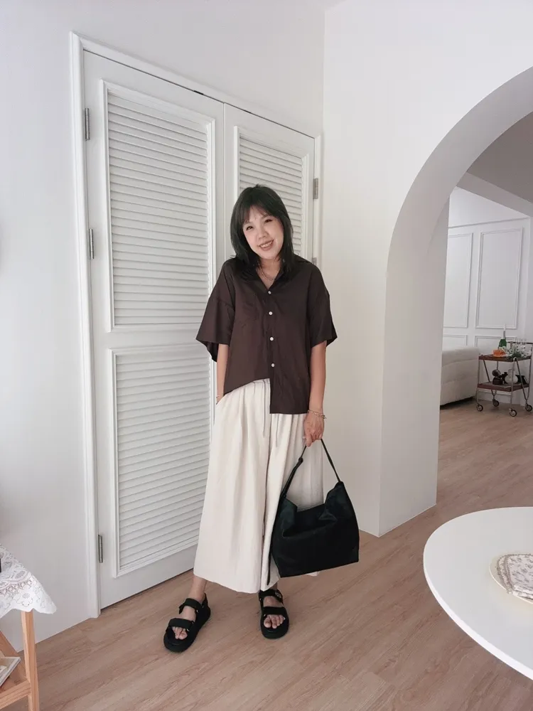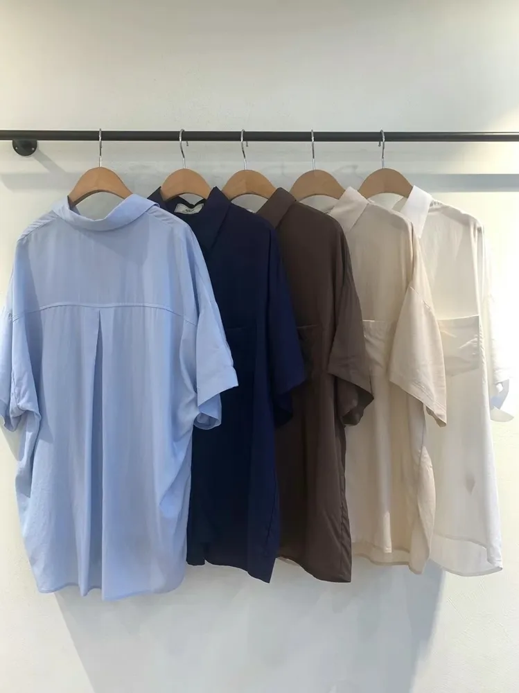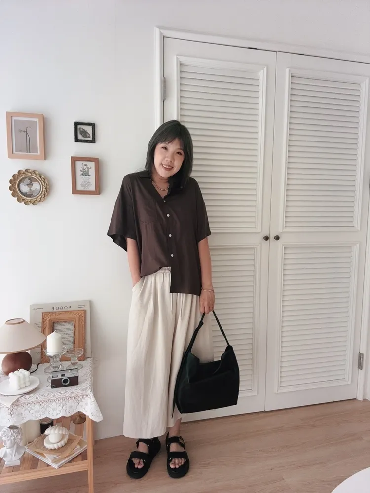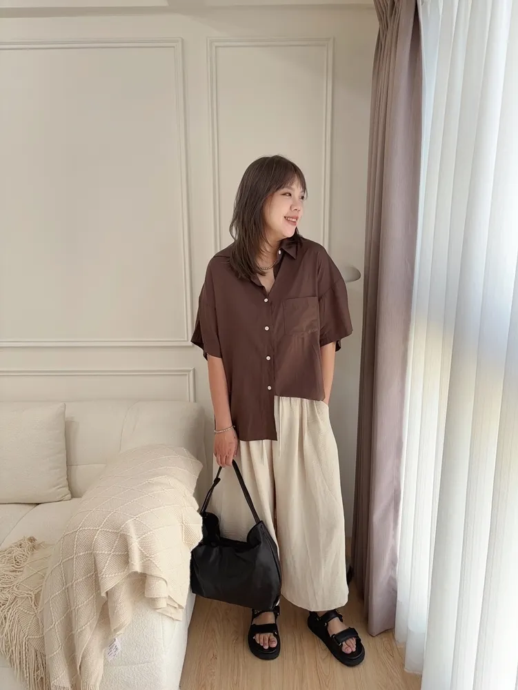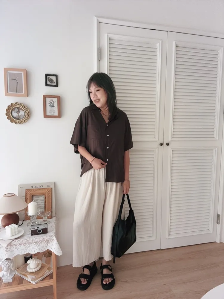 ✓ 寬袖設計,近五分袖長,是一件不束縛、隨興感的襯衫