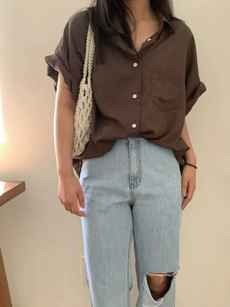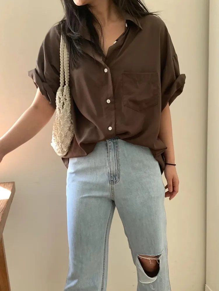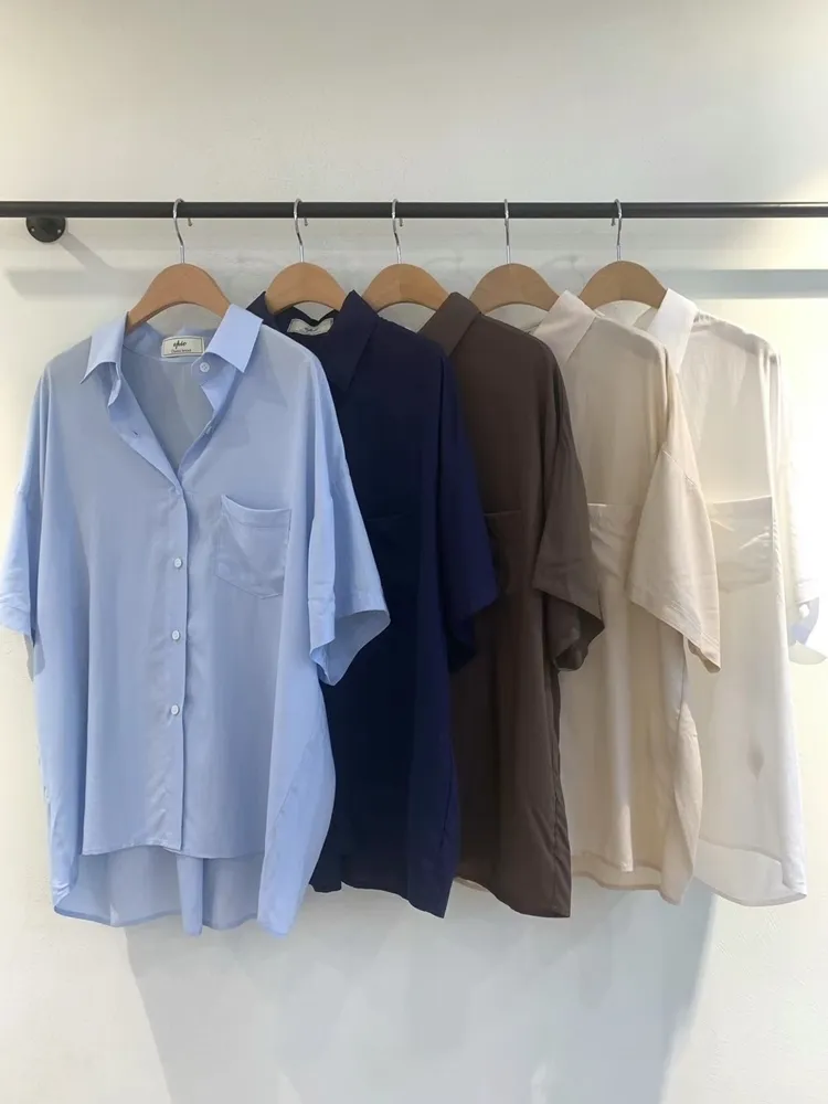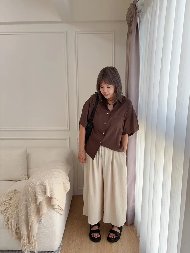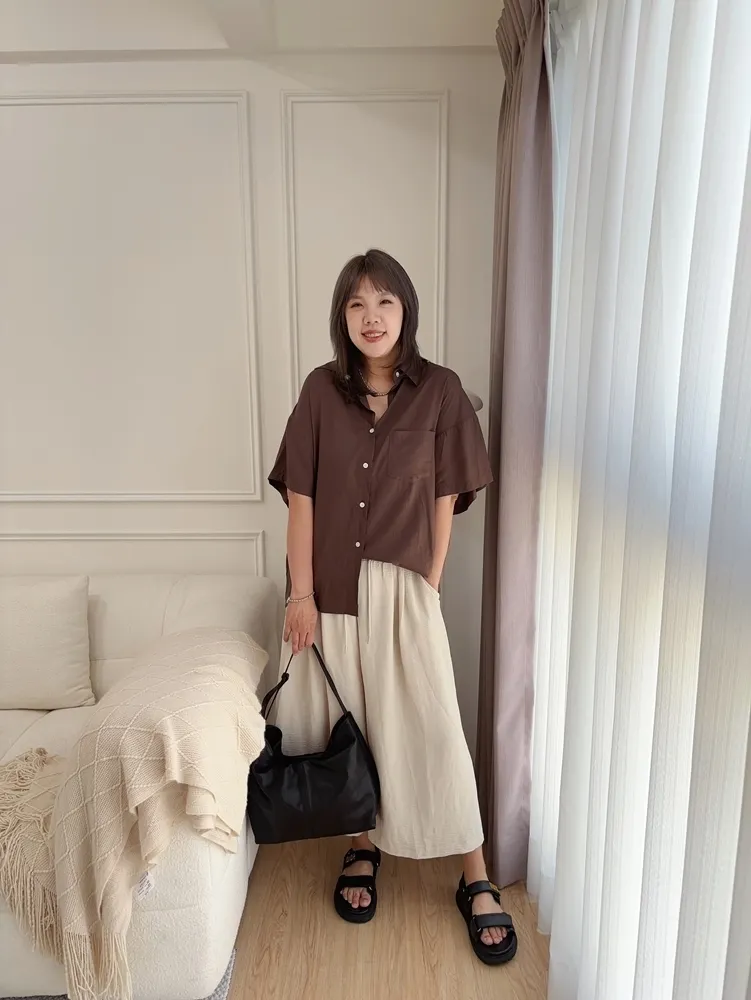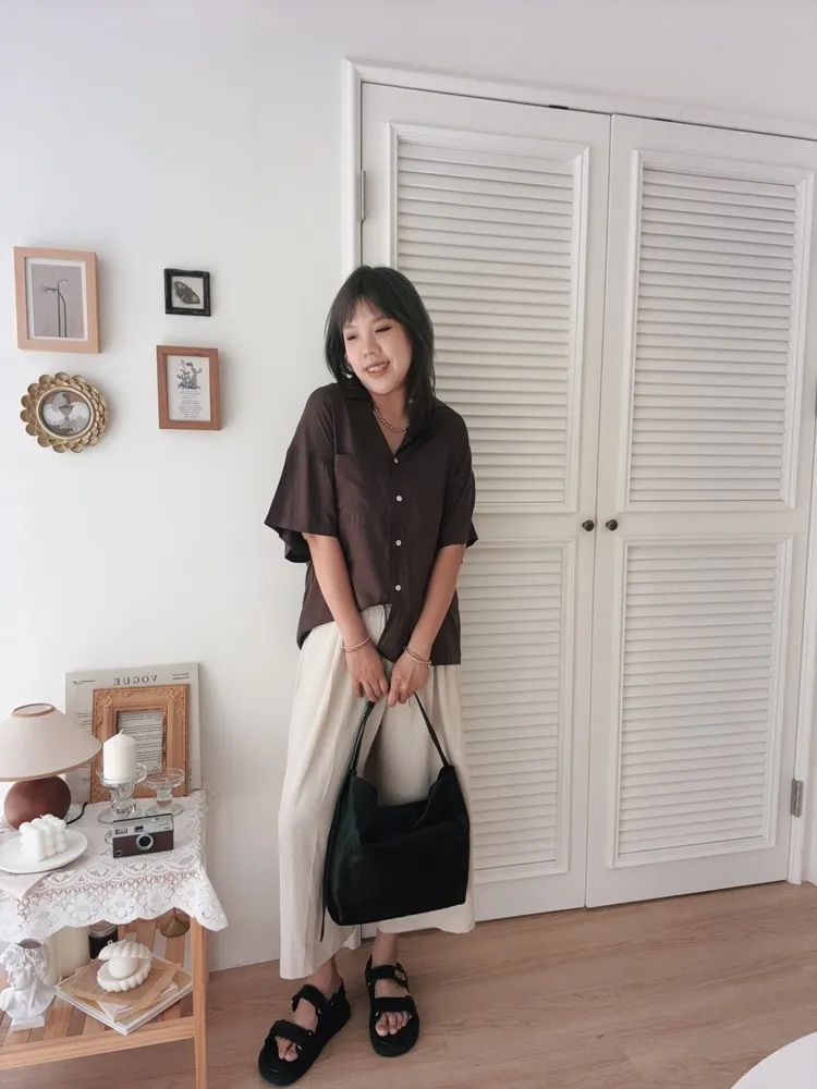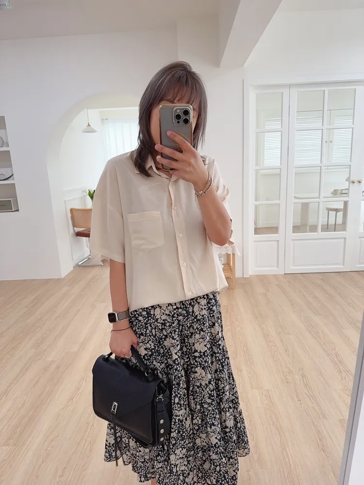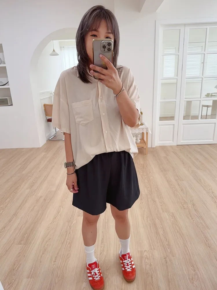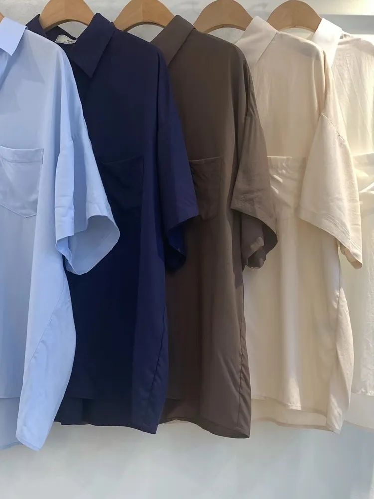 ✓ 寬袖設計,近五分袖長,是一件不束縛、隨興感的襯衫