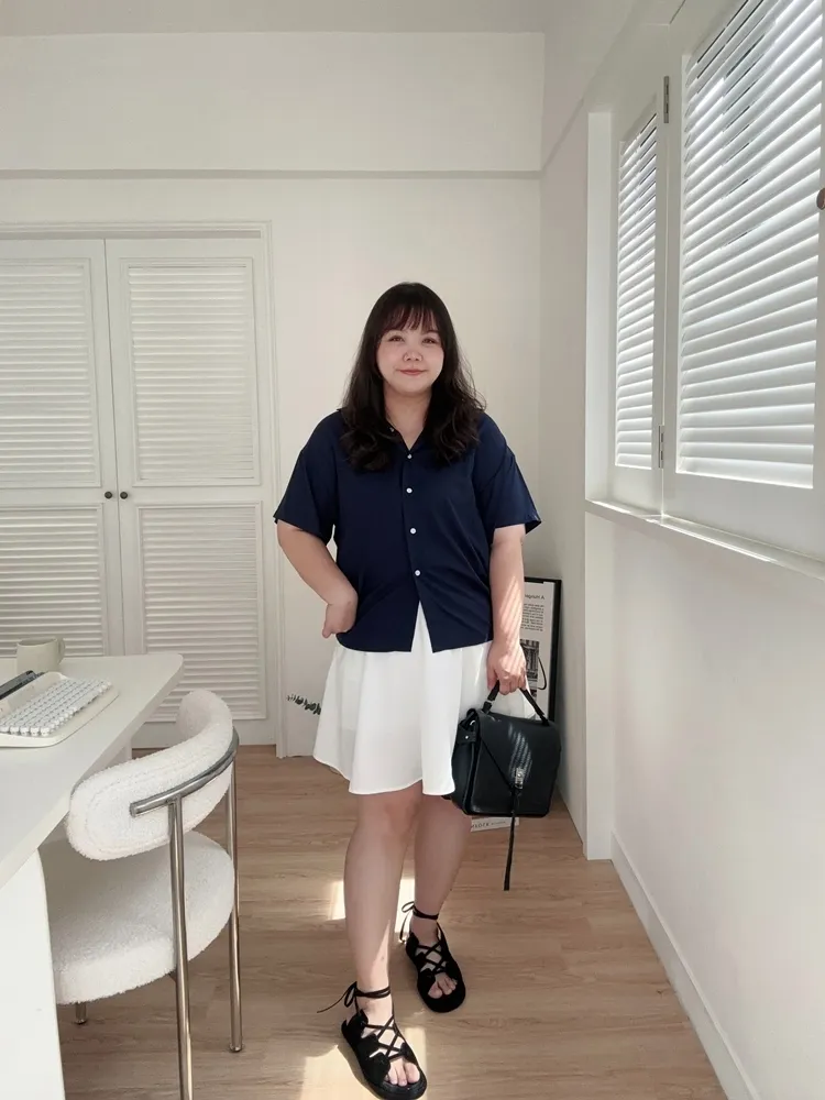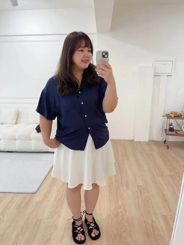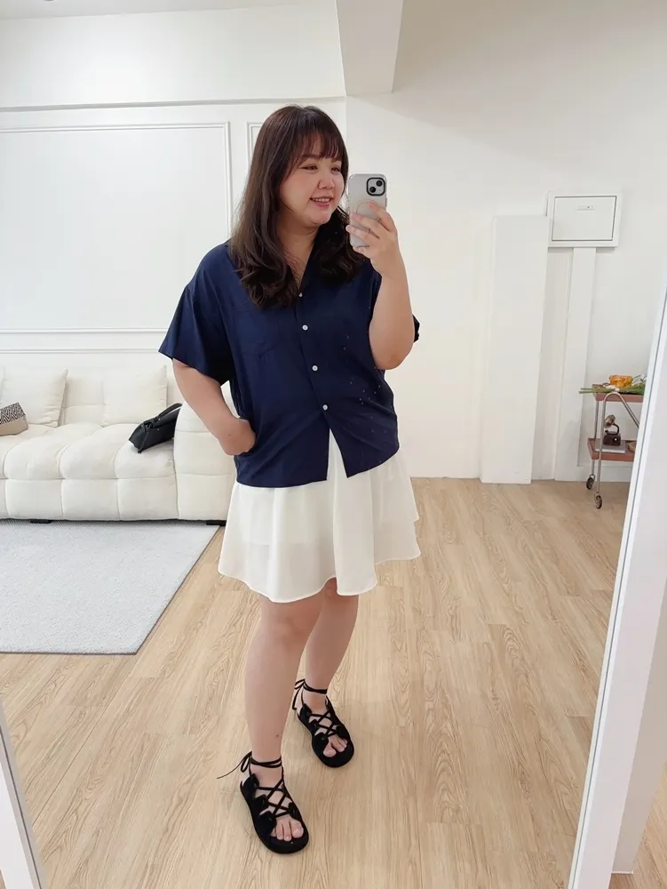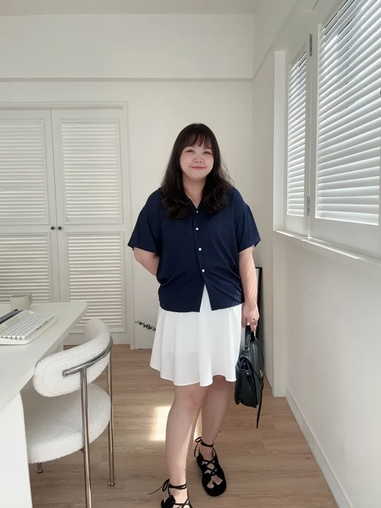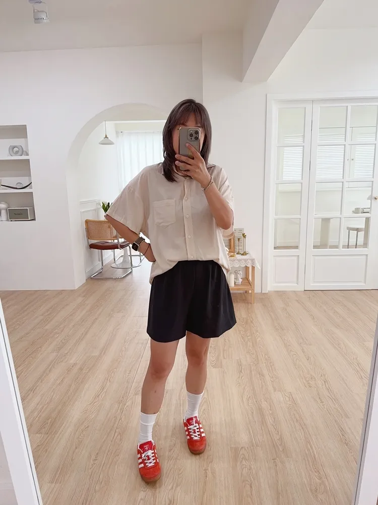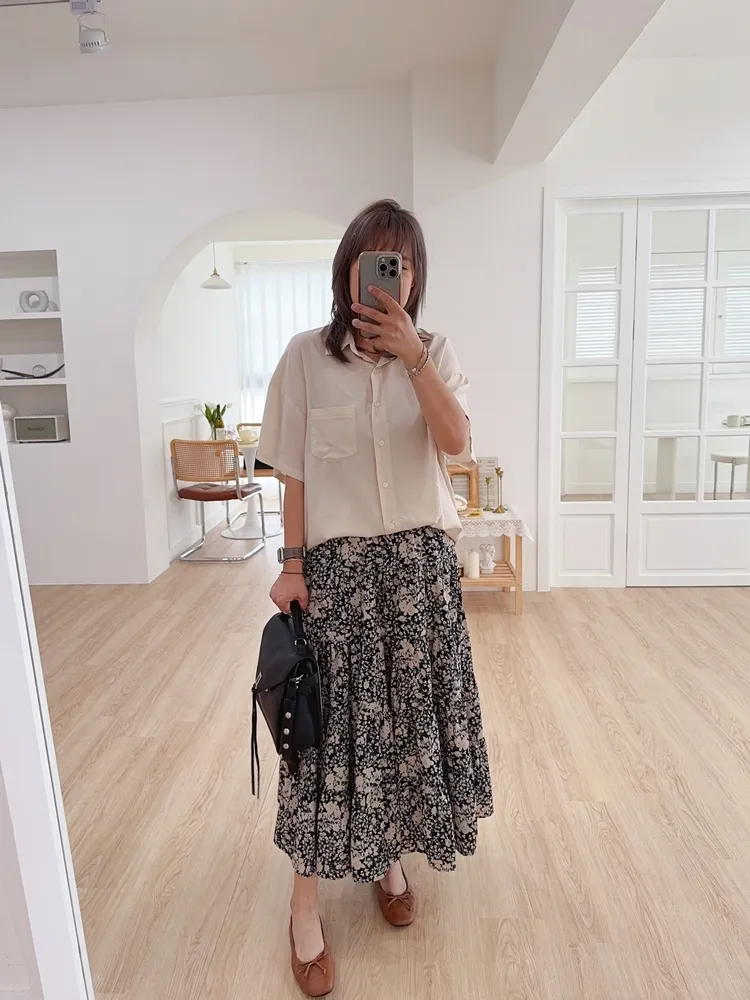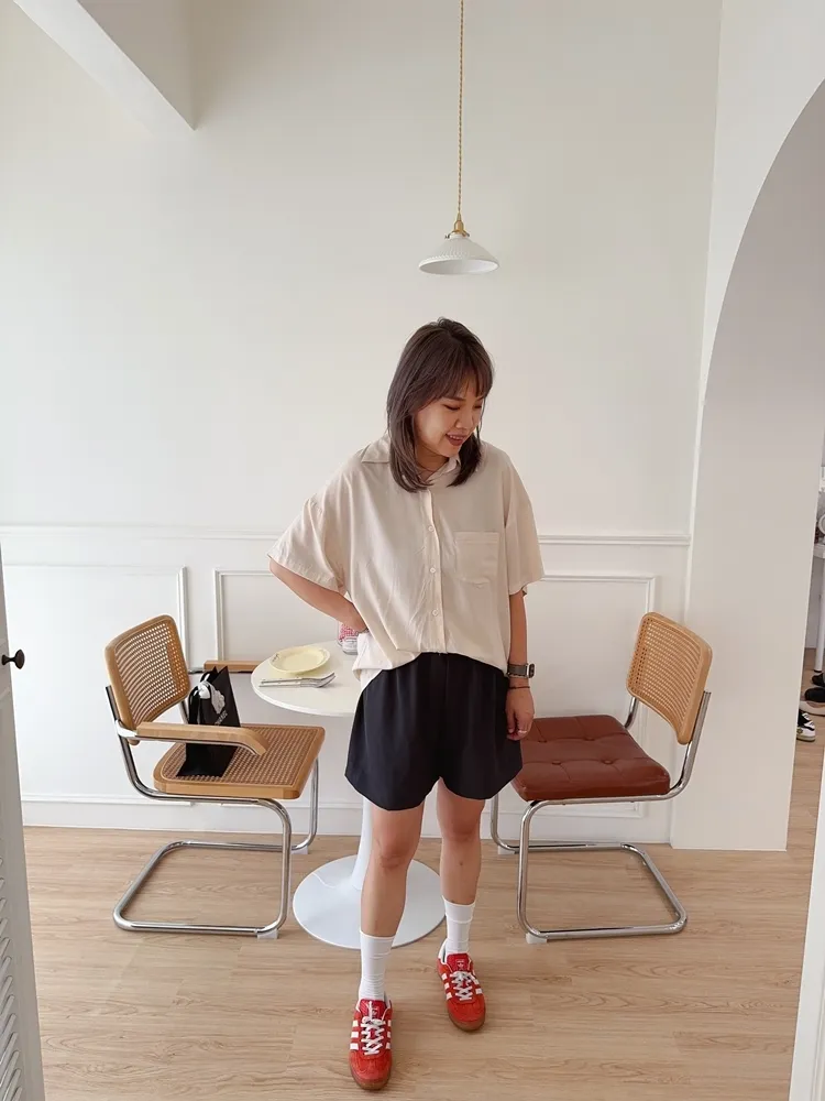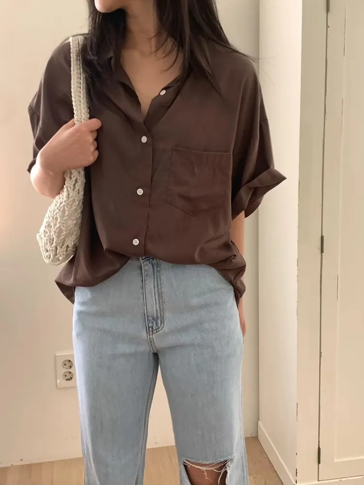 ✓ 寬袖設計,近五分袖長,是一件不束縛、隨興感的襯衫