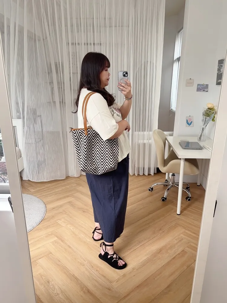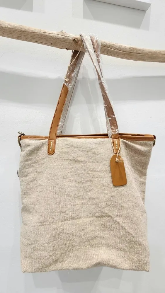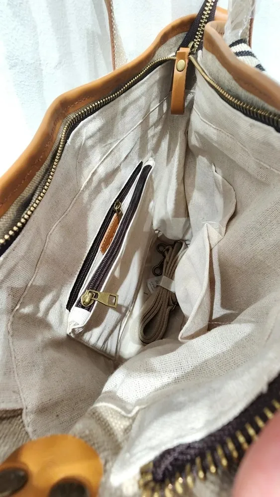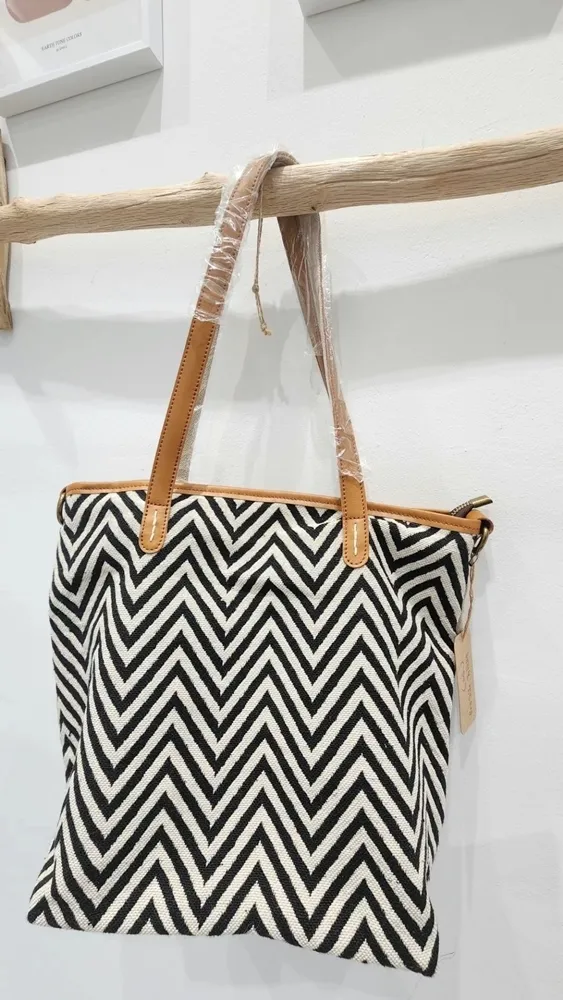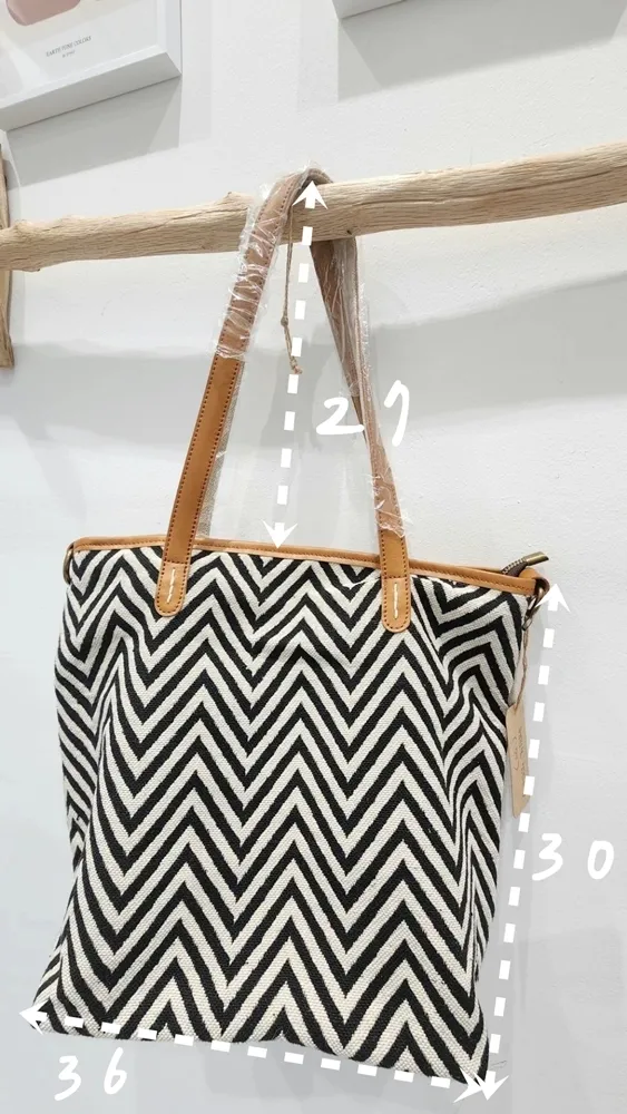 很特別的兩面包,一面是黑色幾何線條、一面是原色棉麻