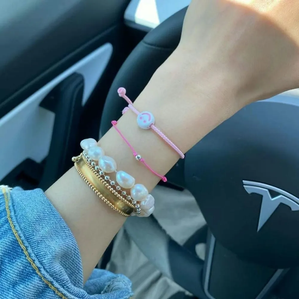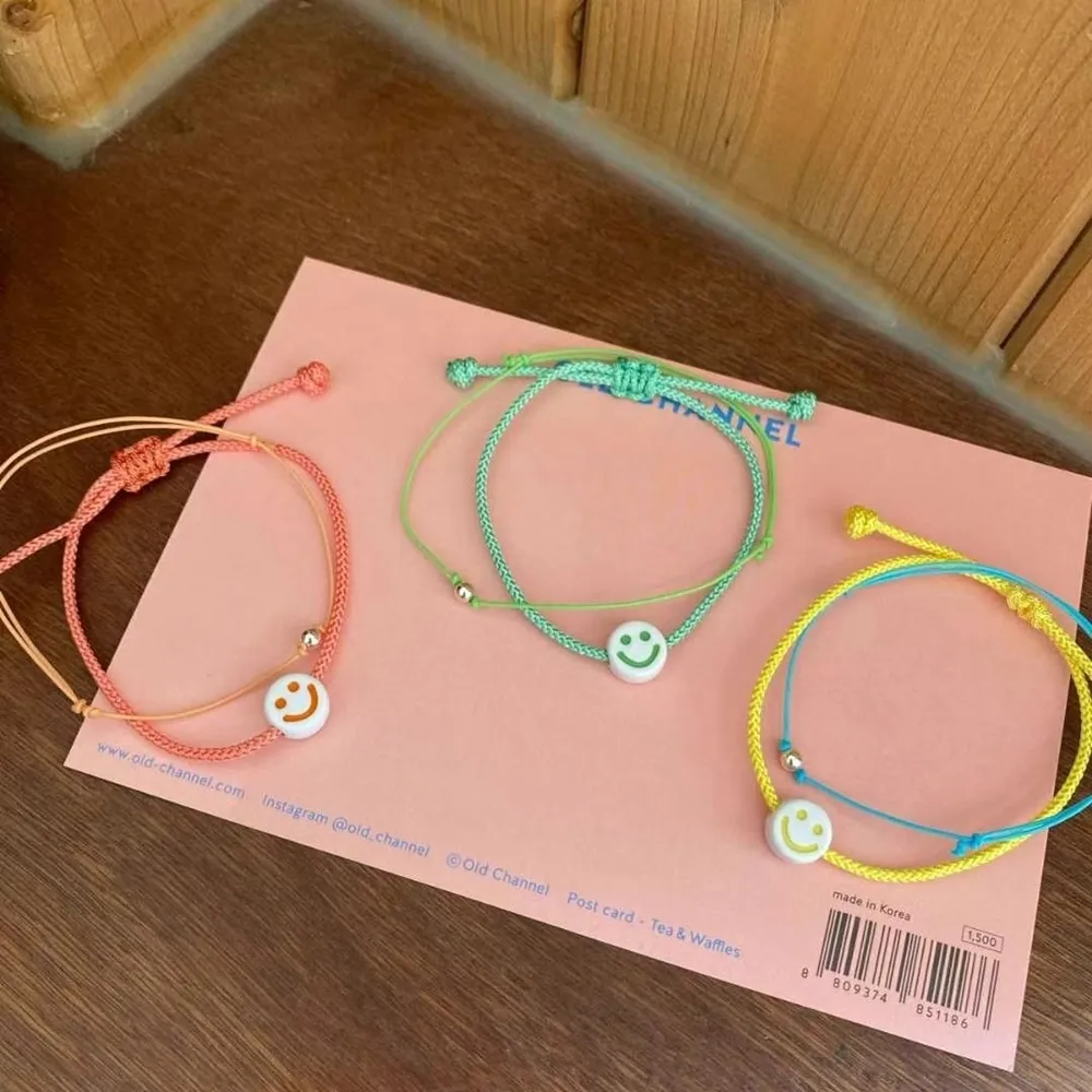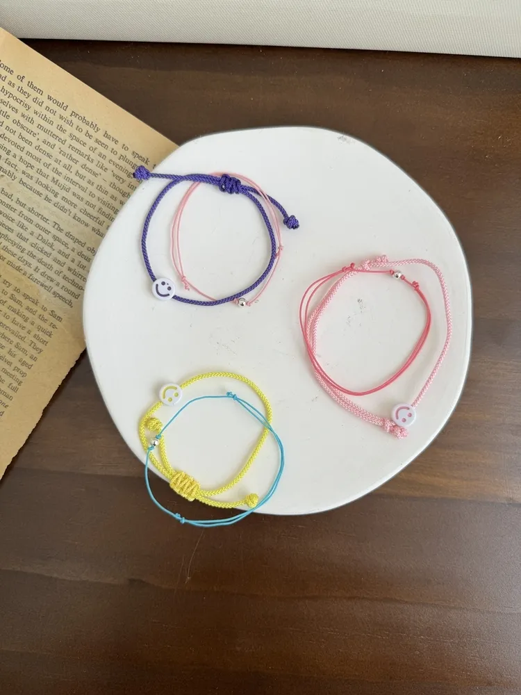 .材質:塑料笑臉+925銀珠+編織繩
