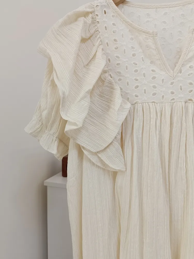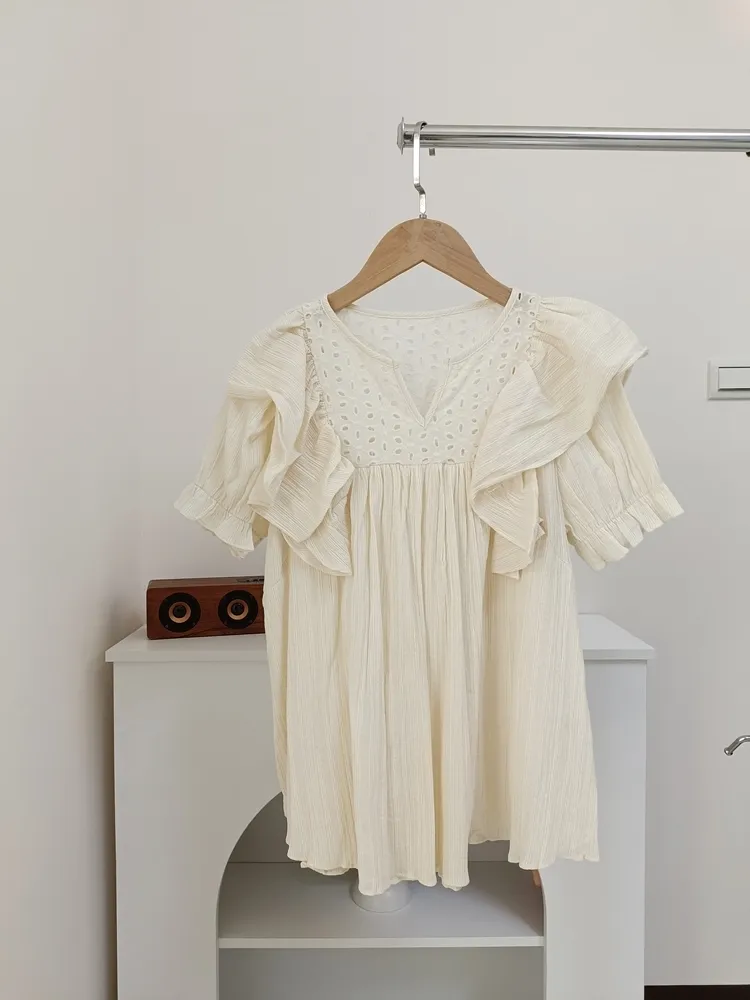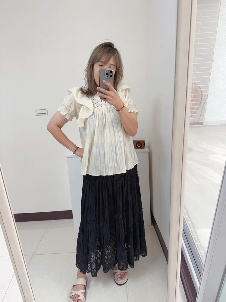 ✓ 胸口簍空雕花+花邊設計