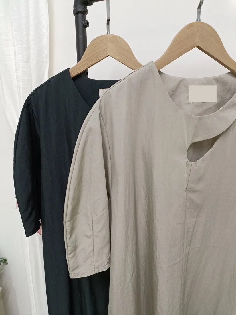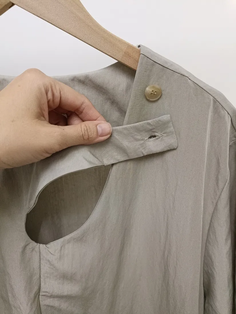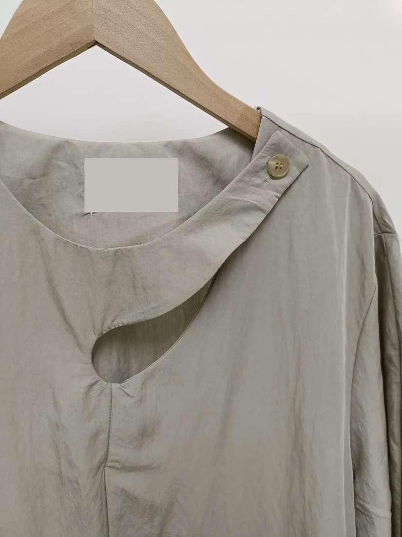 ✓ 領口釦子設計,水滴挖洞造型