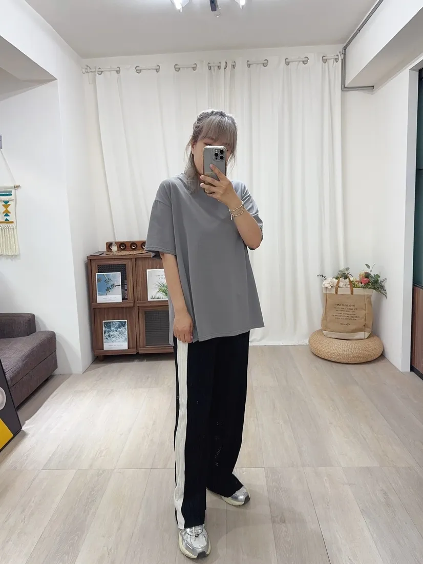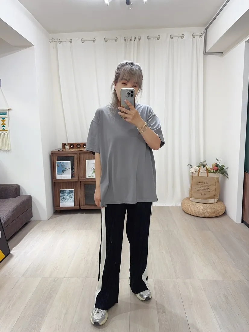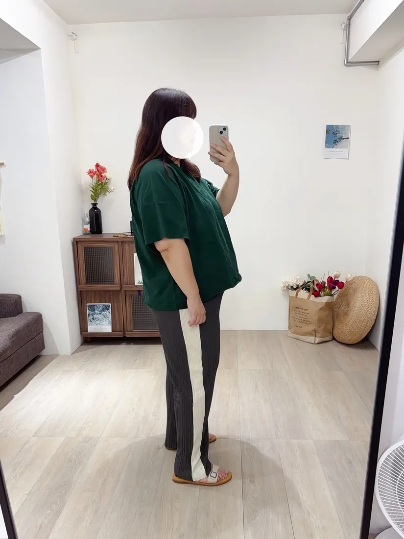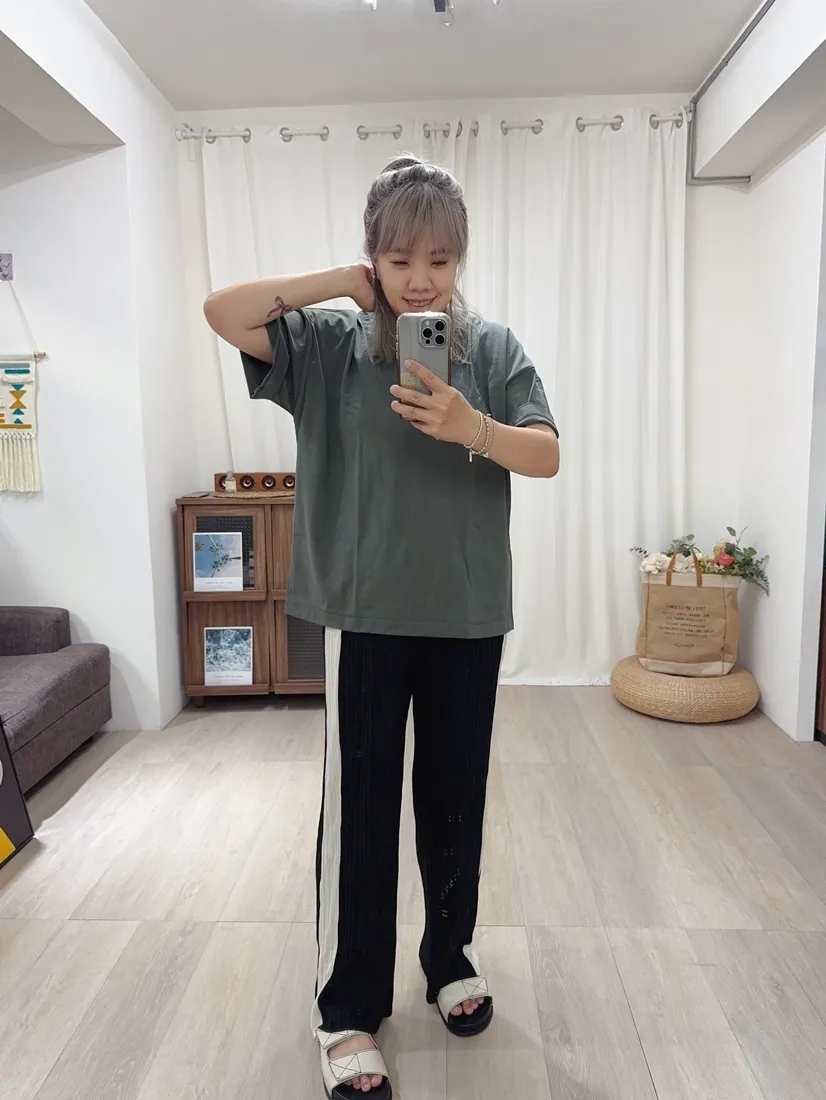 ✓ 側邊拼接白條,讓下半身小一號視覺感