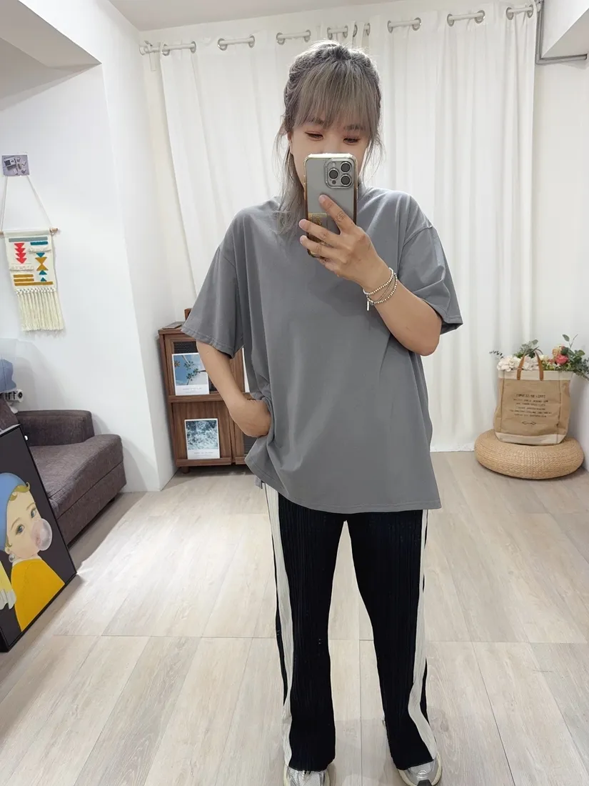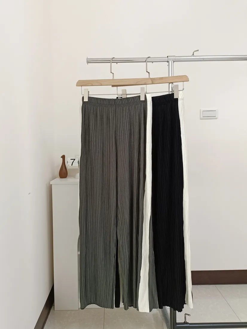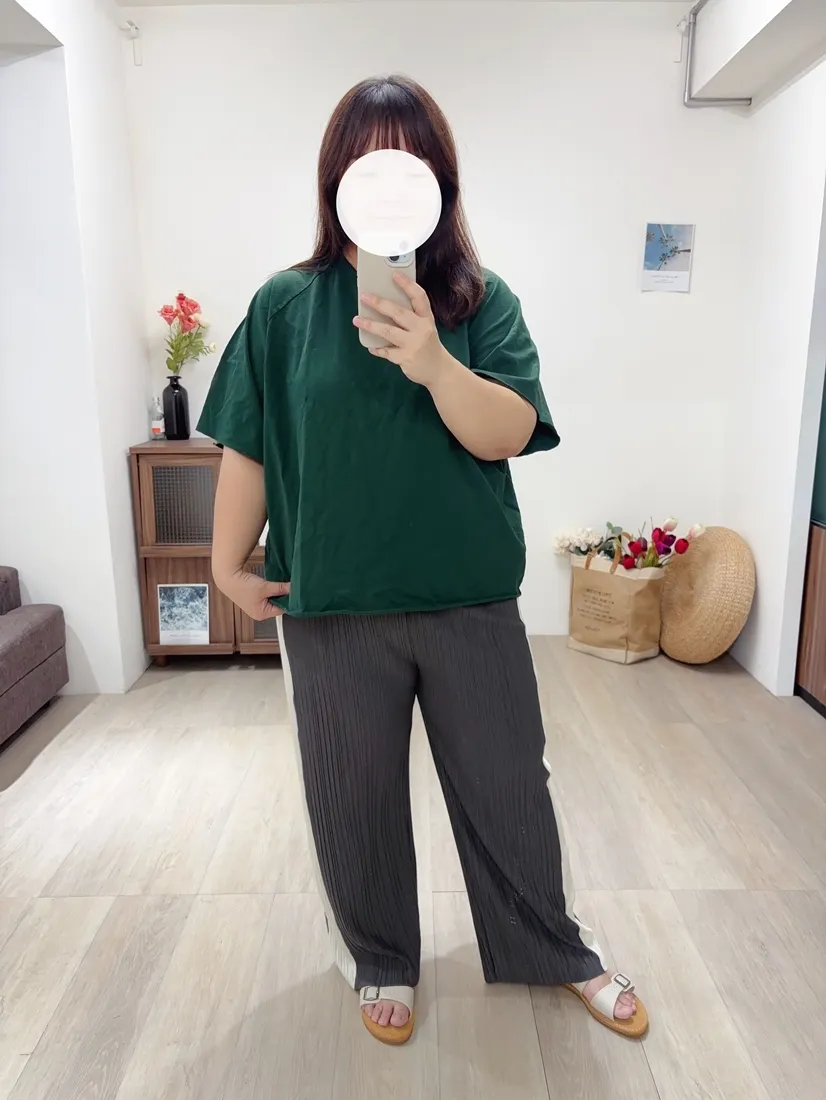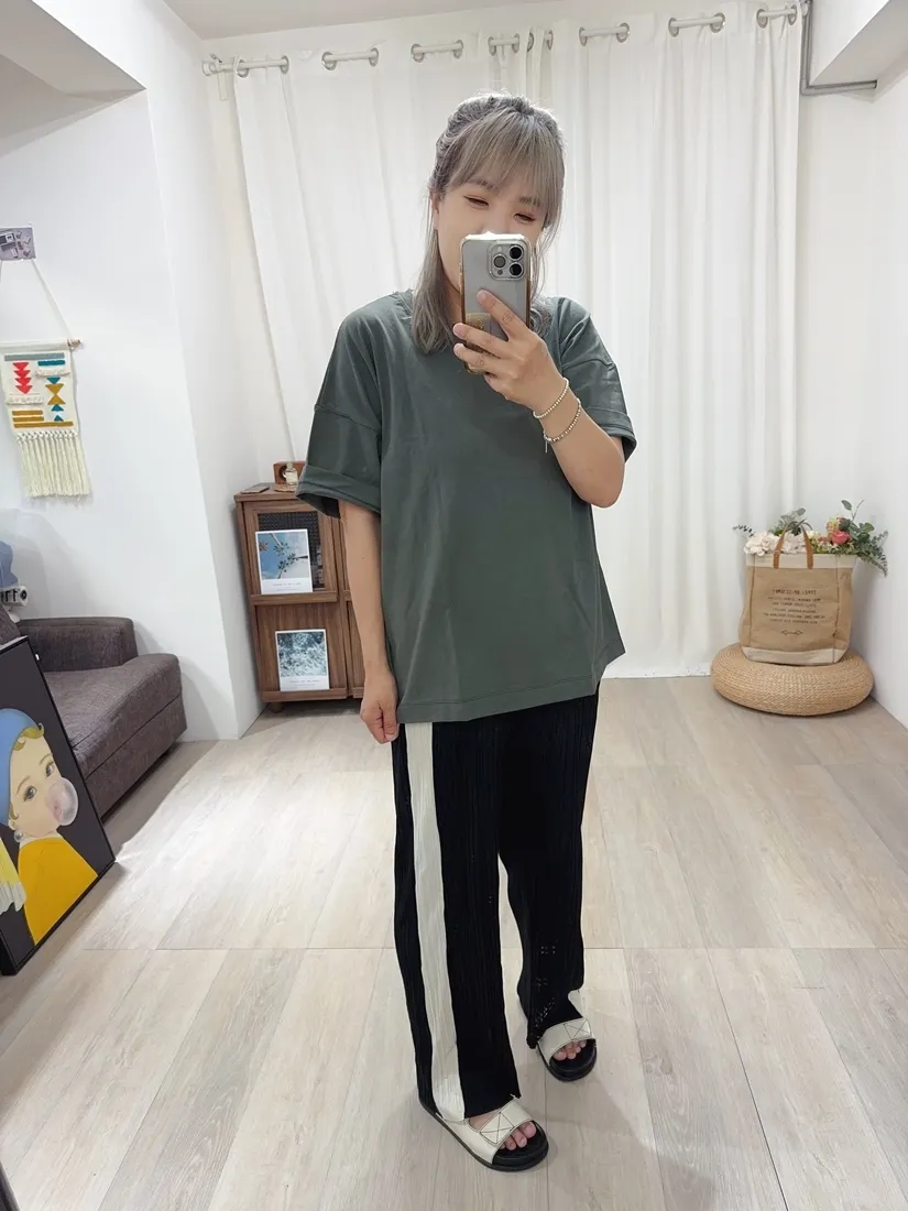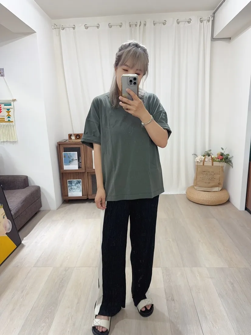✓ 側邊拼接白條,讓下半身小一號視覺感