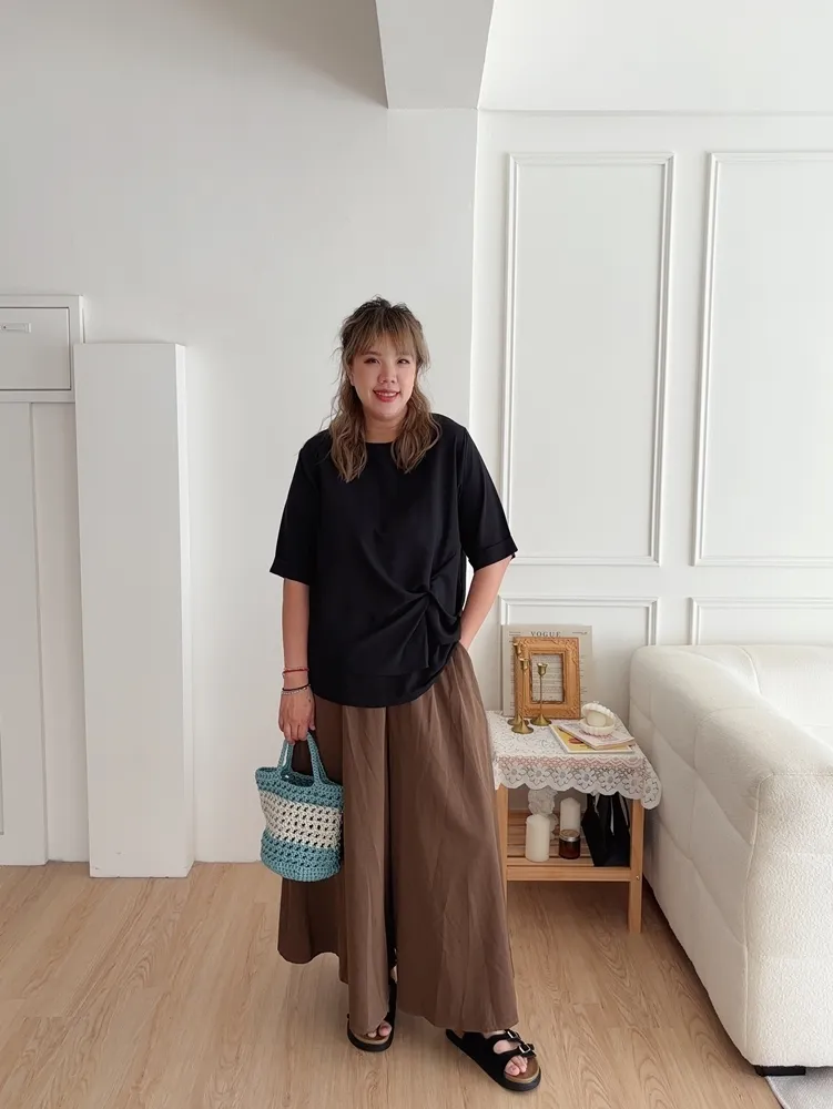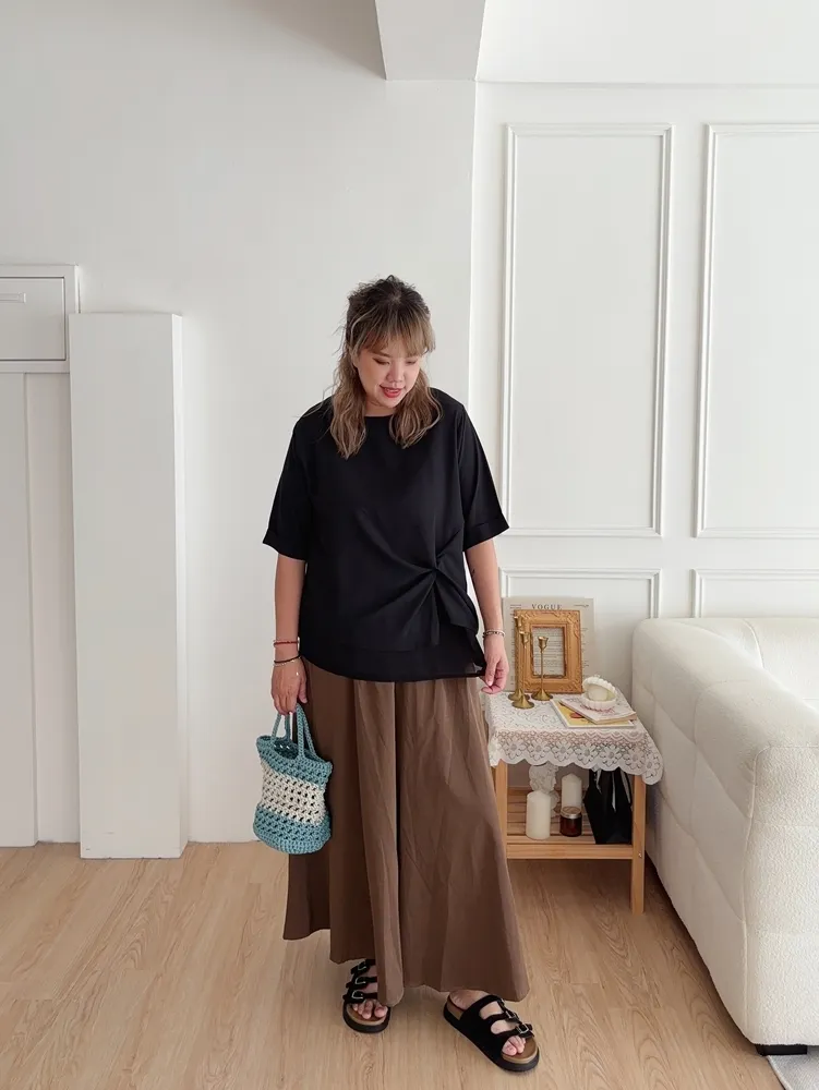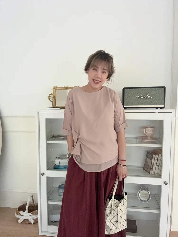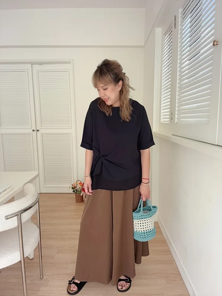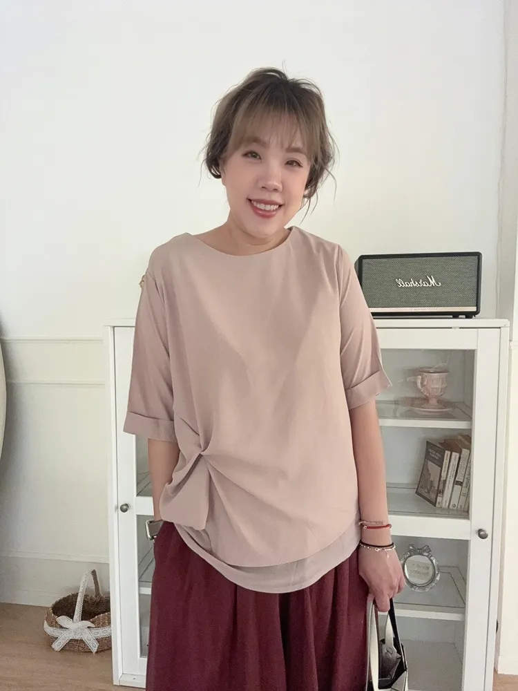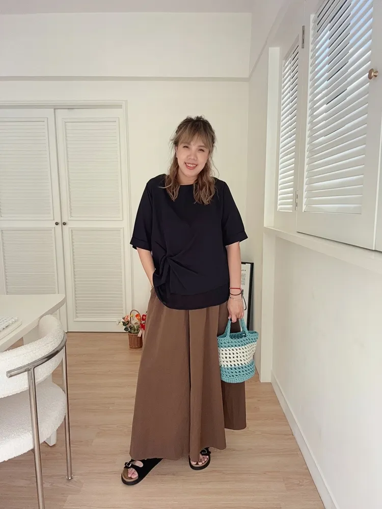 | 尺寸(cm) | 領口寬 | 肩寬 | 胸寬 | 腋下寬 | 袖長 | 打結處(肚圍處) | 下擺寬 | 全長 | 實穿說明 |