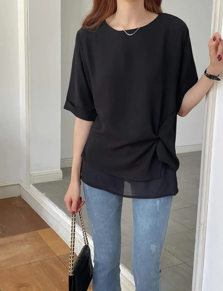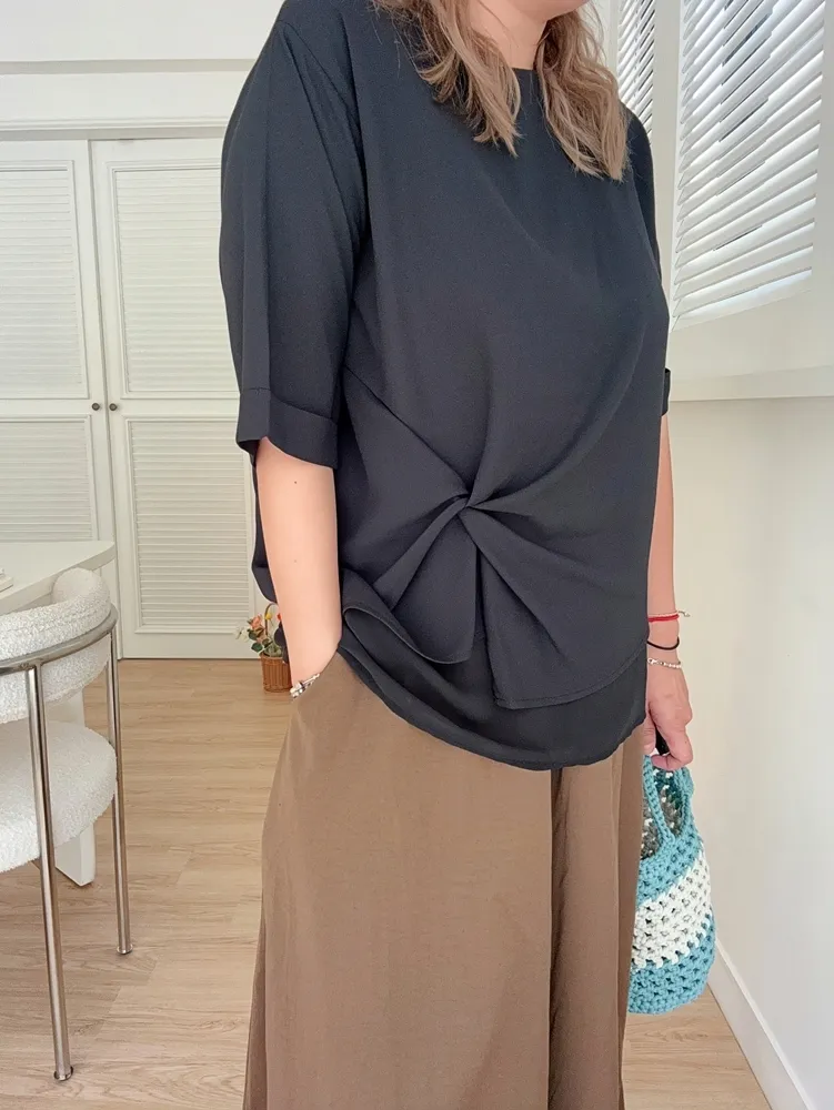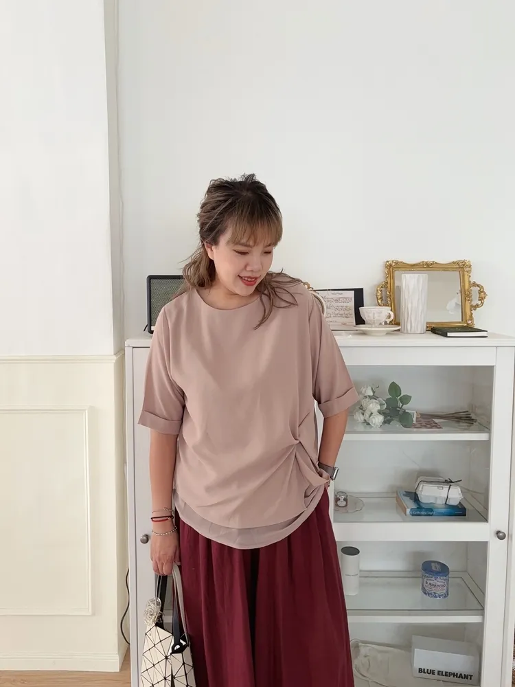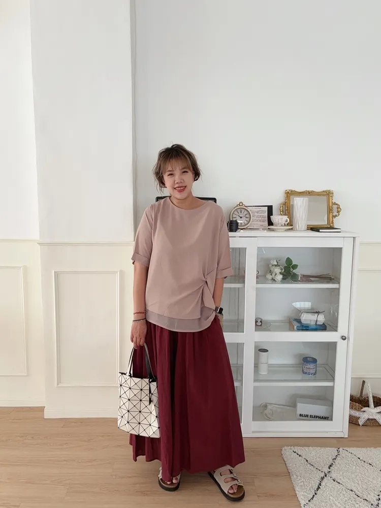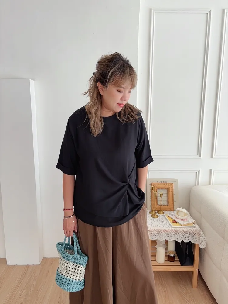 | 尺寸(cm) | 領口寬 | 肩寬 | 胸寬 | 腋下寬 | 袖長 | 打結處(肚圍處) | 下擺寬 | 全長 | 實穿說明 |