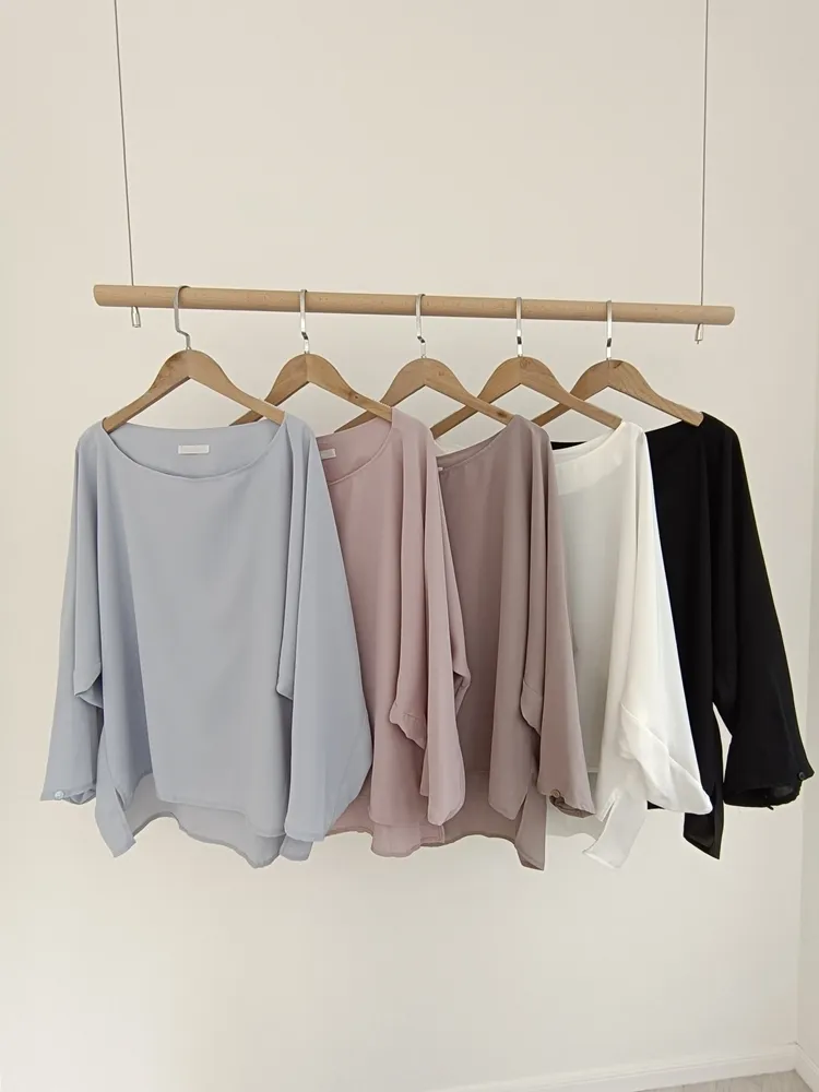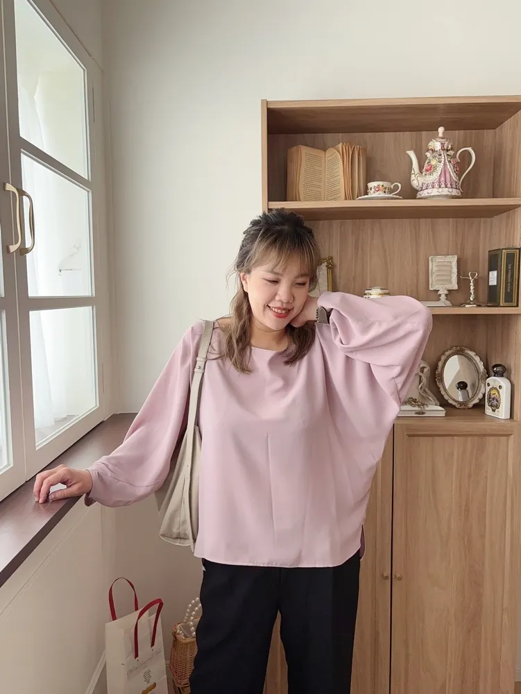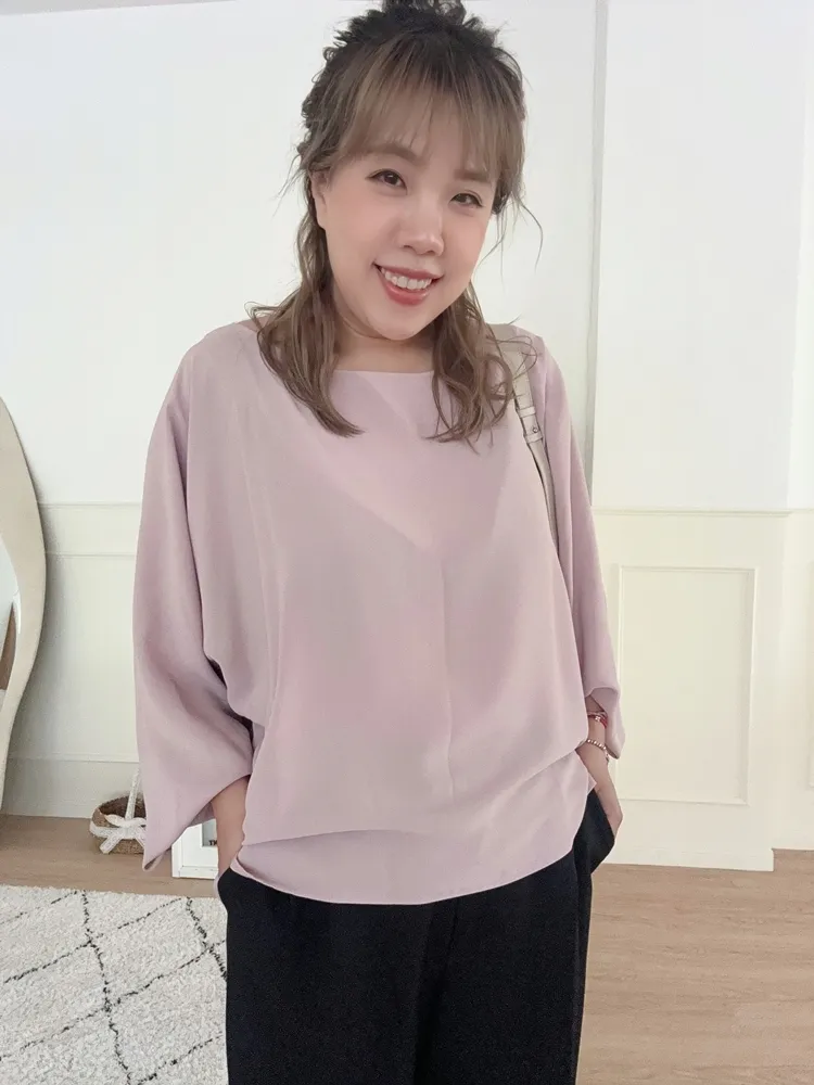 ✓ 蝙蝠袖下擺往內收縮,下擺兩側"有"開岔
