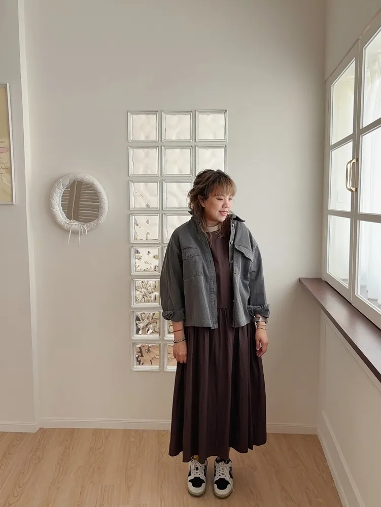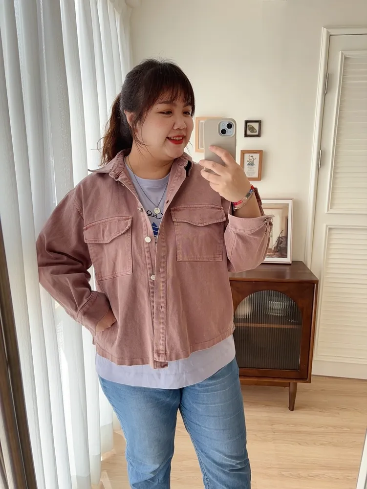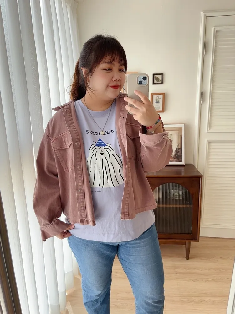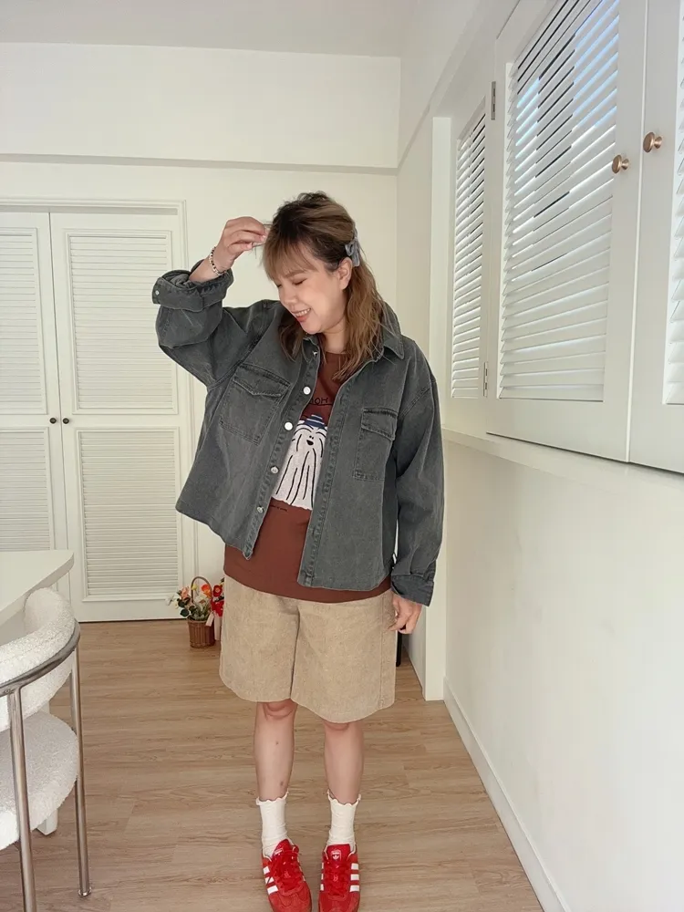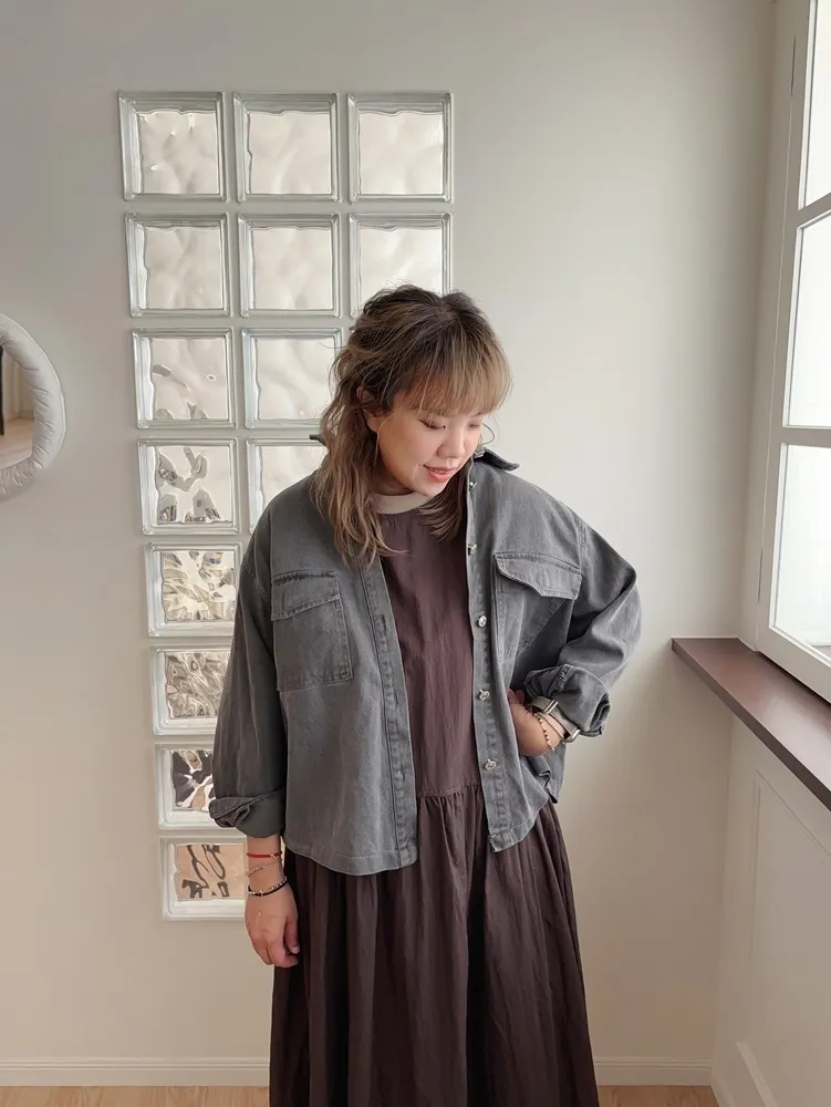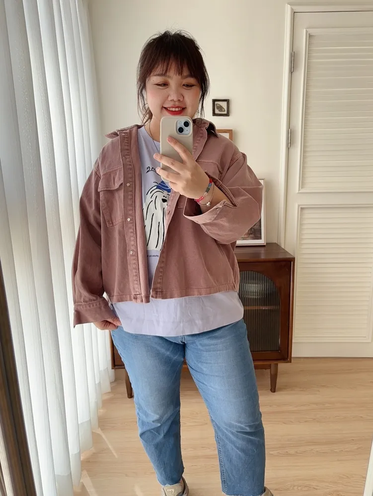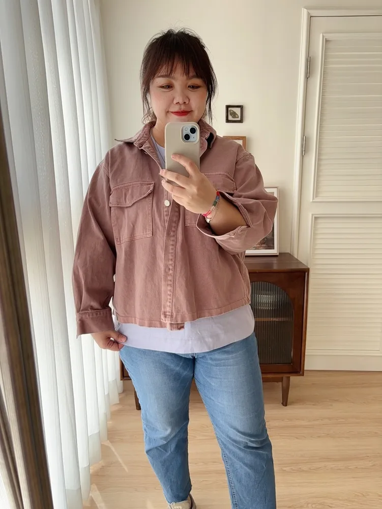 ✓ 有磅數的牛仔外套,適合春秋穿著