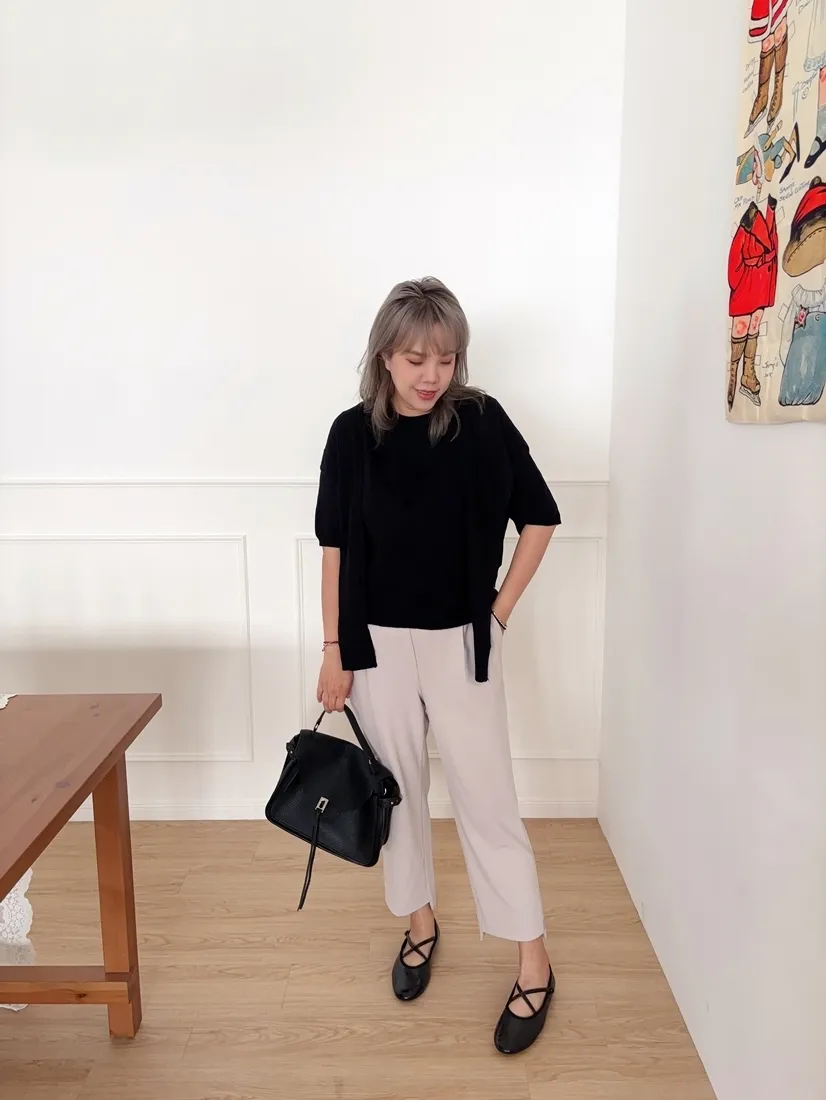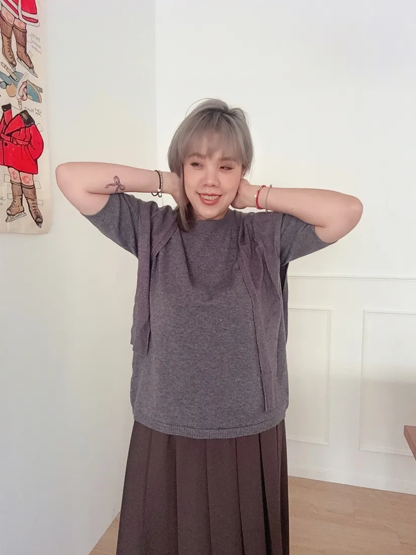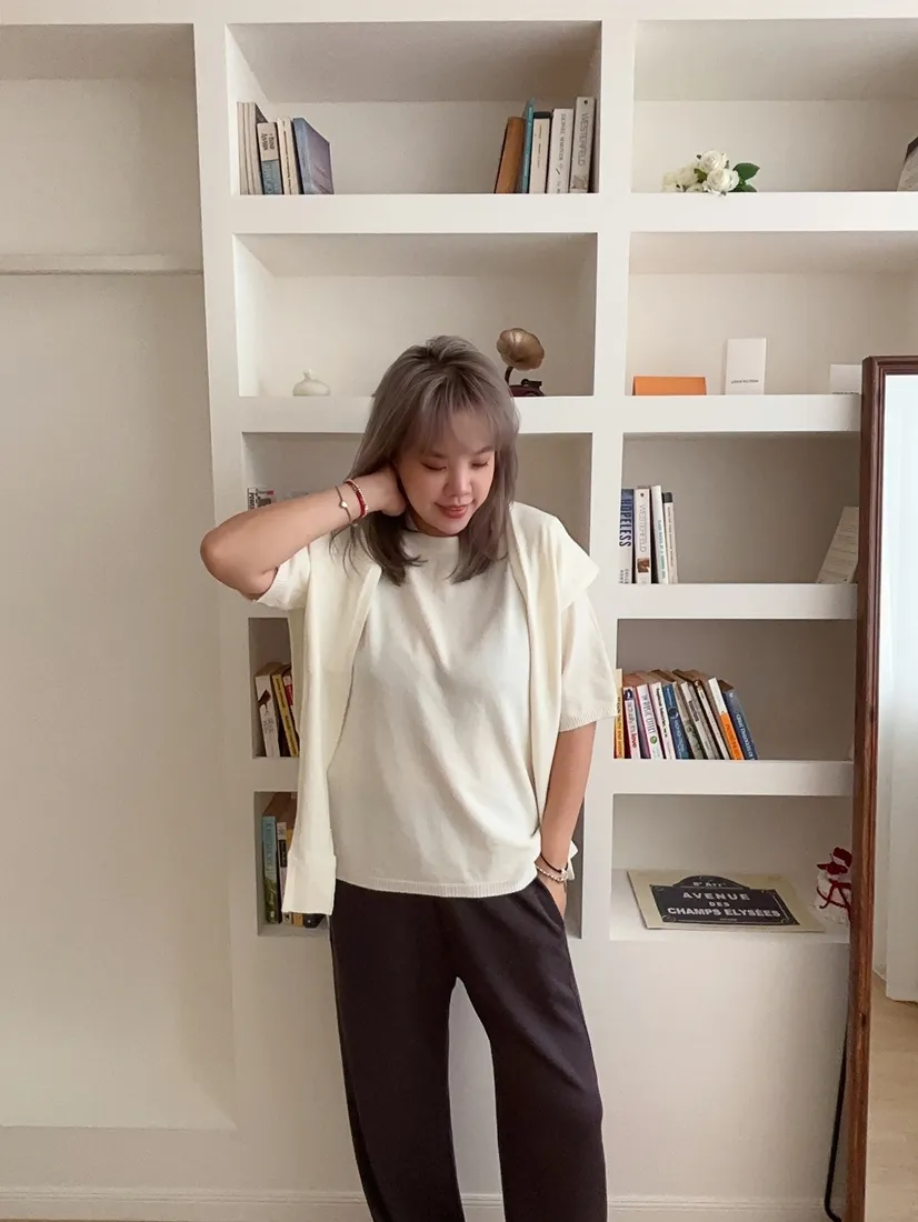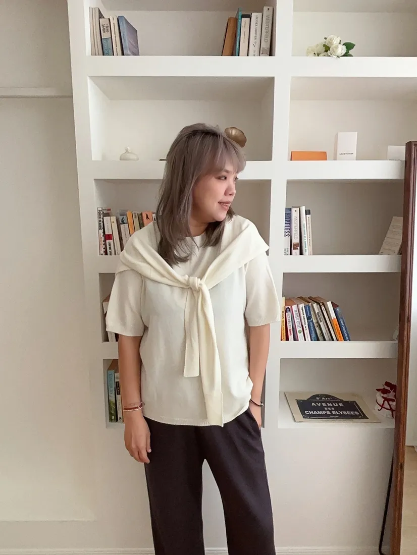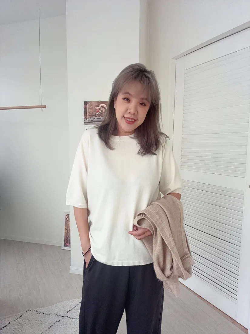 ✓ 薄款短袖羊絨針織,適合入秋穿著
