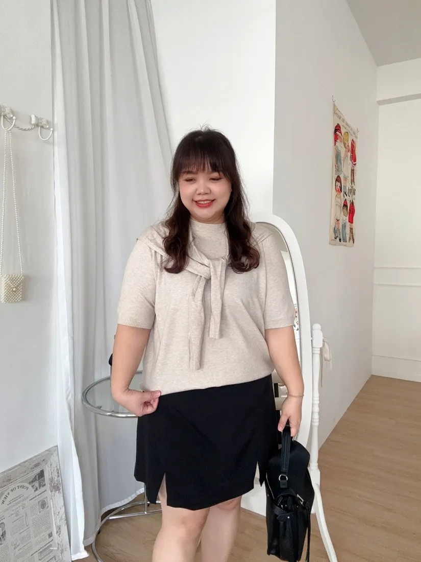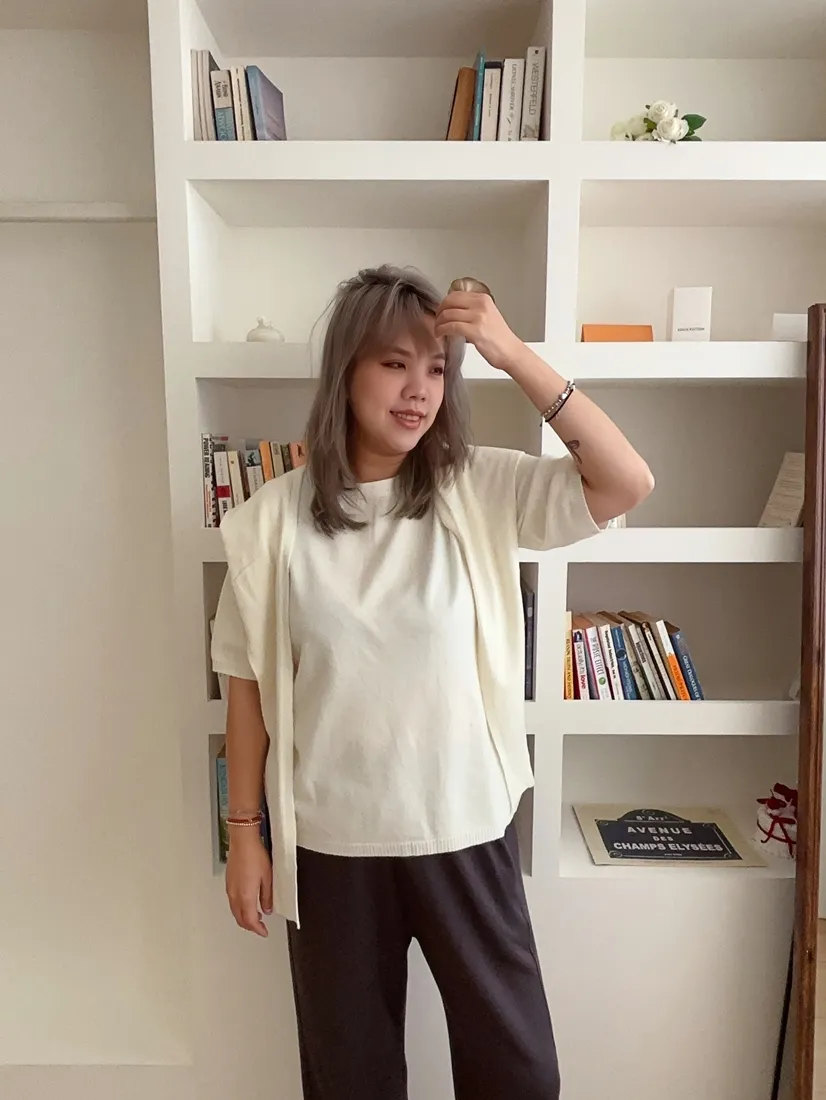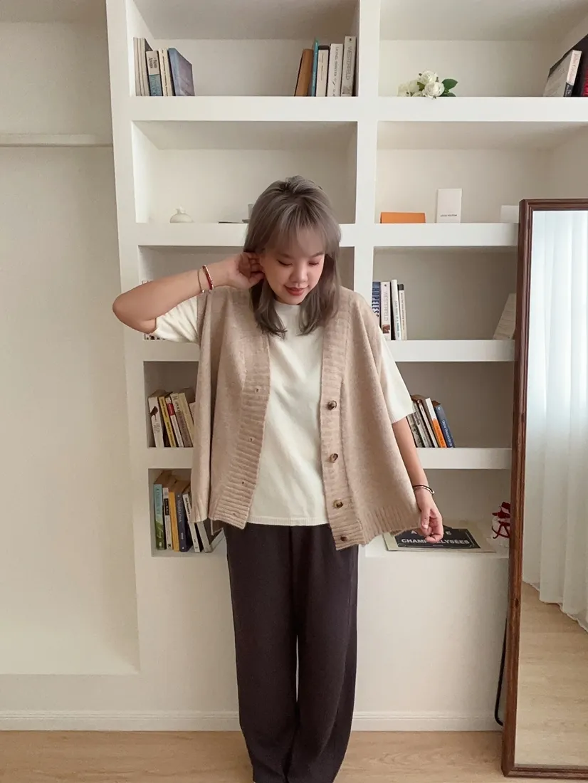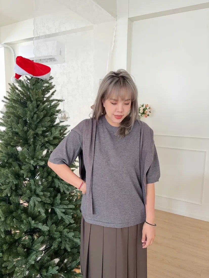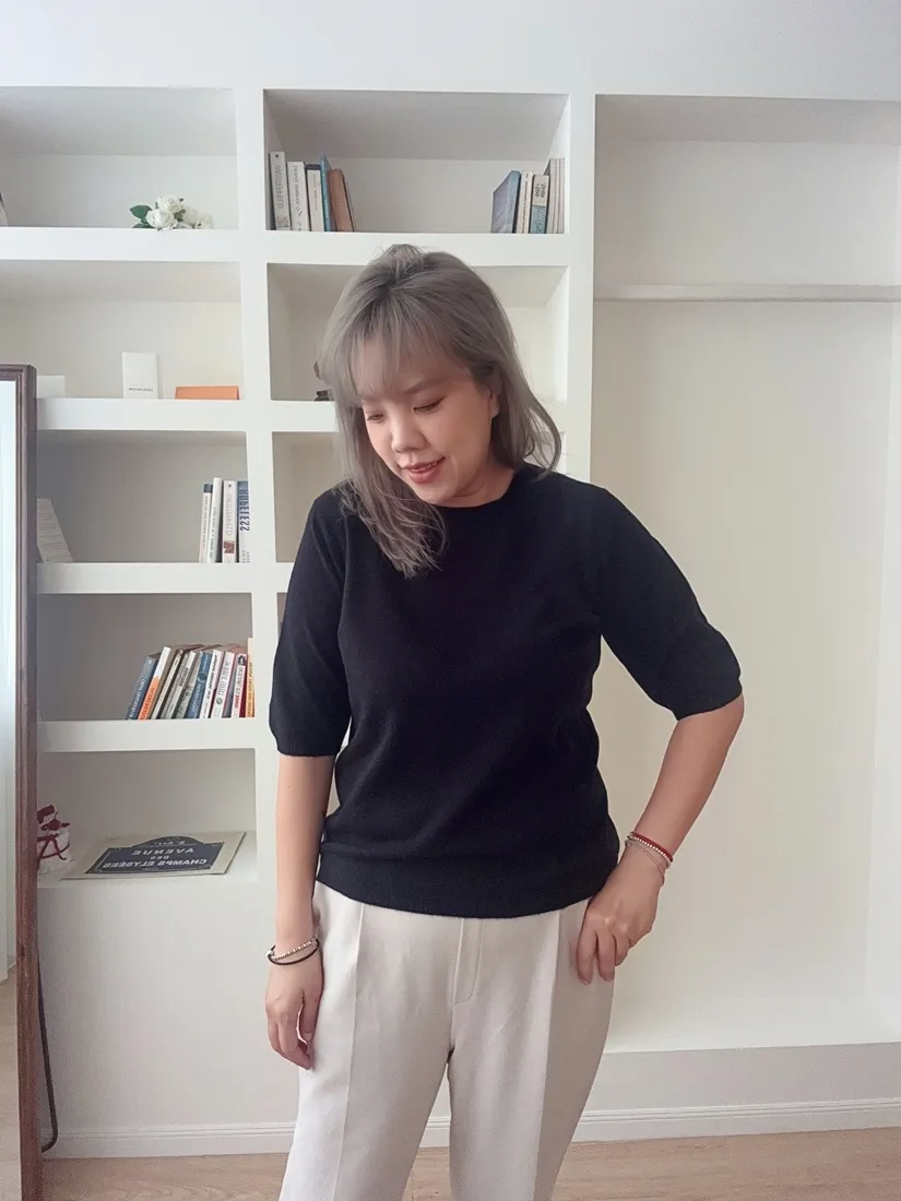 ✓ 薄款短袖羊絨針織,適合入秋穿著