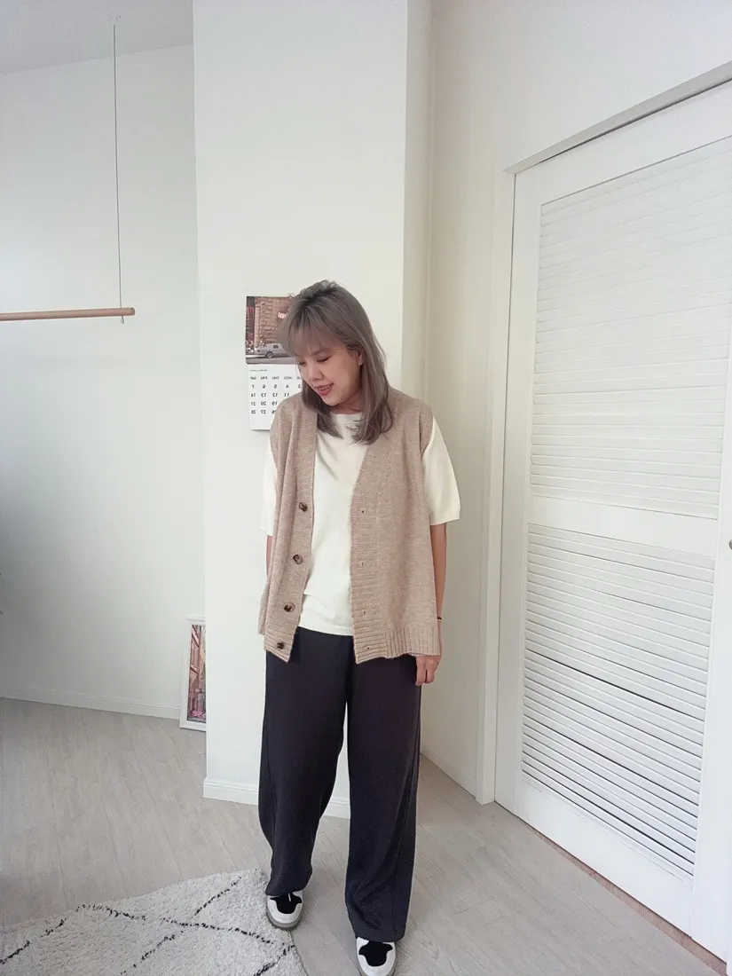 ✓ 不會太厚的針織背心,適合入秋後穿著