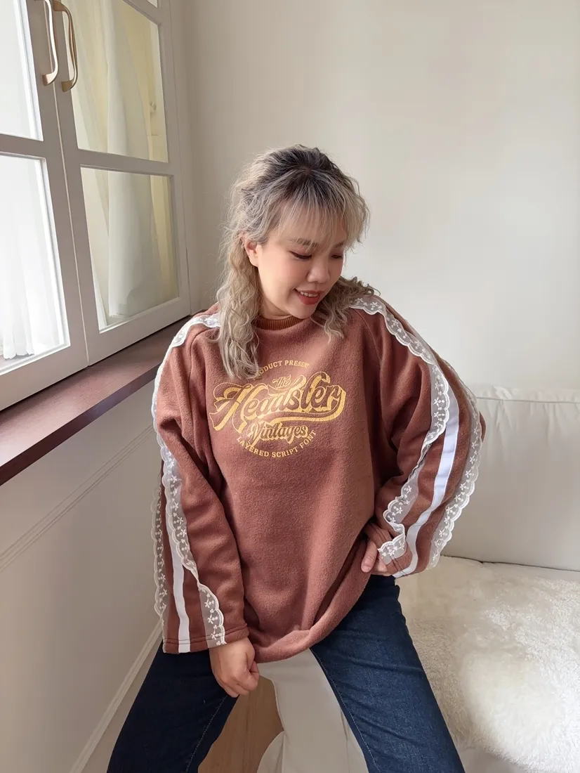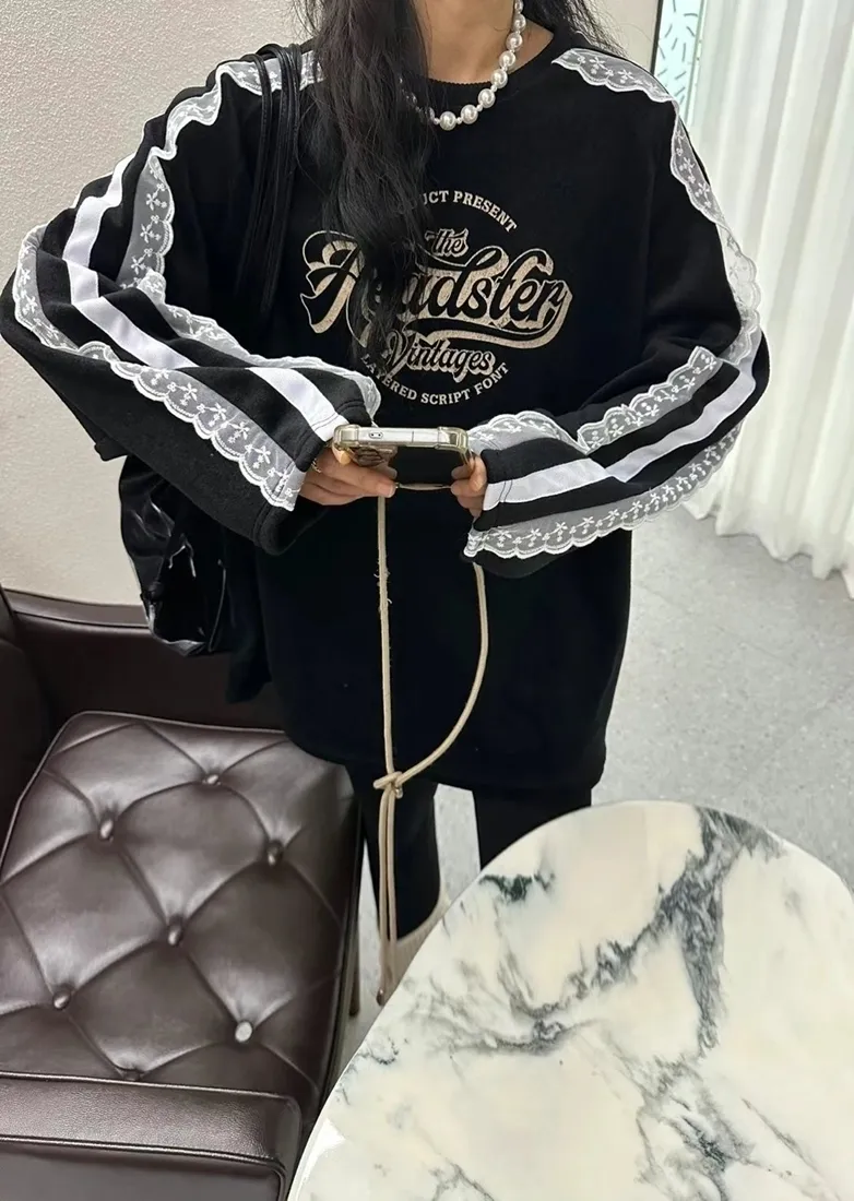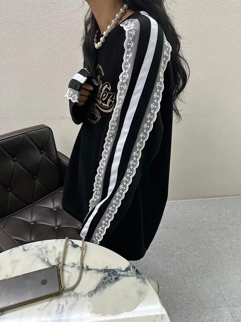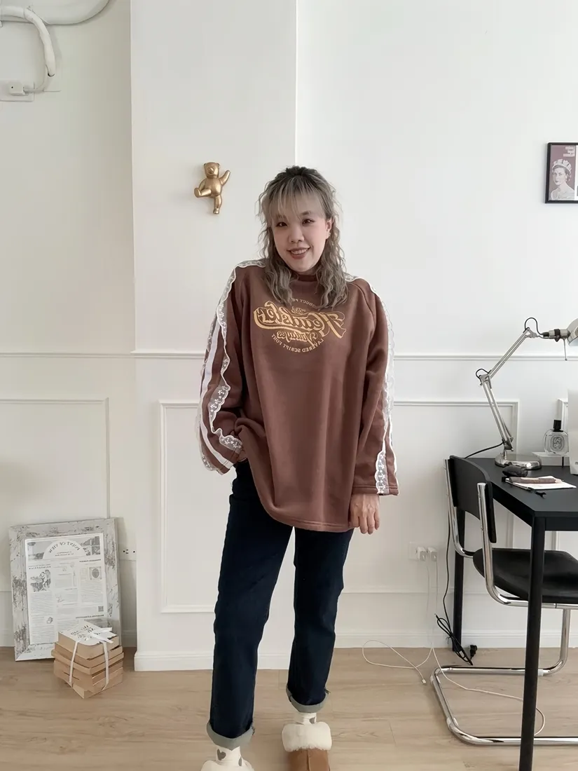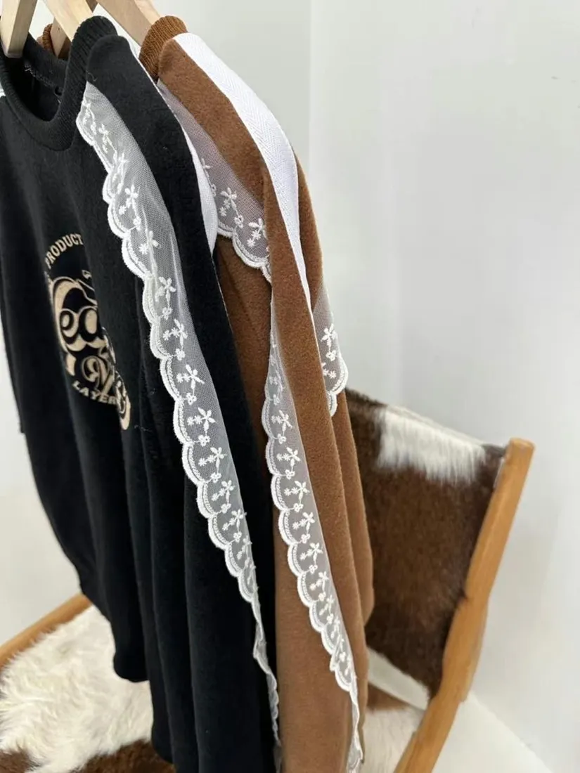 ✓ 肩線至袖子拼接蕾絲,休閒中又帶有一點溫柔感