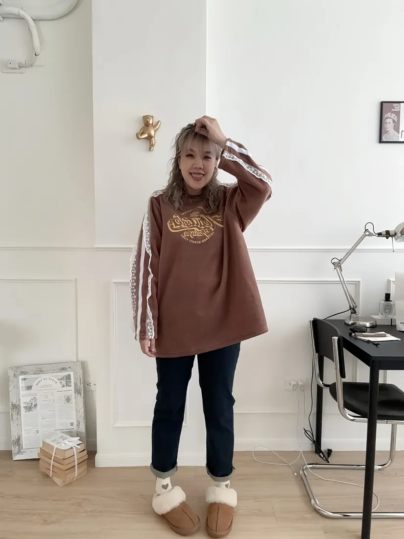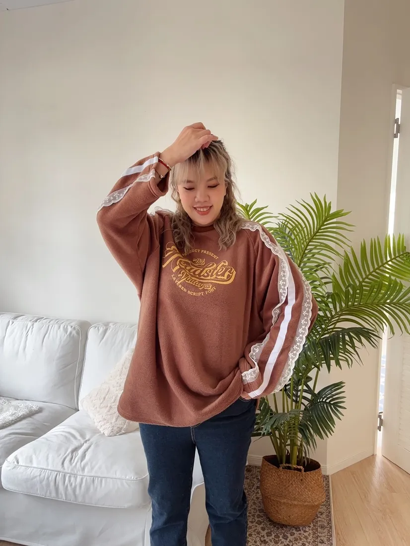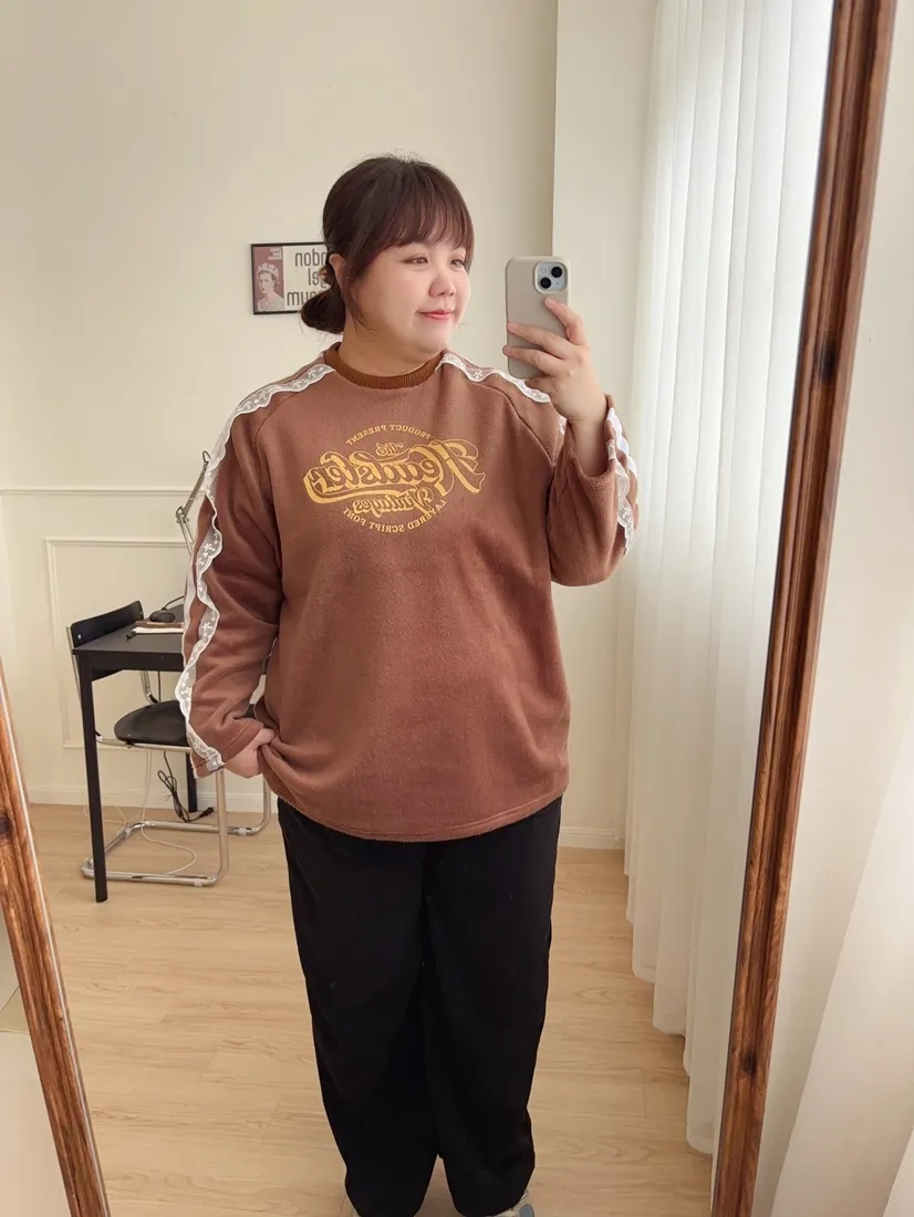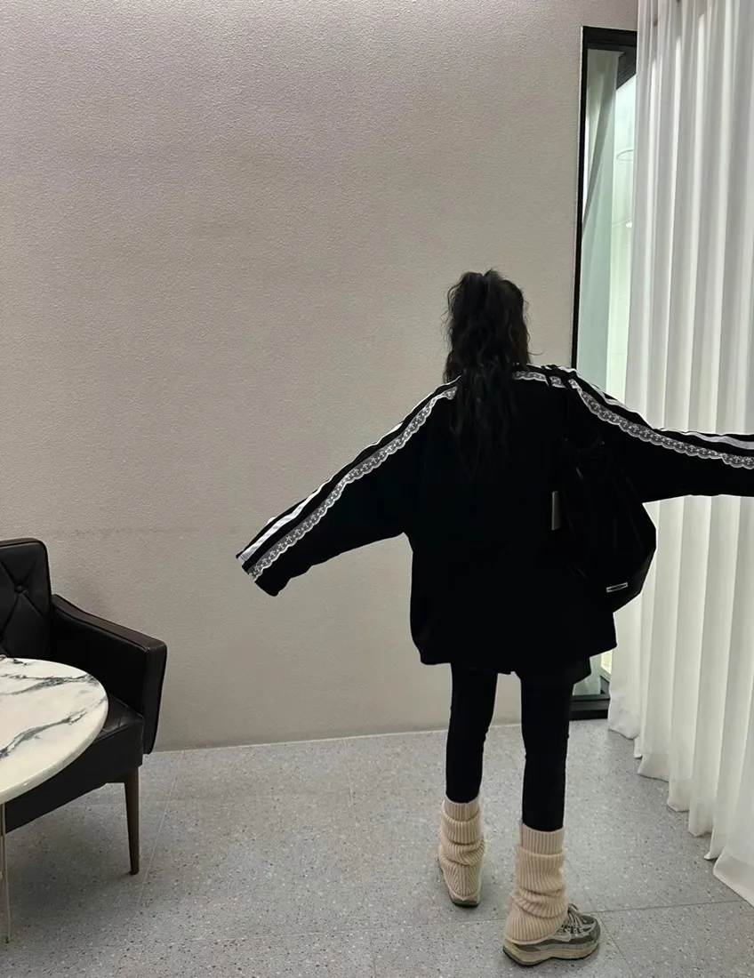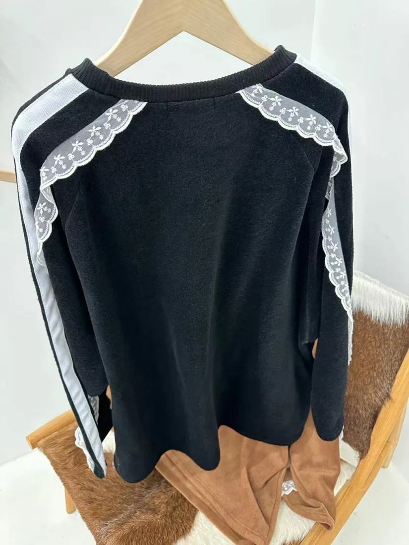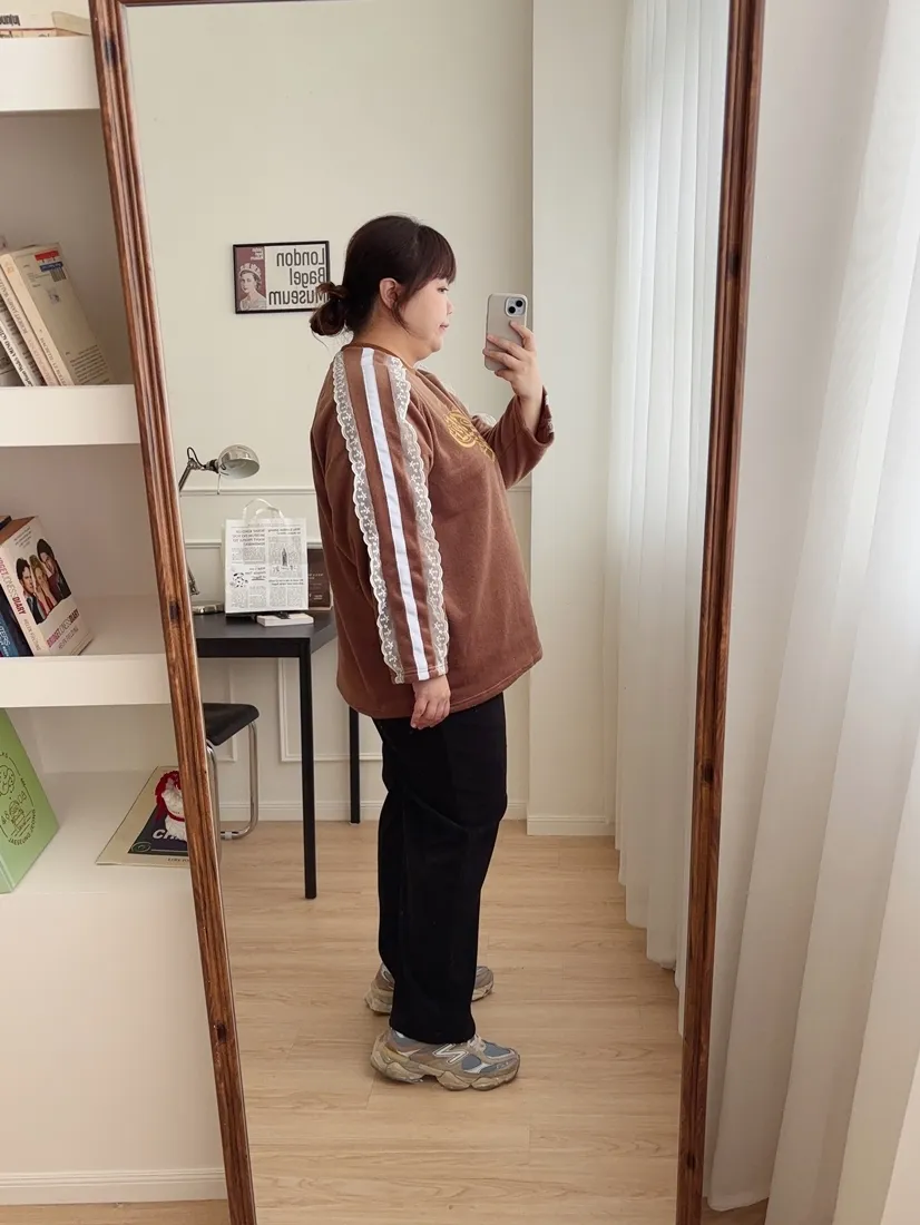 ✓ 肩線至袖子拼接蕾絲,休閒中又帶有一點溫柔感
