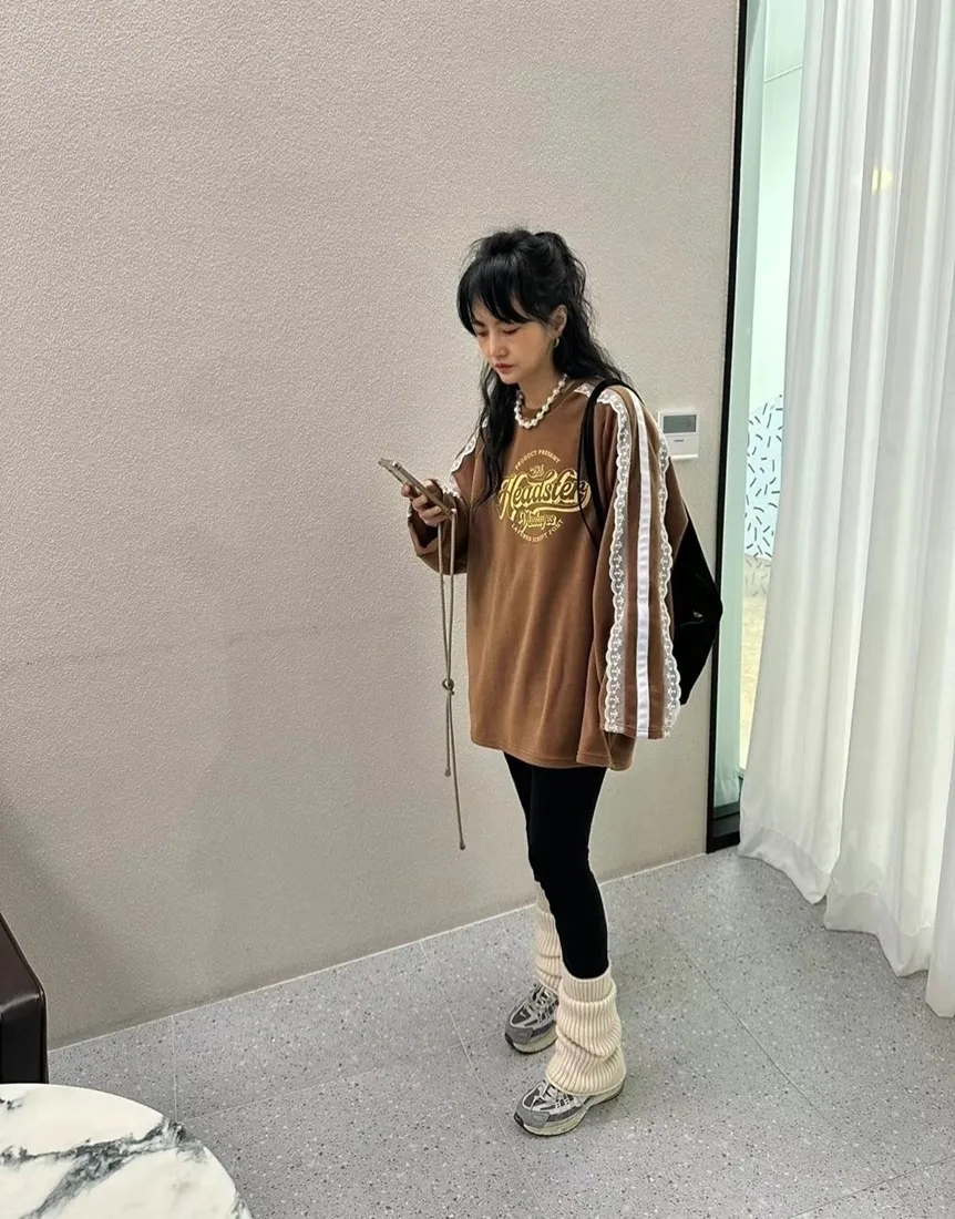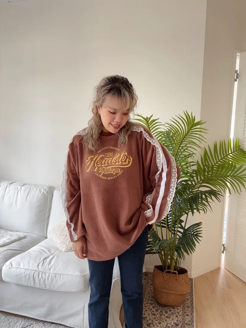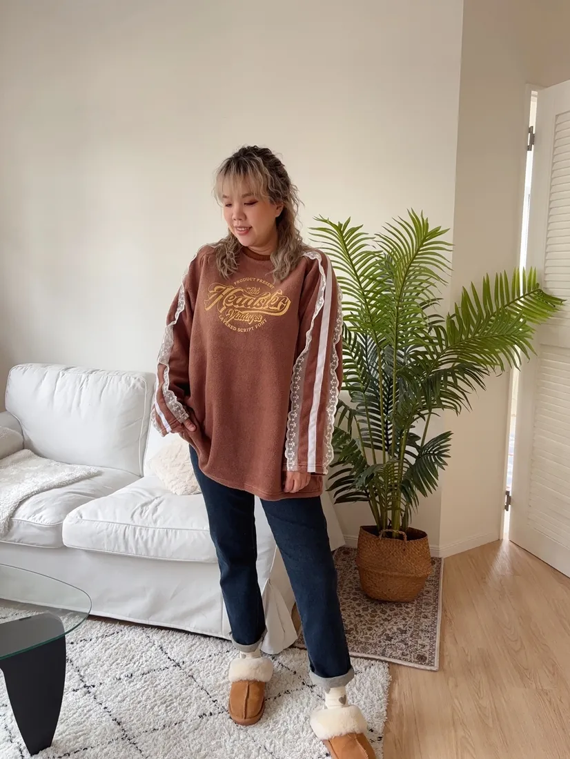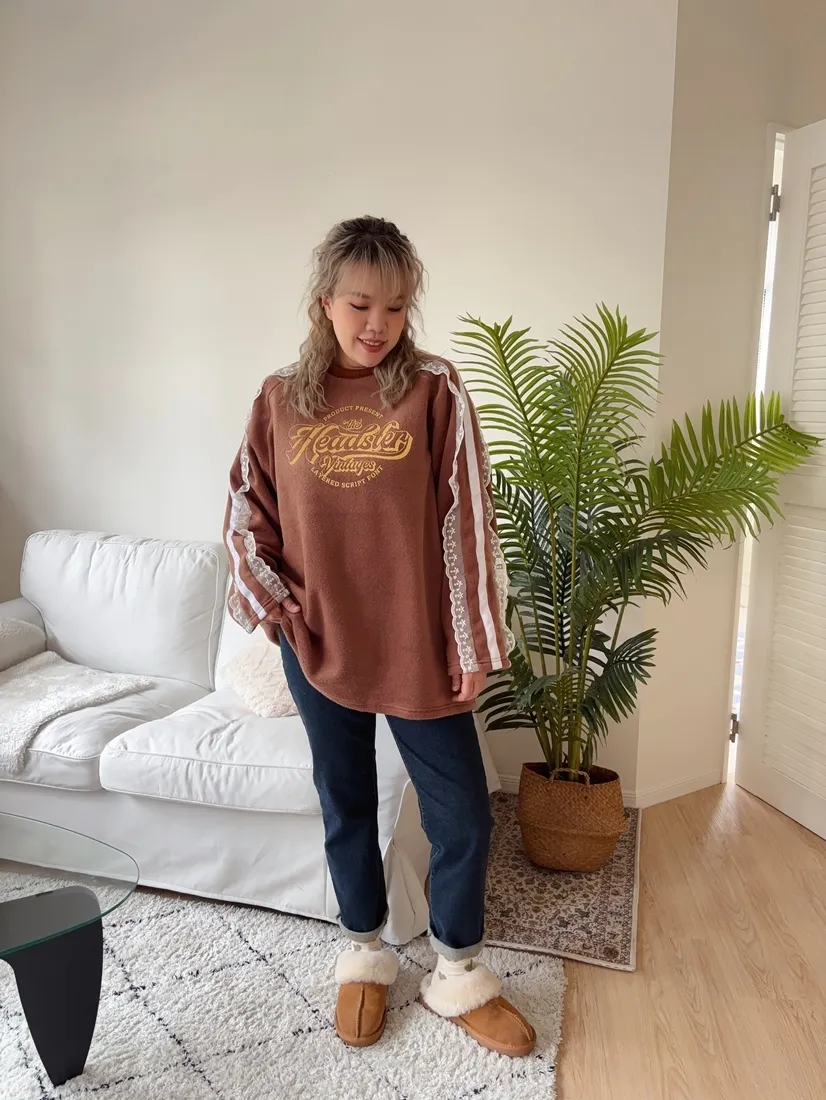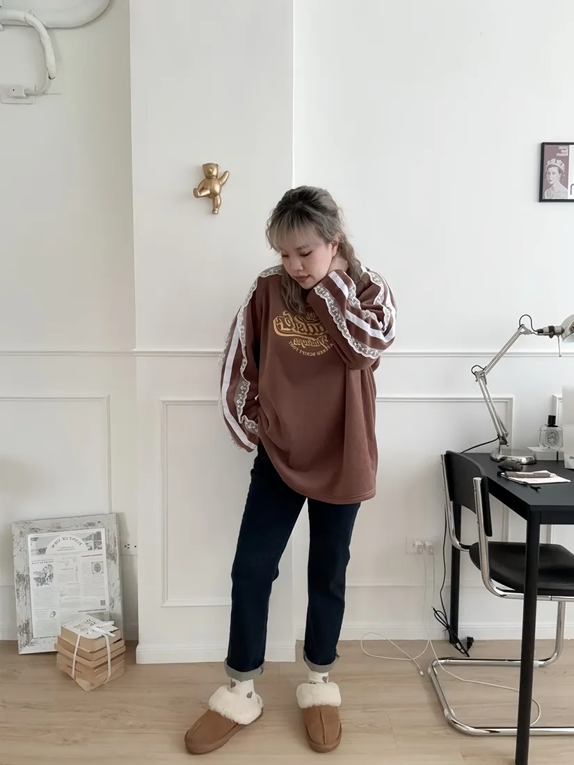 ✓ 肩線至袖子拼接蕾絲,休閒中又帶有一點溫柔感