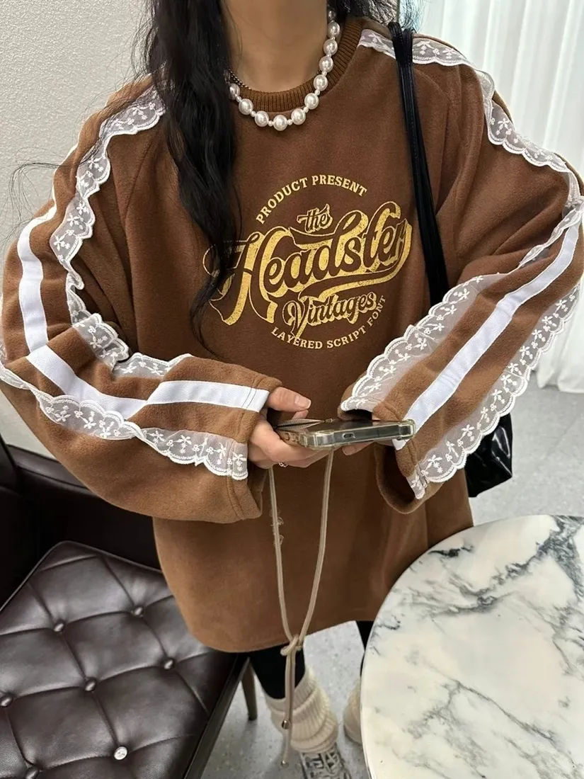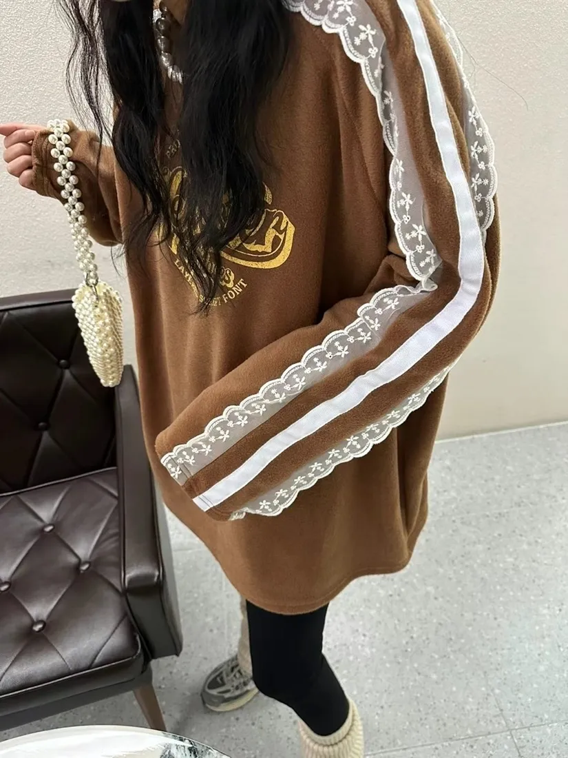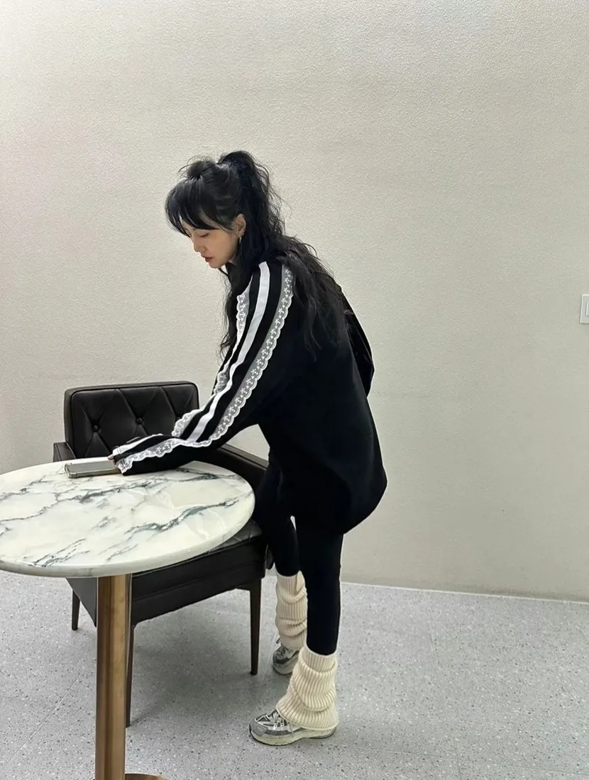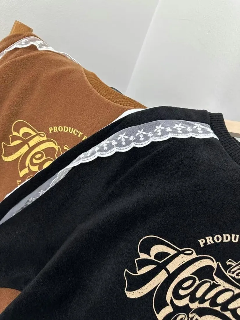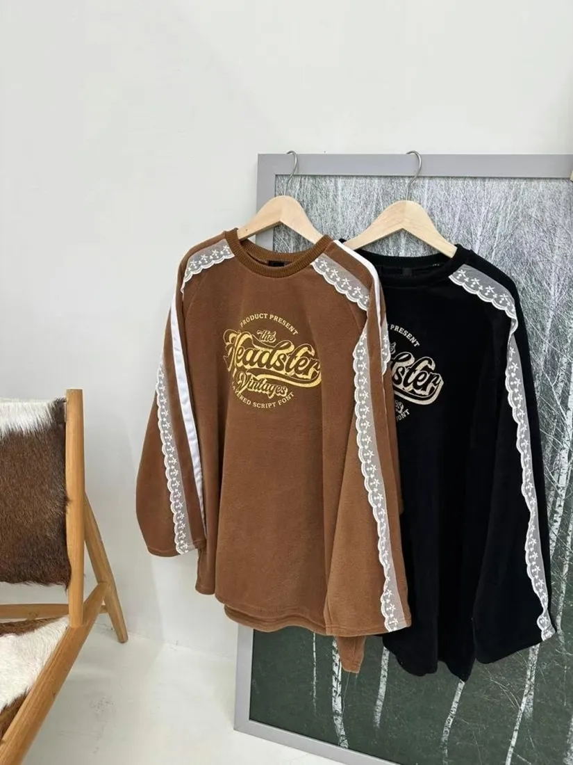✓ 肩線至袖子拼接蕾絲,休閒中又帶有一點溫柔感