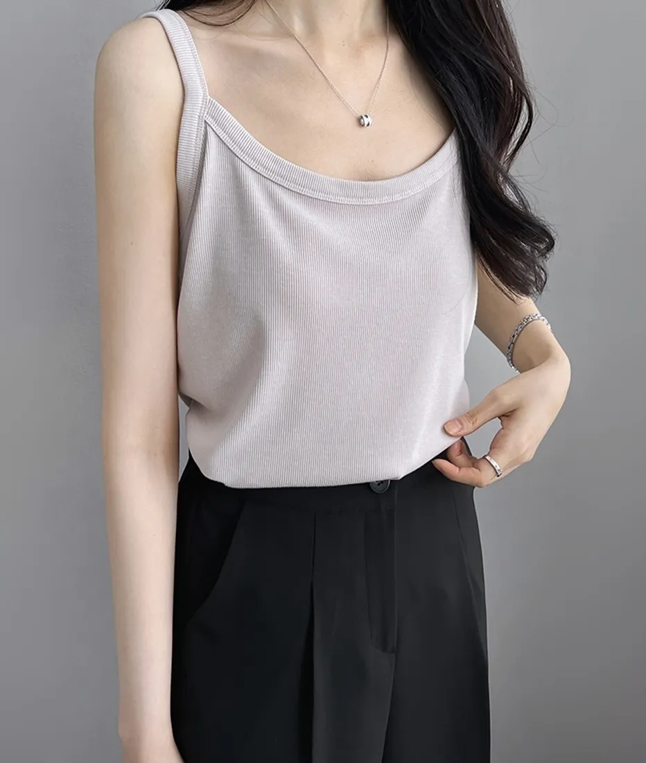 (這款內搭不到絲質面料這麼薄,如果像絲質這麼薄,就不能當襯衫內的背心上衣;如果要炎熱夏天當內搭,之後會再找更薄的內搭哦)