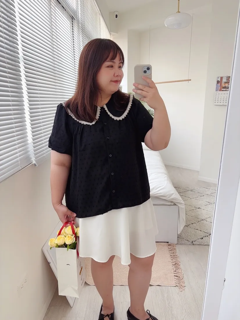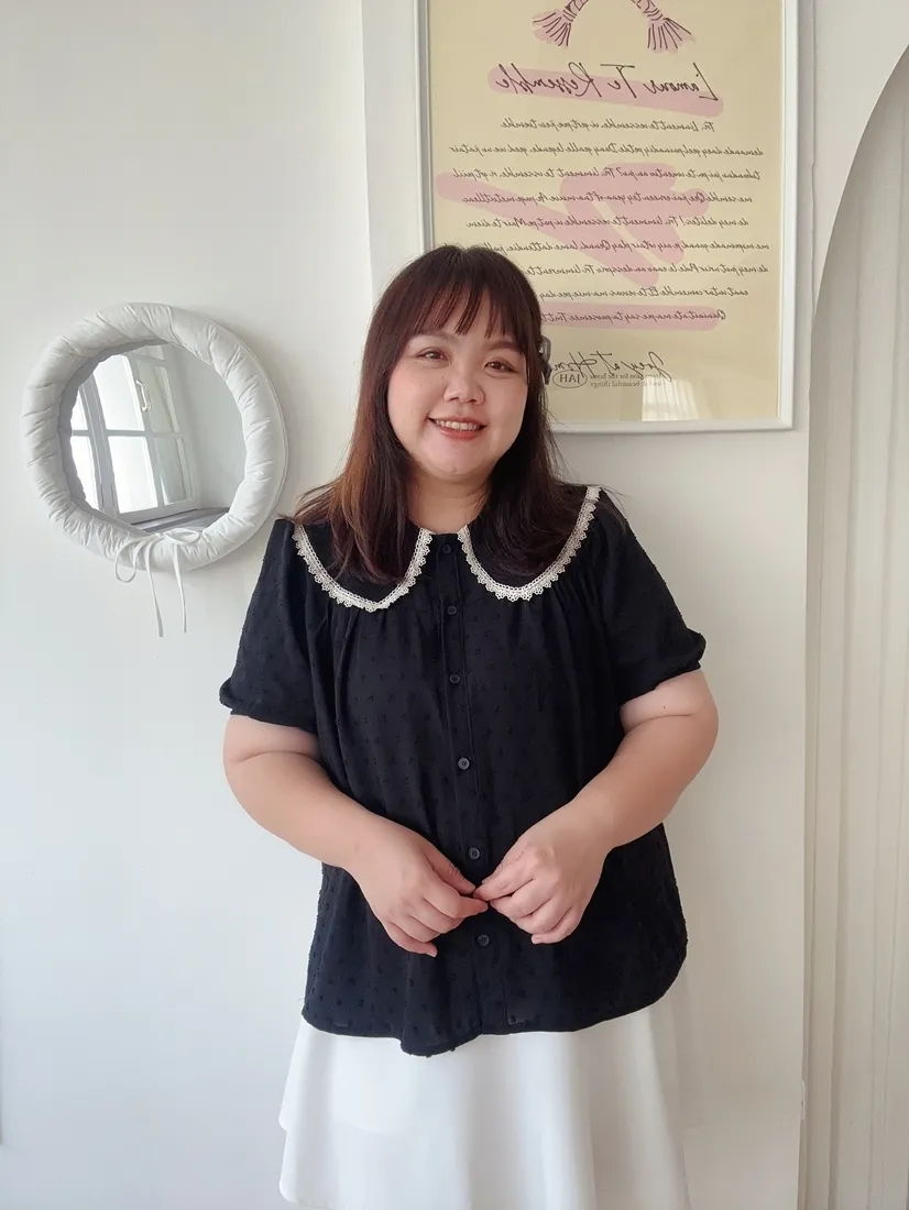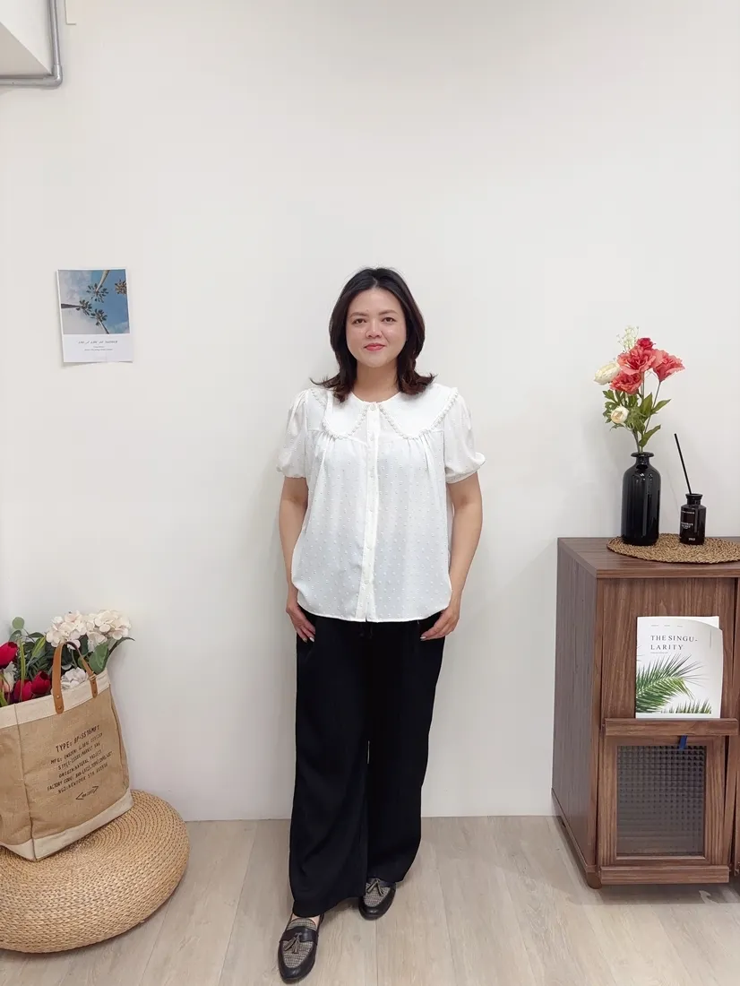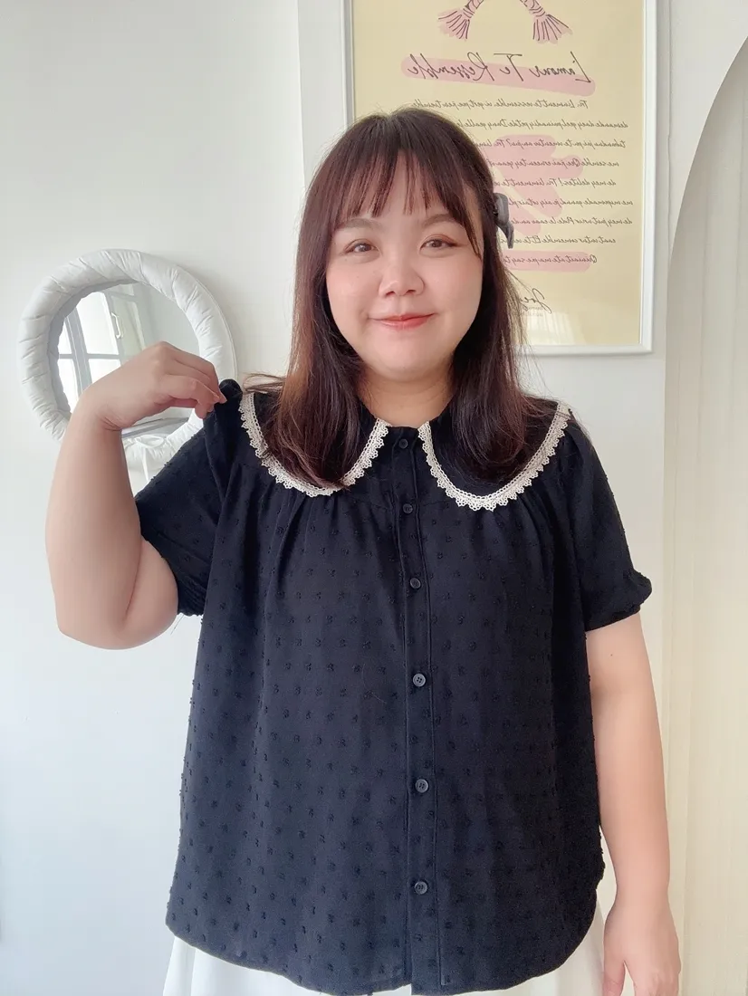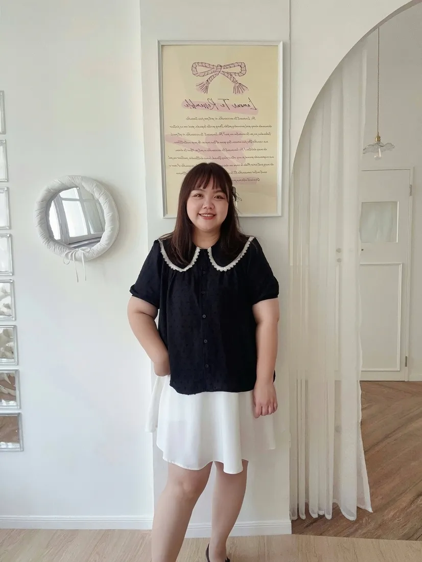 ✓ 可愛翻領,滾布蕾絲邊設計