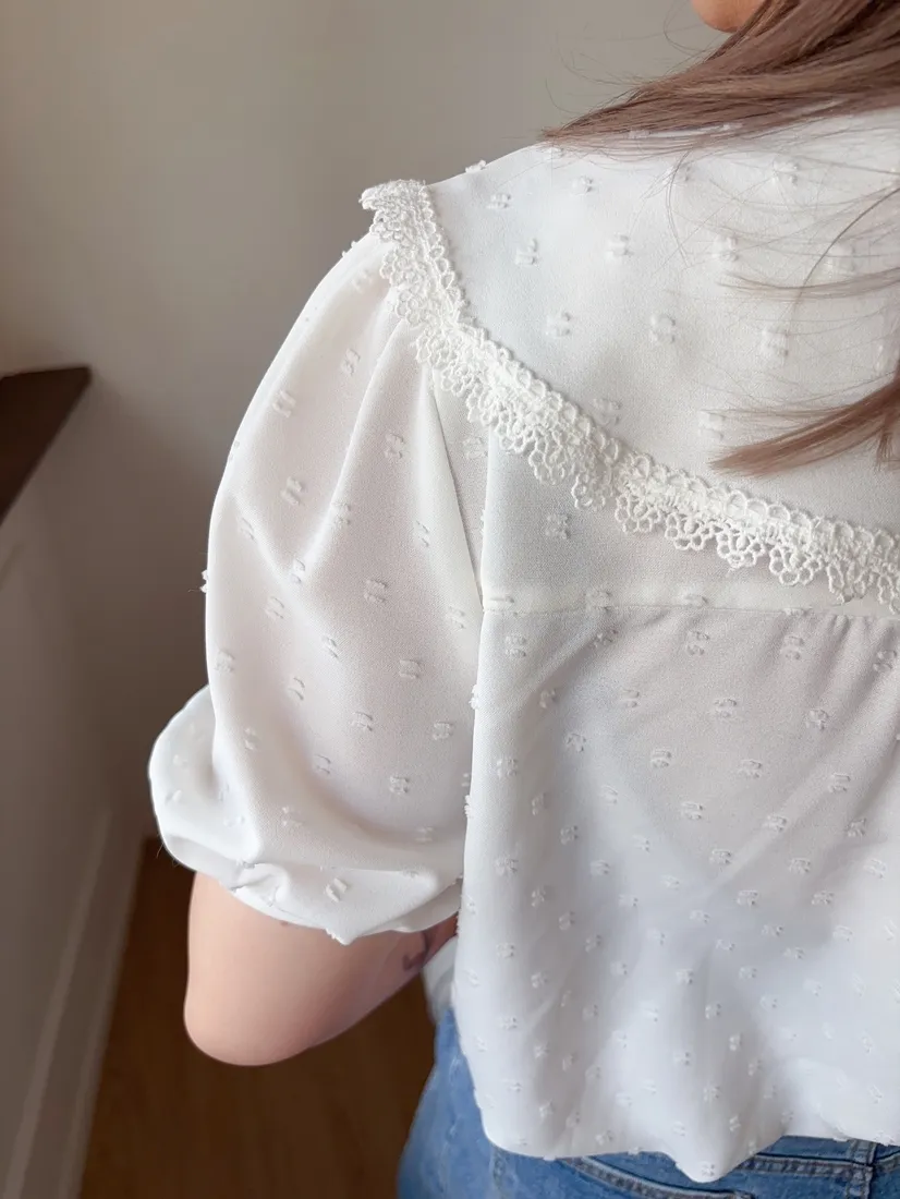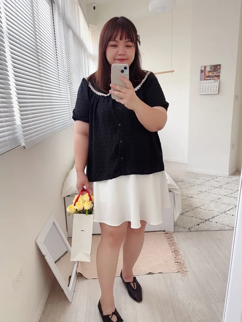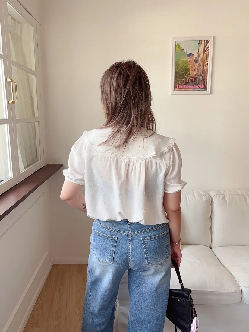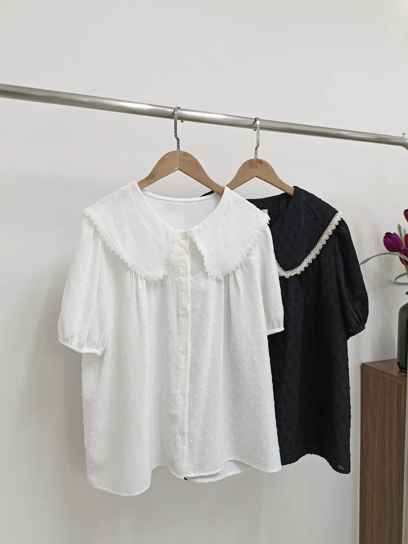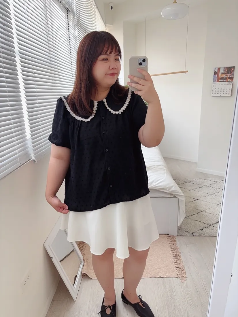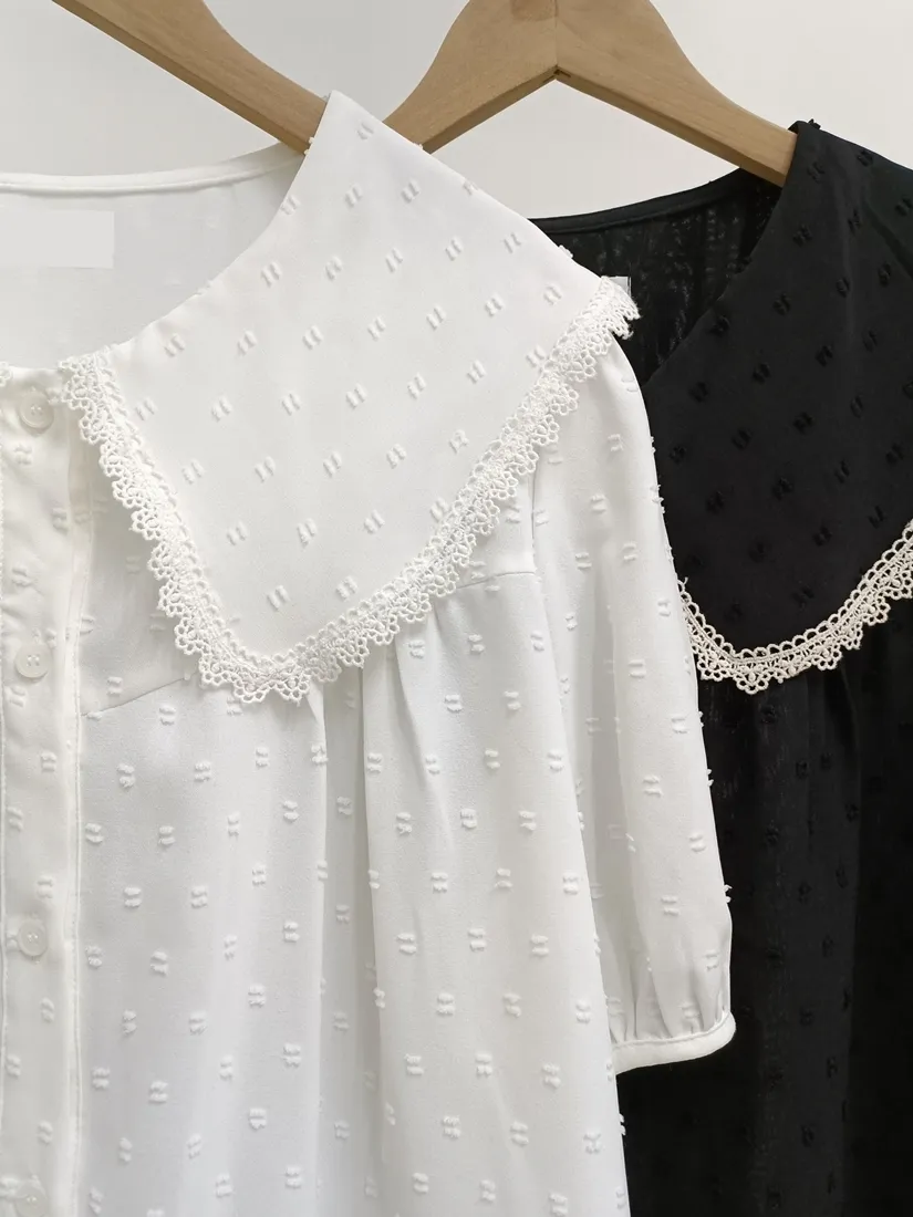✓ 可愛翻領,滾布蕾絲邊設計