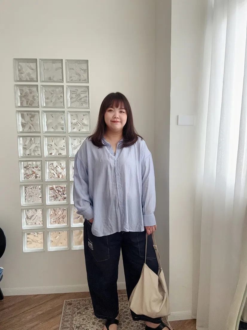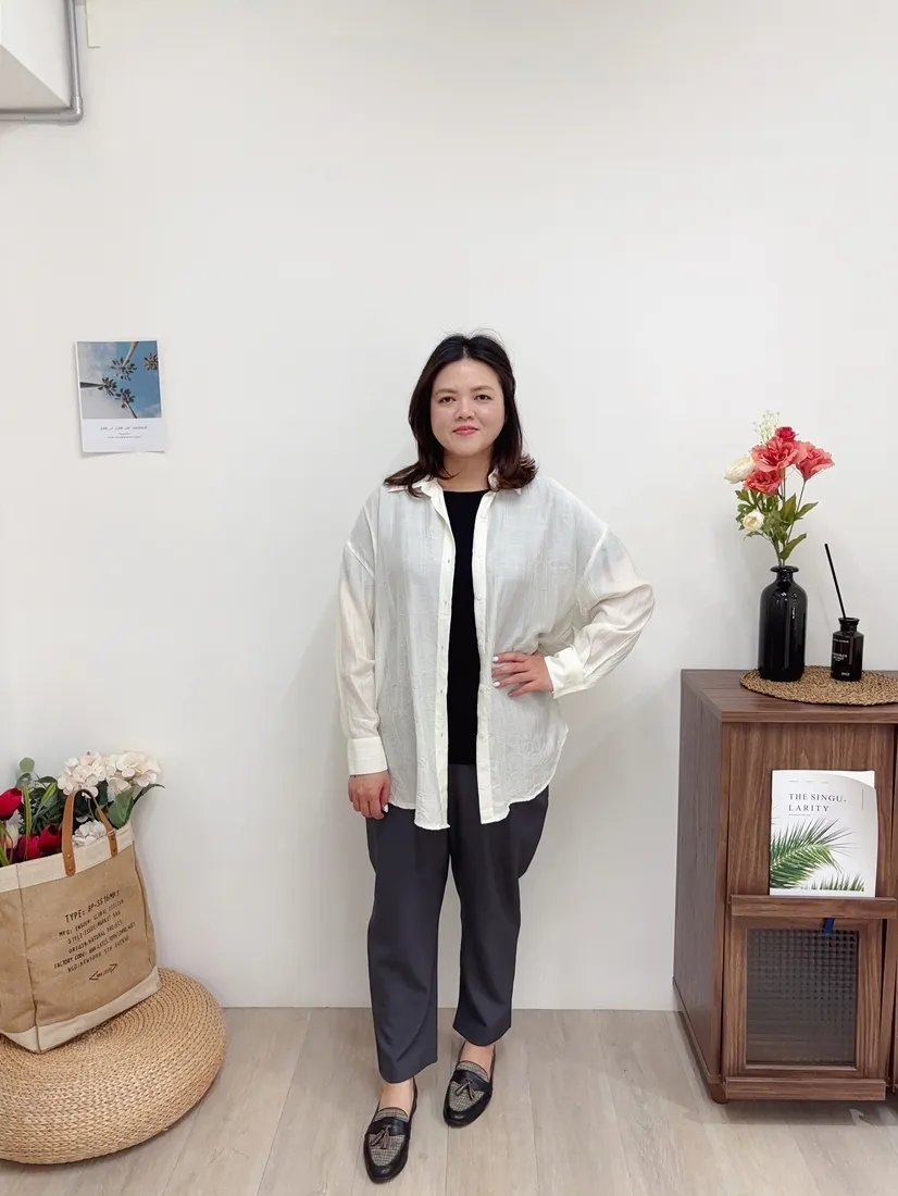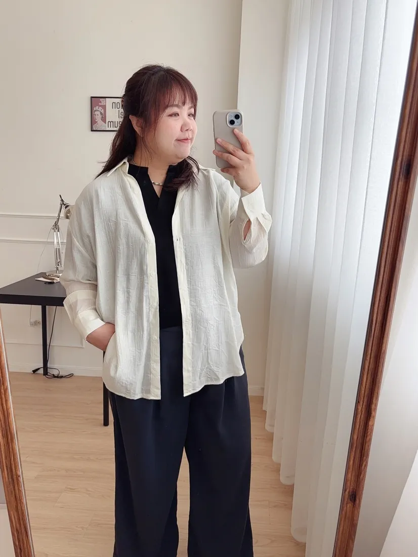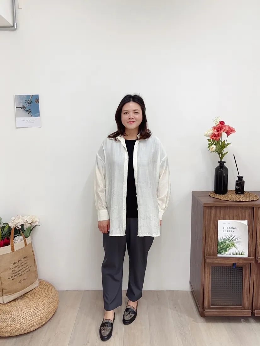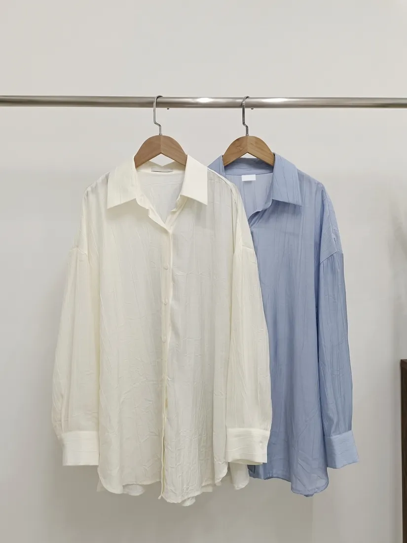 (當襯衫:奶油白會透,須搭配內搭穿著;淺藍色微透,建議穿淺色內衣)