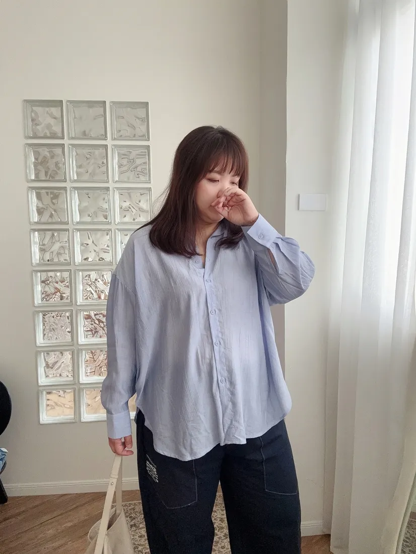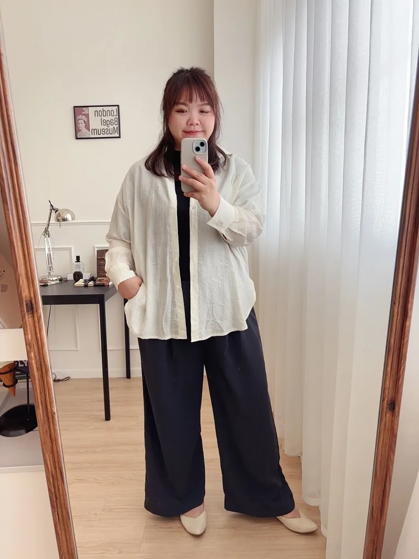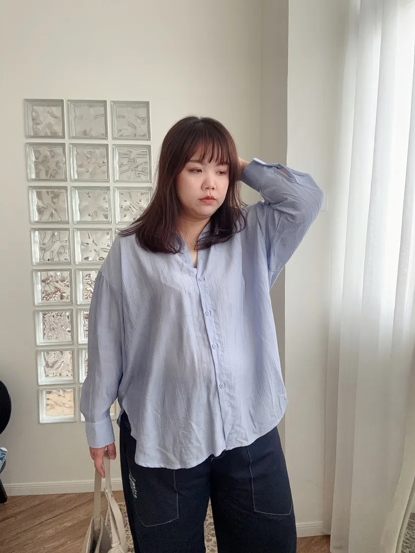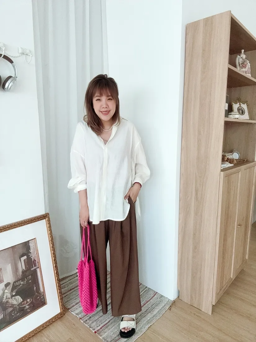 (當襯衫:奶油白會透,須搭配內搭穿著;淺藍色微透,建議穿淺色內衣)
