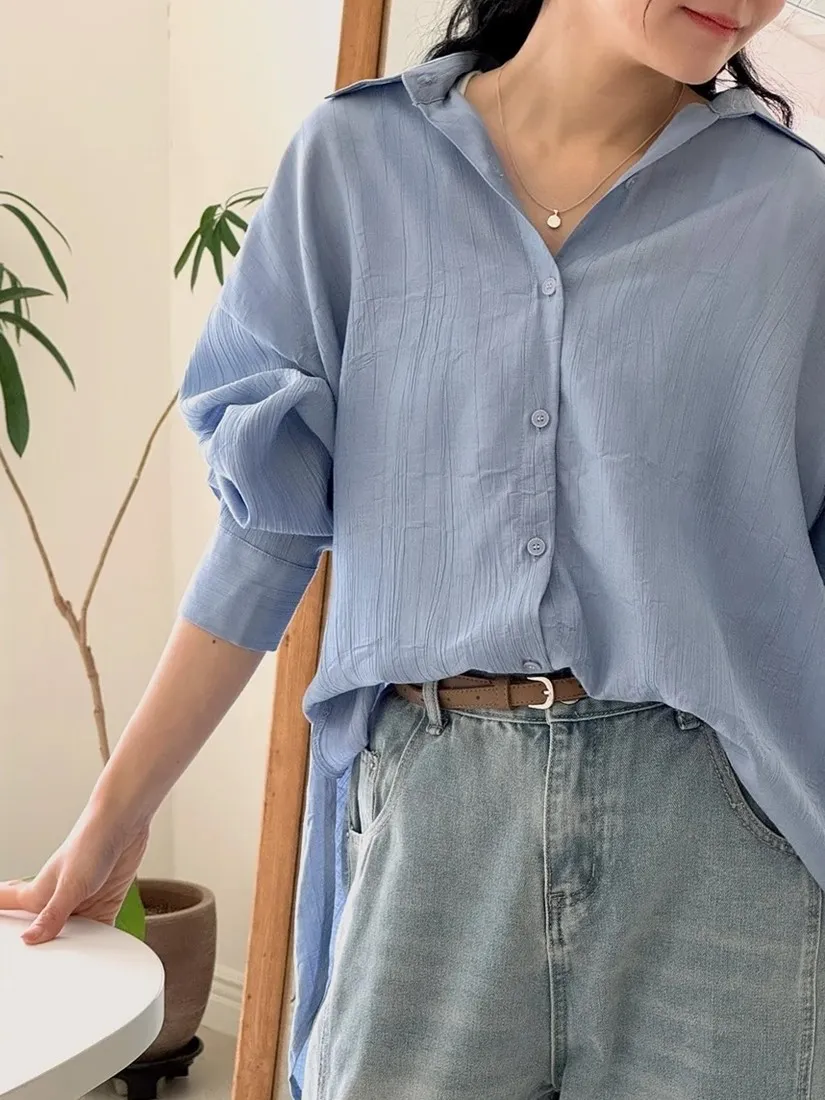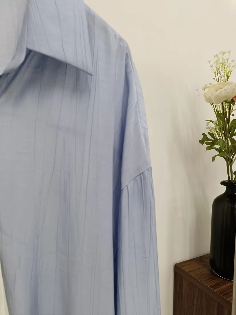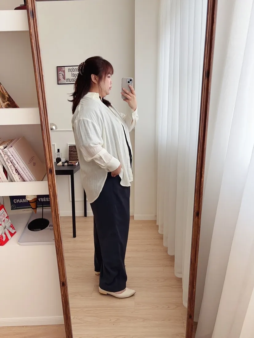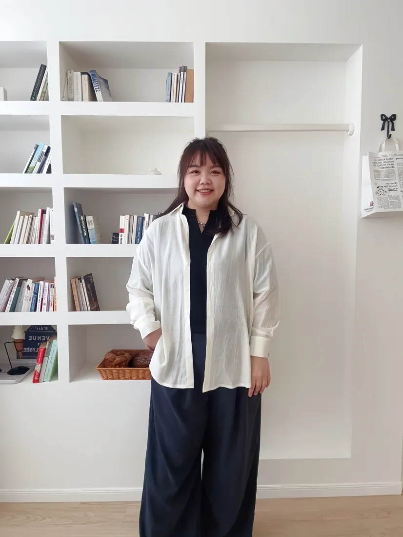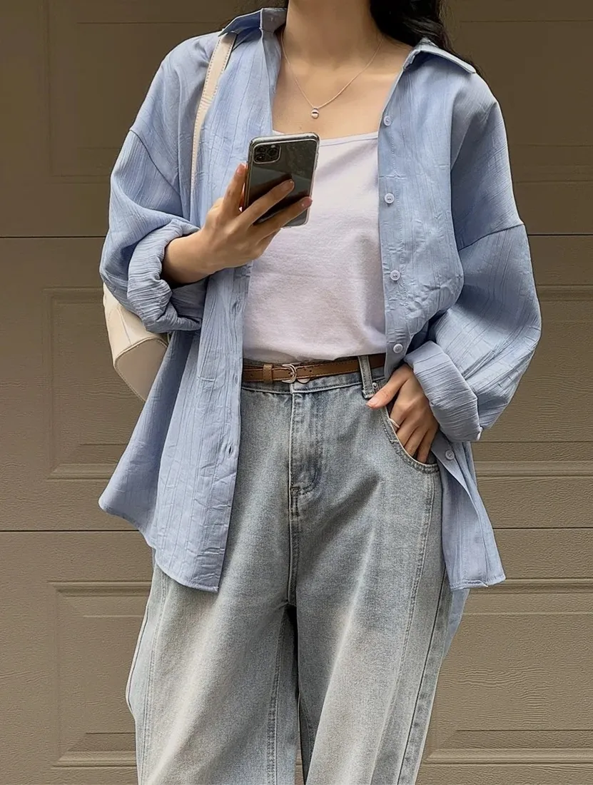 (當襯衫:奶油白會透,須搭配內搭穿著;淺藍色微透,建議穿淺色內衣)