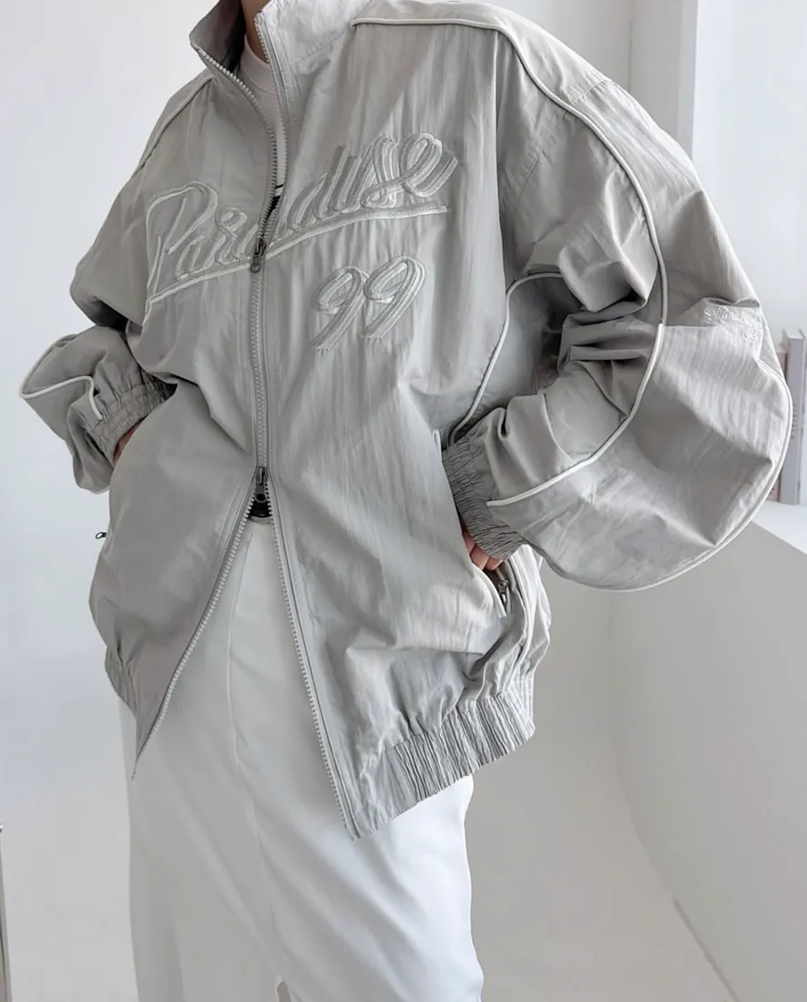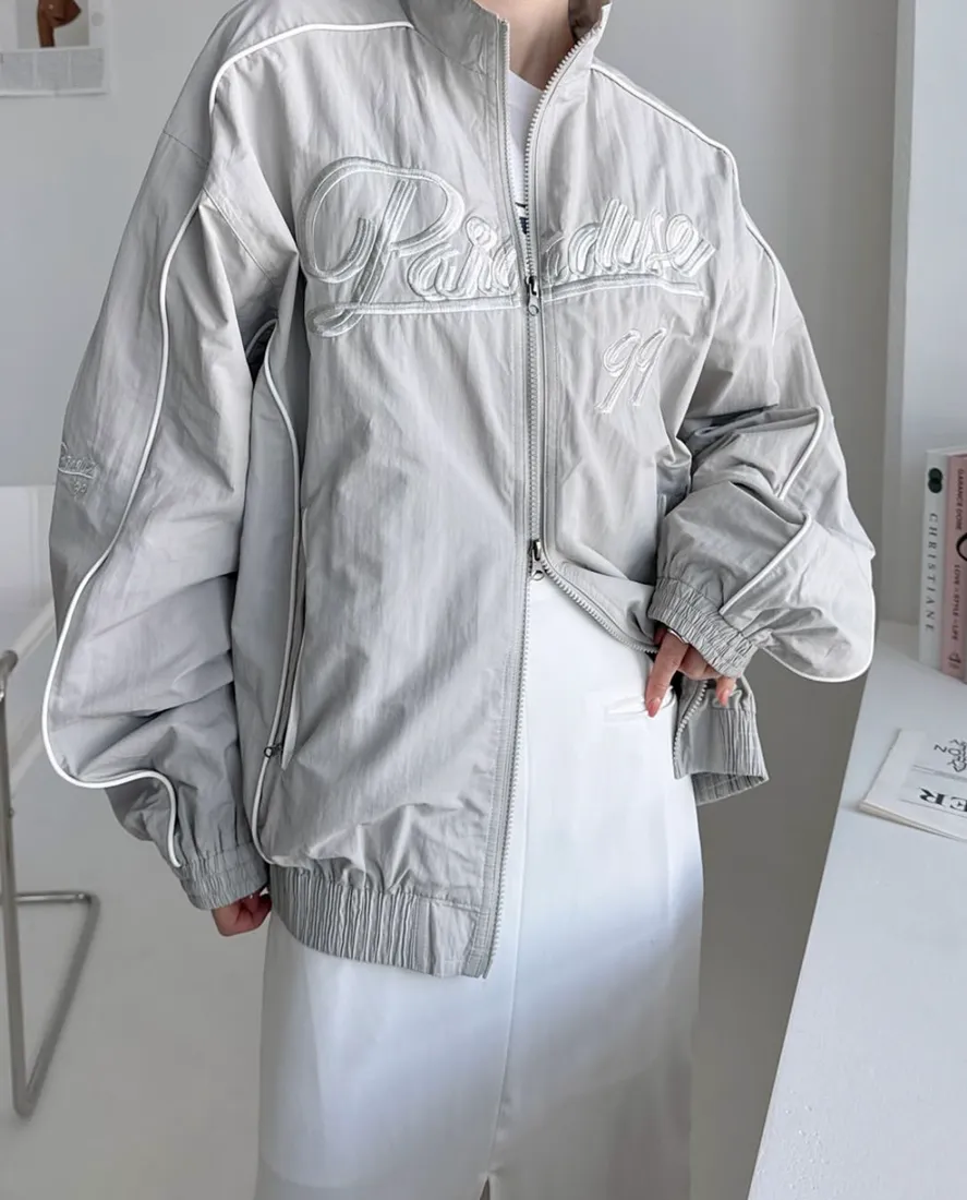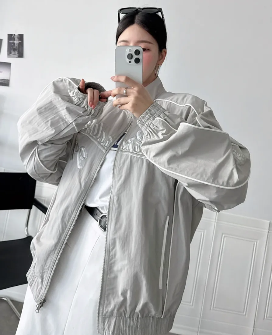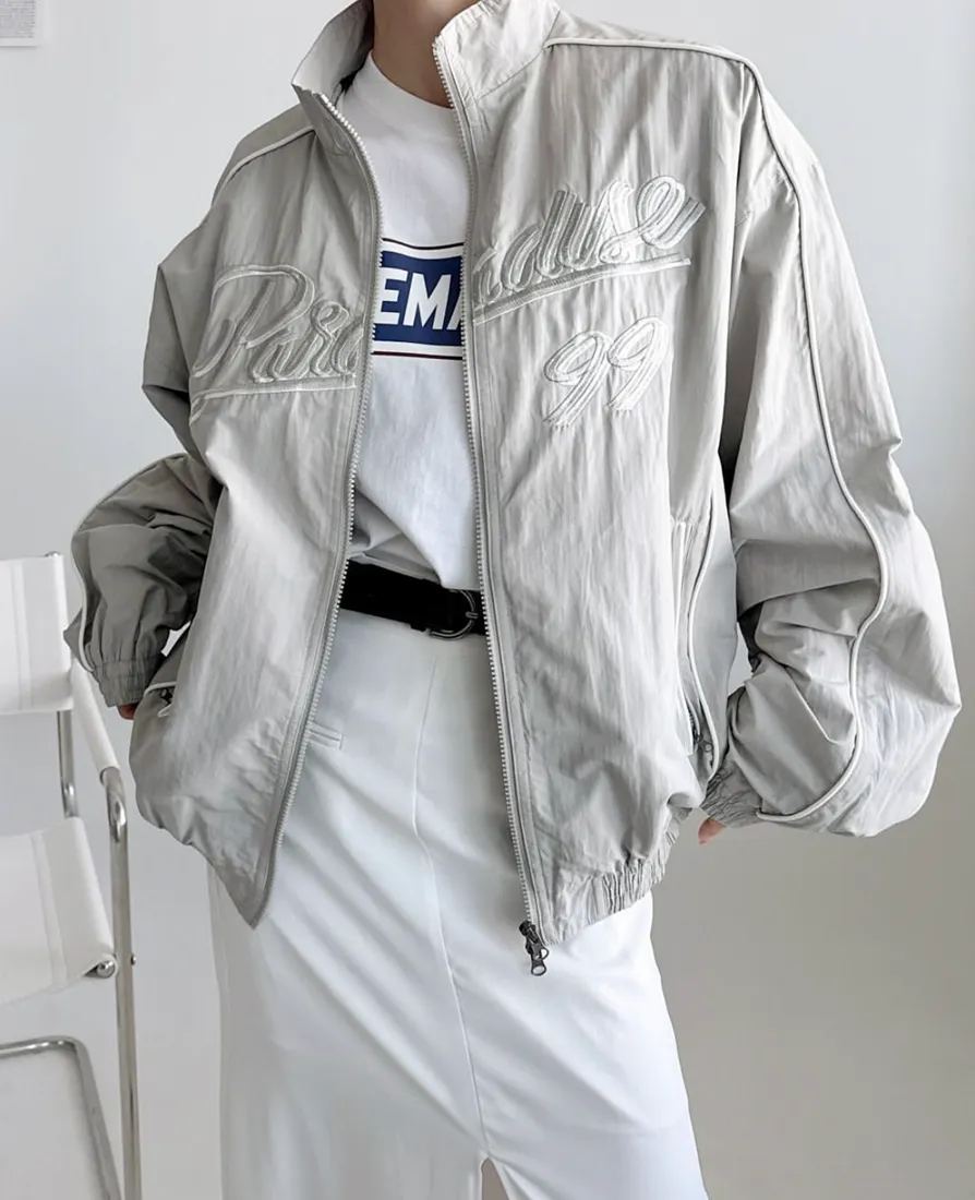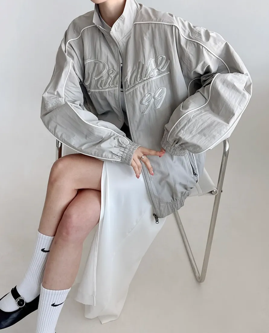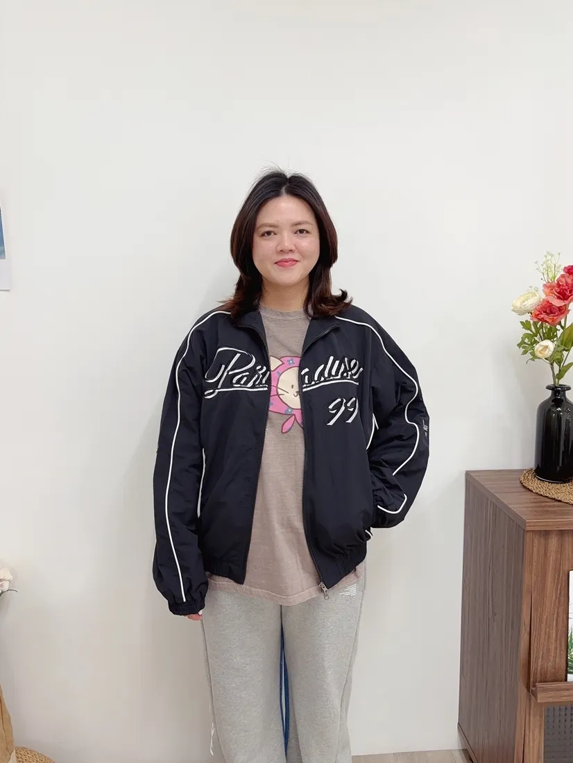 ✓ 刺繡字母(胸前、袖子),立體白色車縫邊