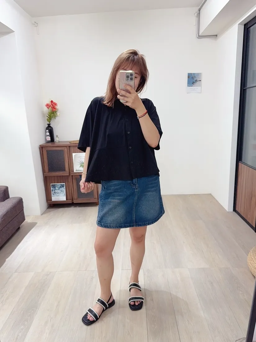 | 尺寸(平量/cm) | 領口寬 | (無肩線)單邊肩寬+袖長 | 胸寬 | 腋下寬 | 下擺寬 | 全長 | 實穿說明 |