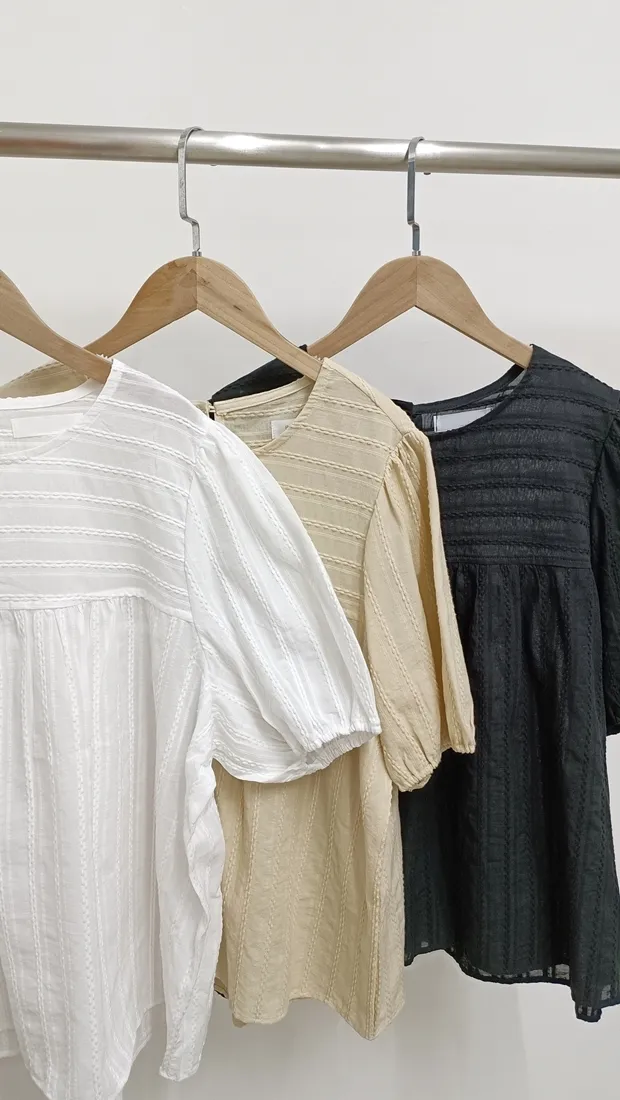 (白色會透,需搭配內搭穿著;米黃色微透,穿淺色內衣即可)